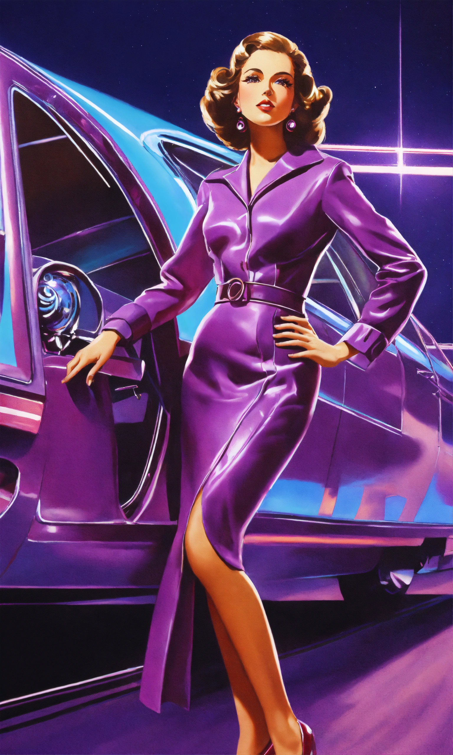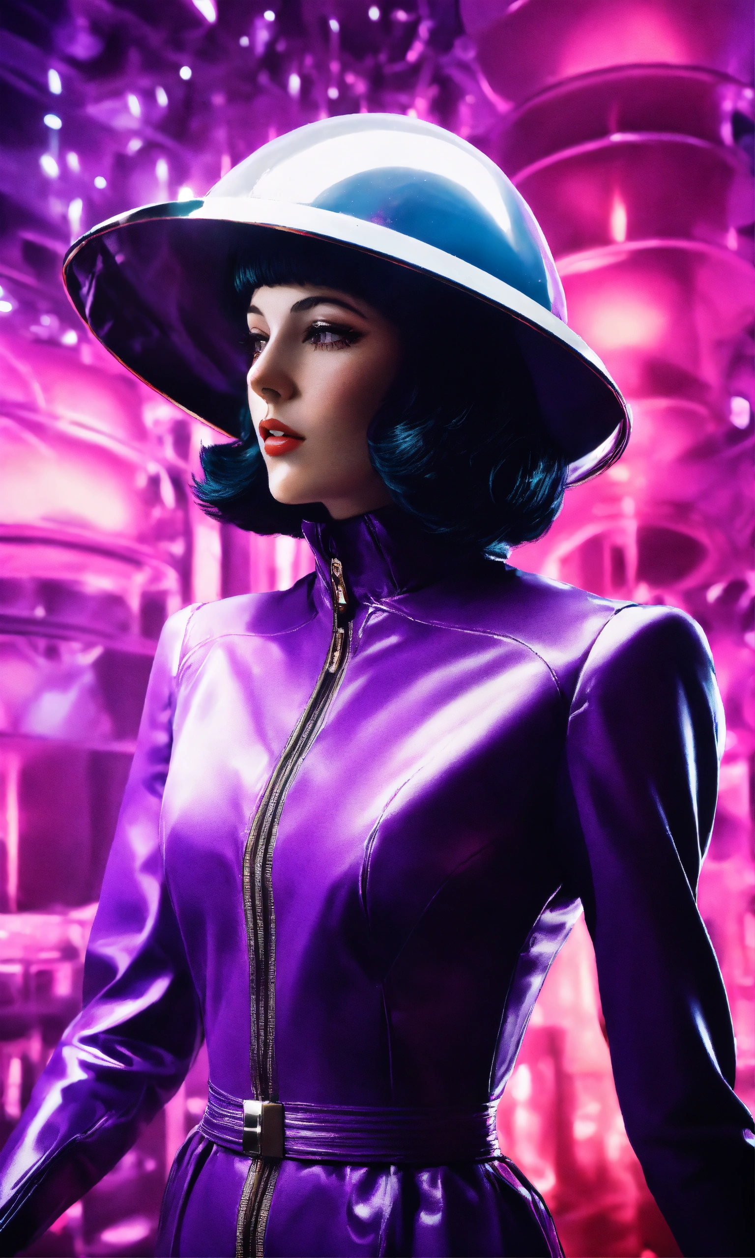 A woman dress in retro futurism style