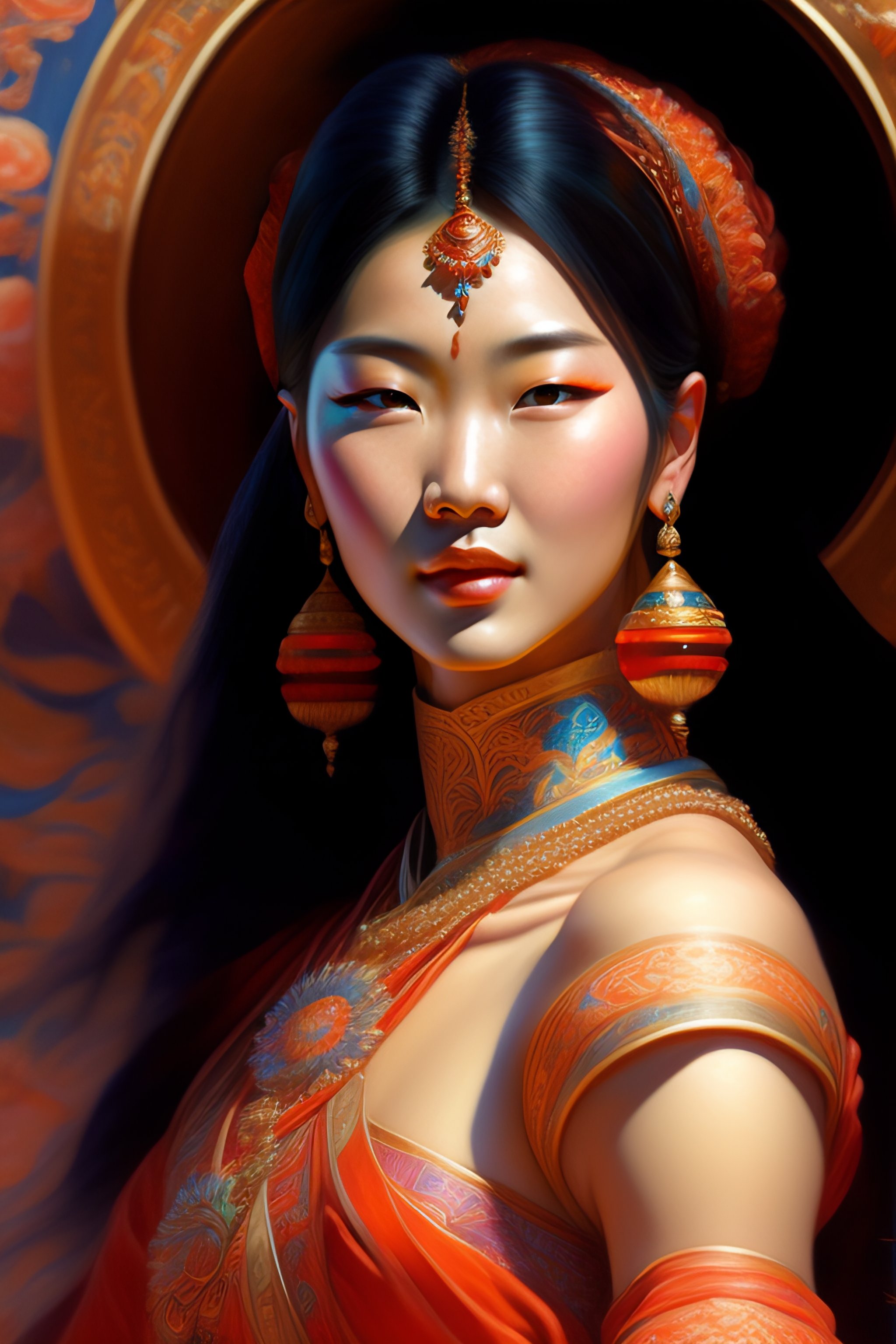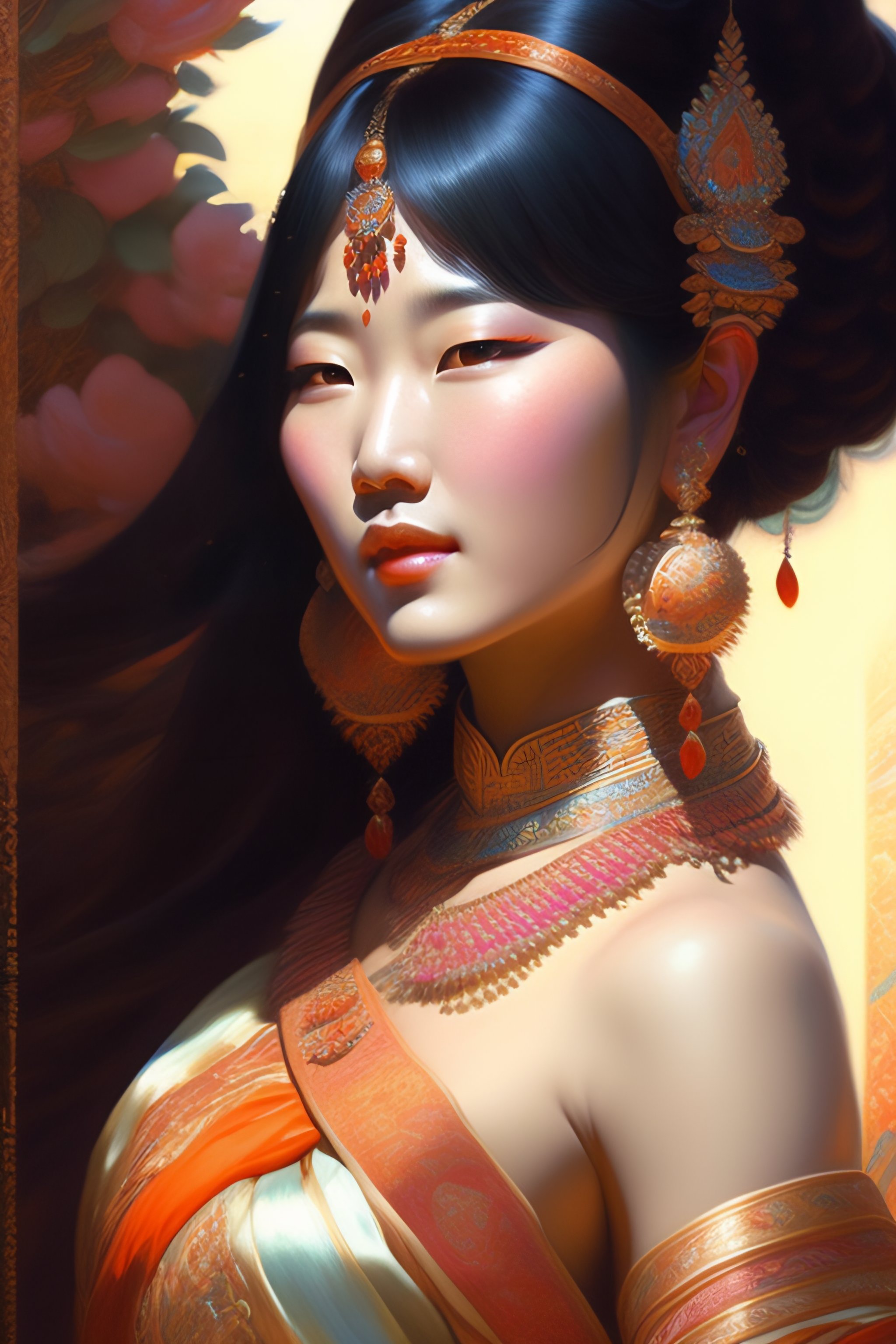 Detailed paint of korean goddess, highly detailed paiting by gaston bussiere, craig mullins, j.c. leyendecker, 8k, royal paiting, dynamic lighting, colorfull lighting, pastel colors