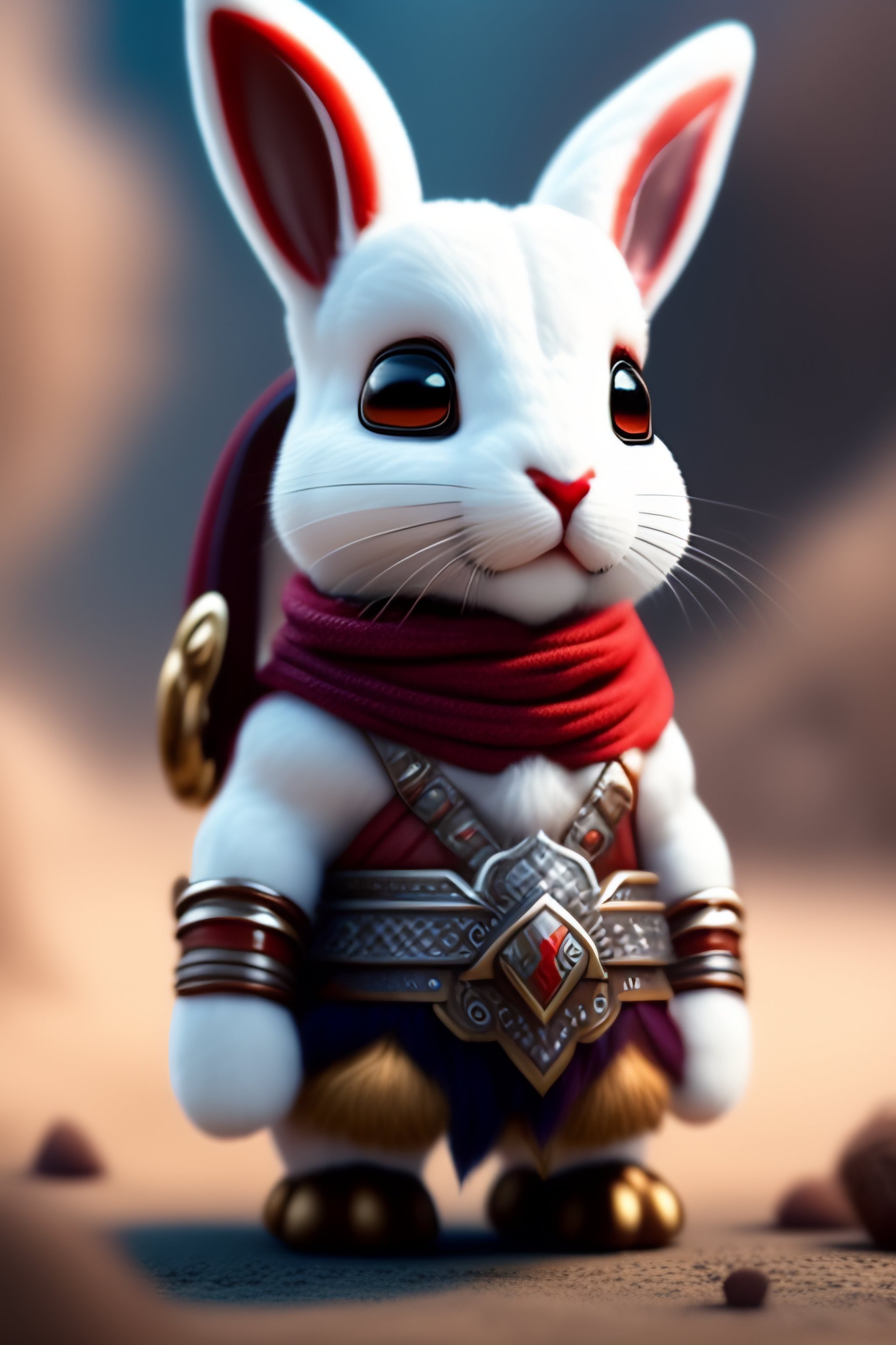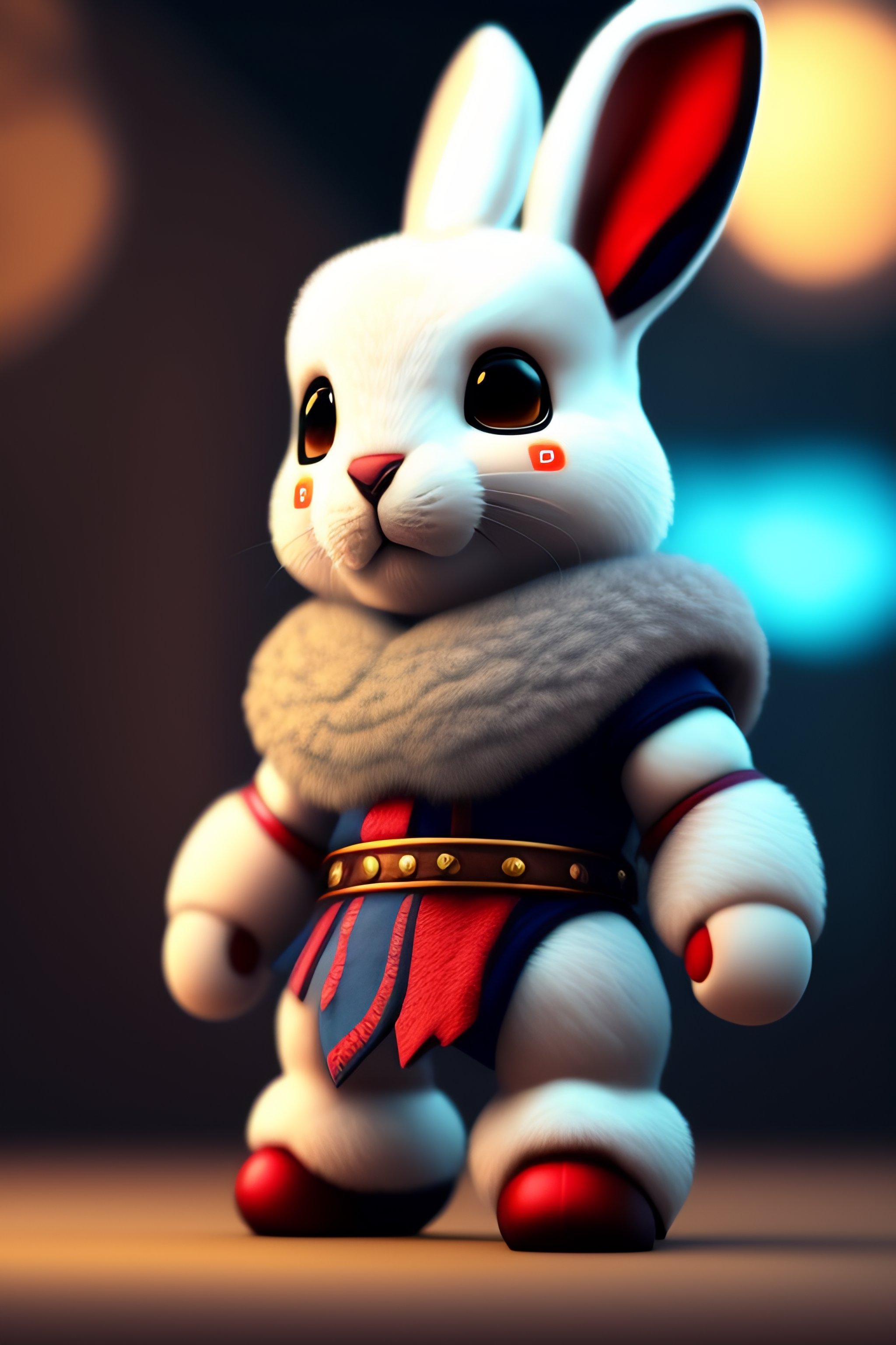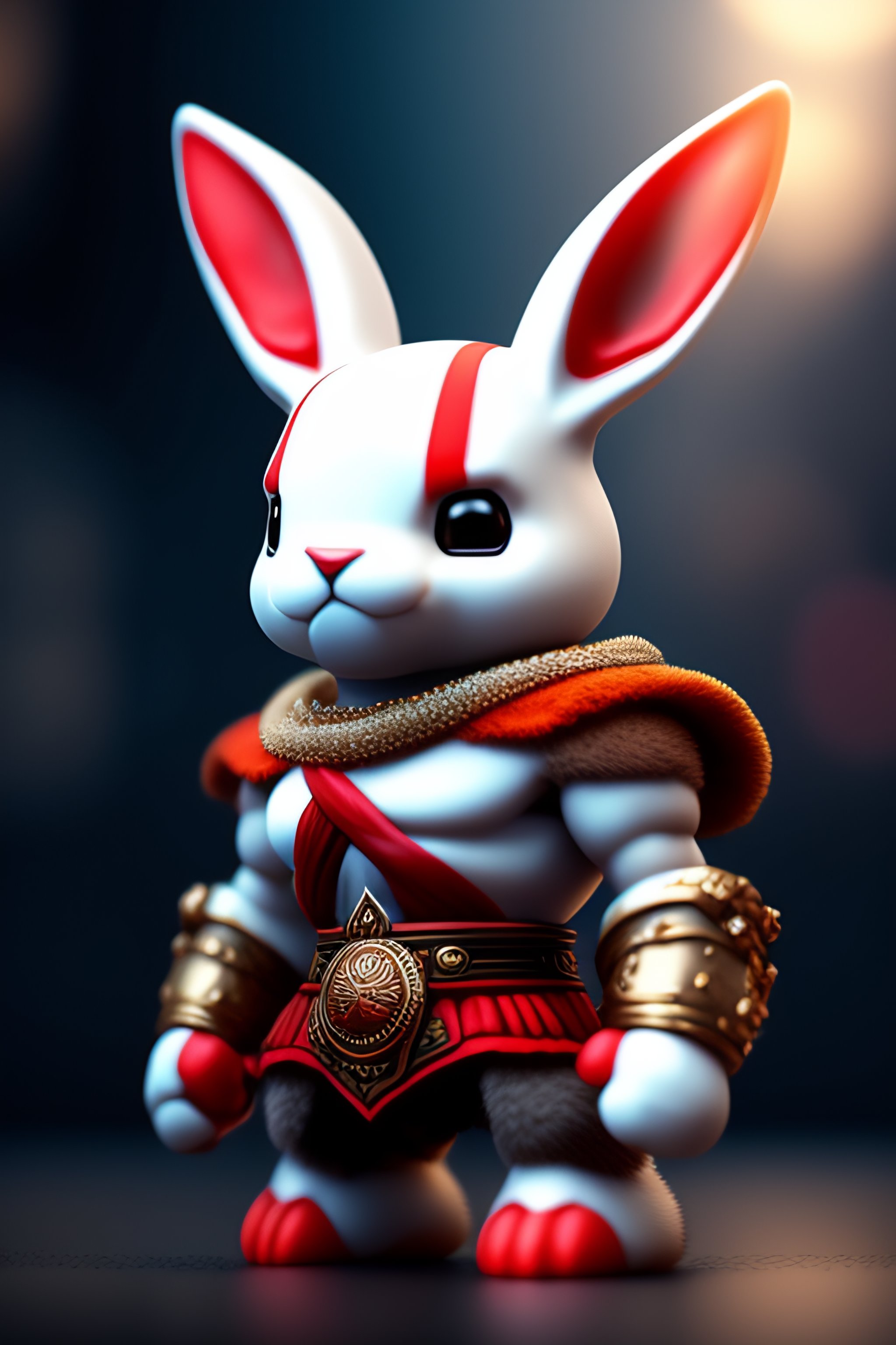 Soft god of war kratos bunny robot working on a smartphone