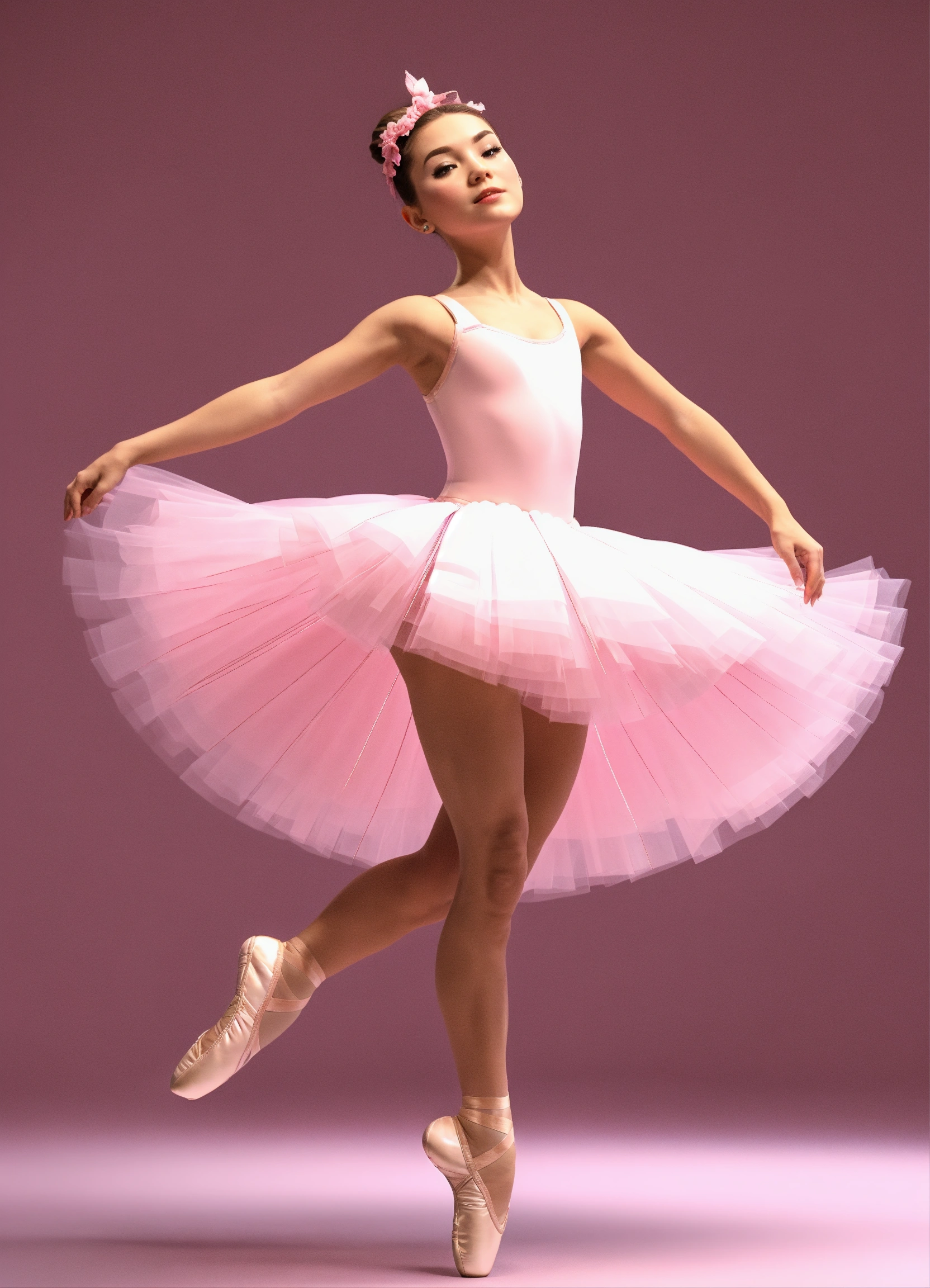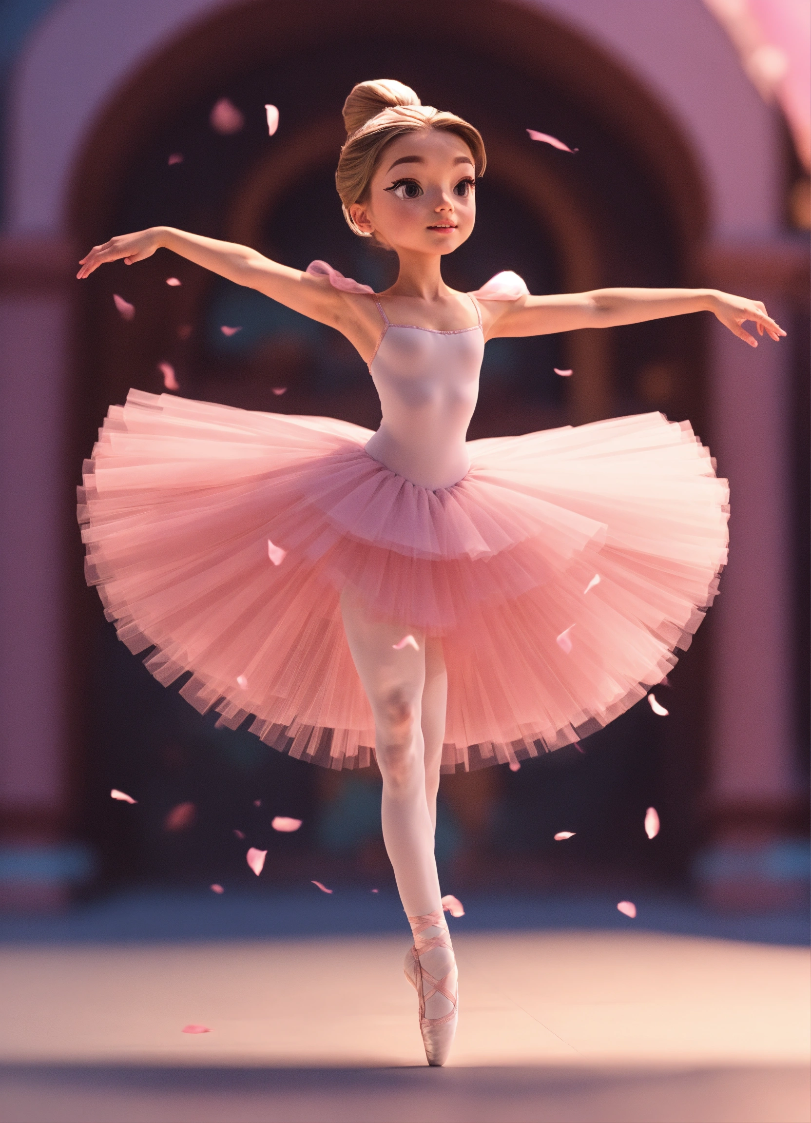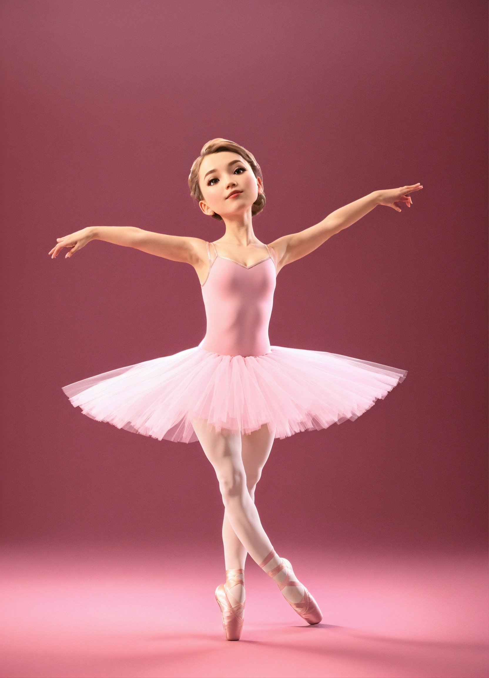I need a 3d low poly of a girl in ballet costume, she is posed in a dynamic way with her arms up, her face is simplified without any detail, she has a light pink tutu