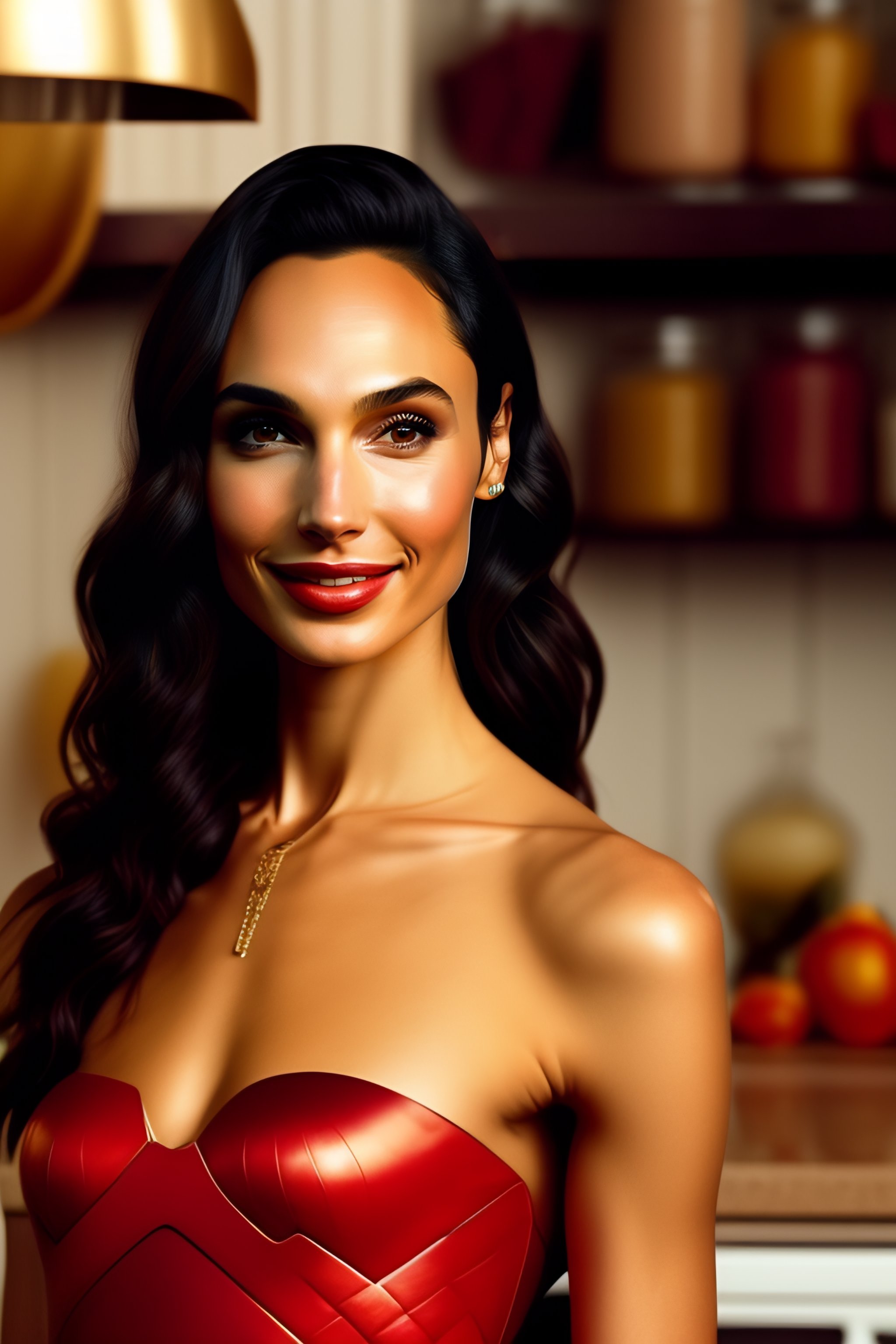 Gal gadot in oil in kitchen