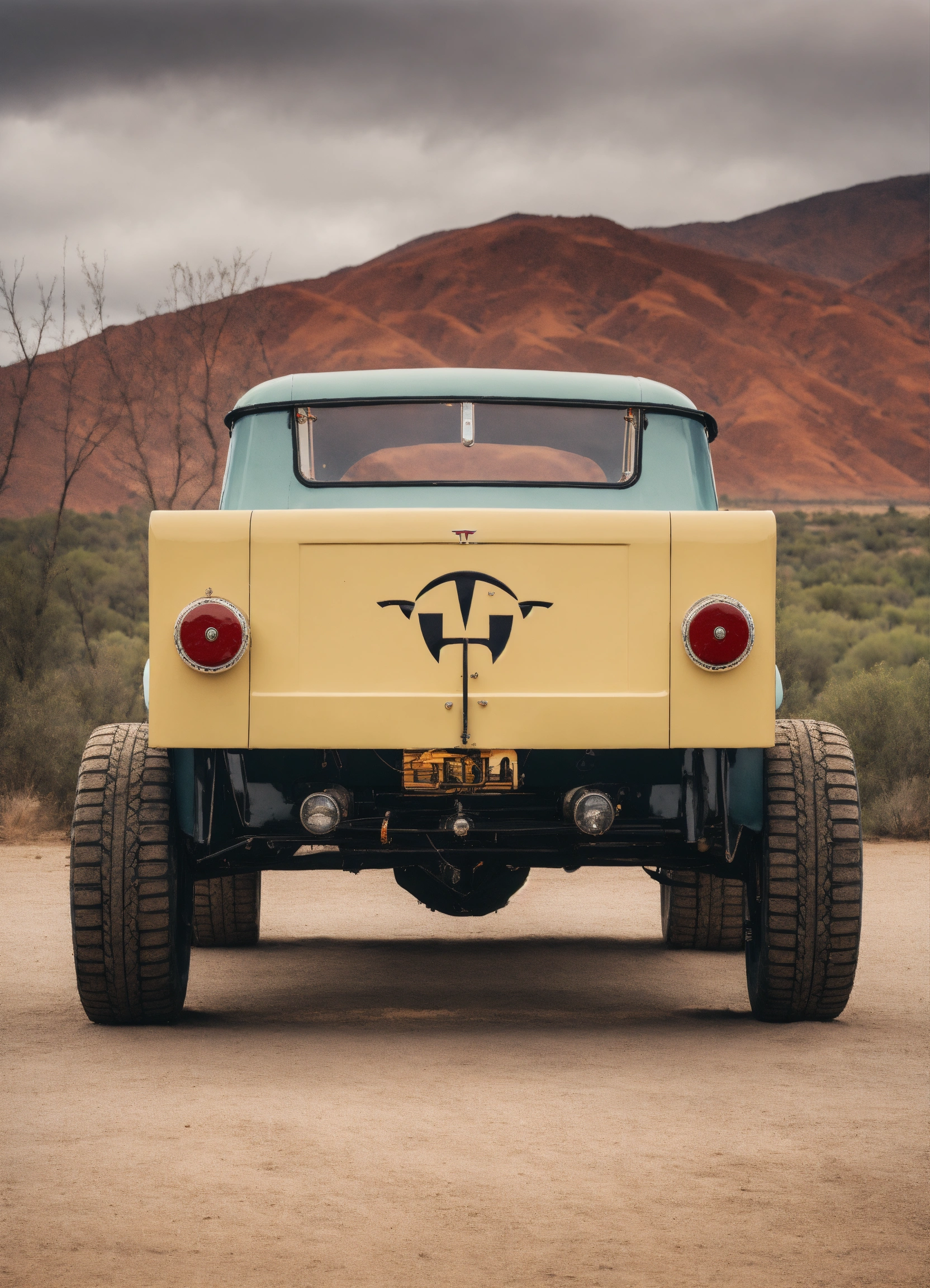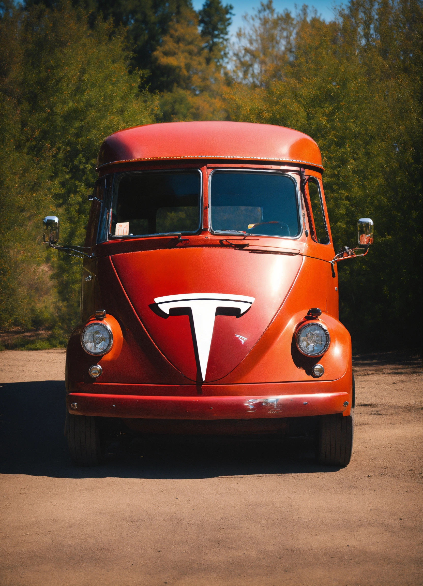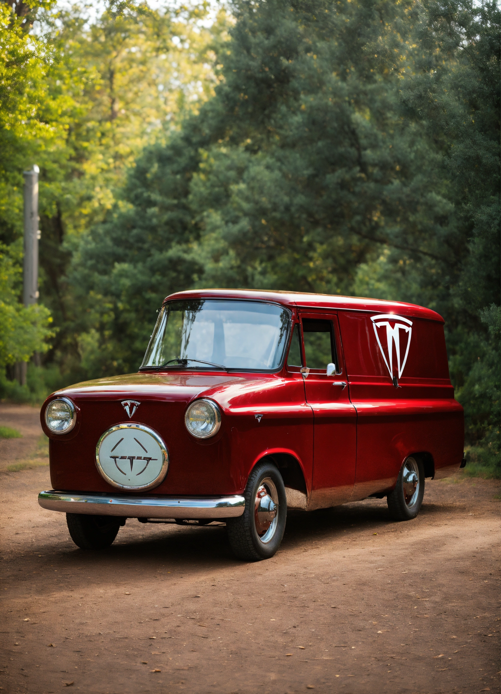 Tesla style old truck with tesla symbol