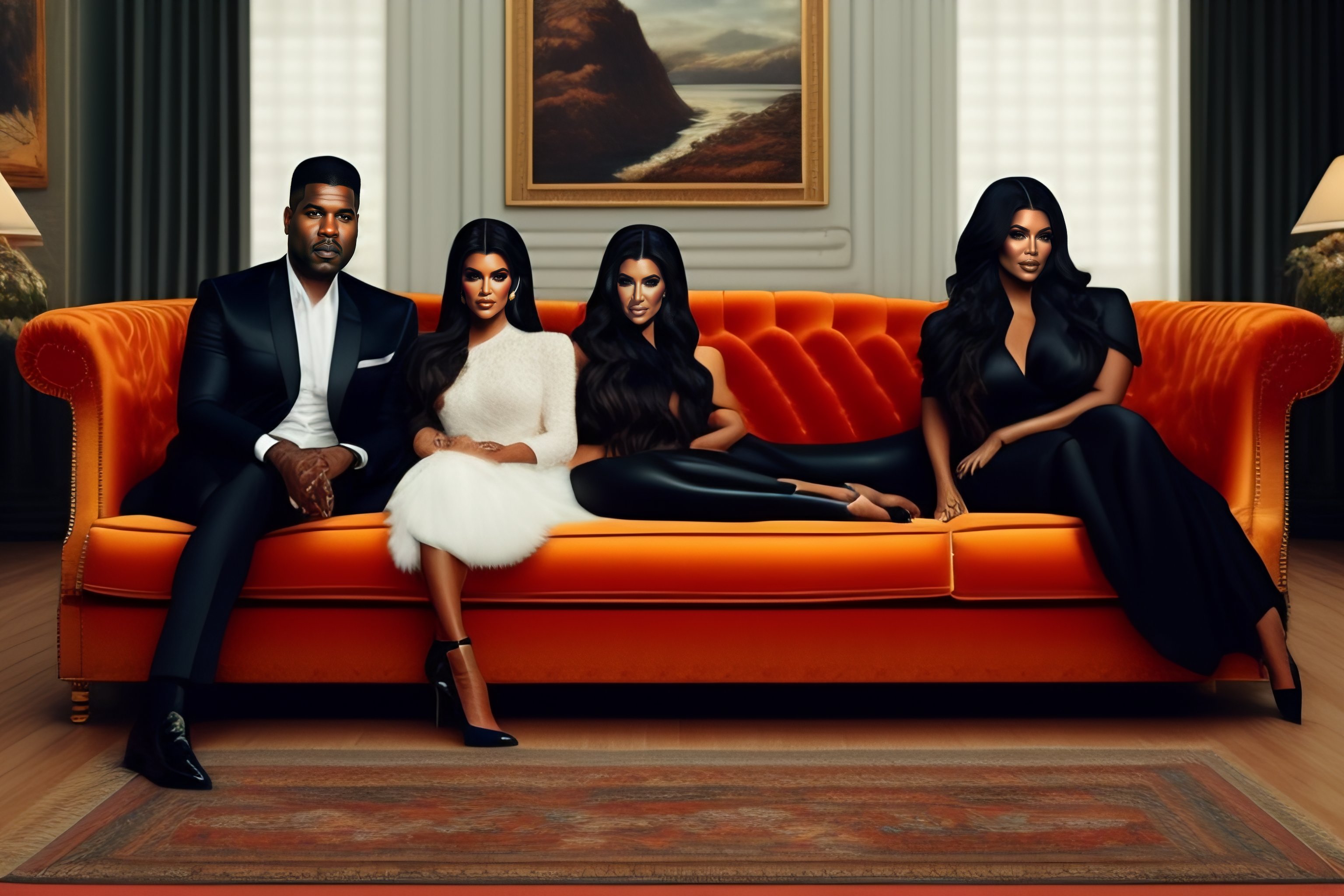Kardashian family sit in sofa