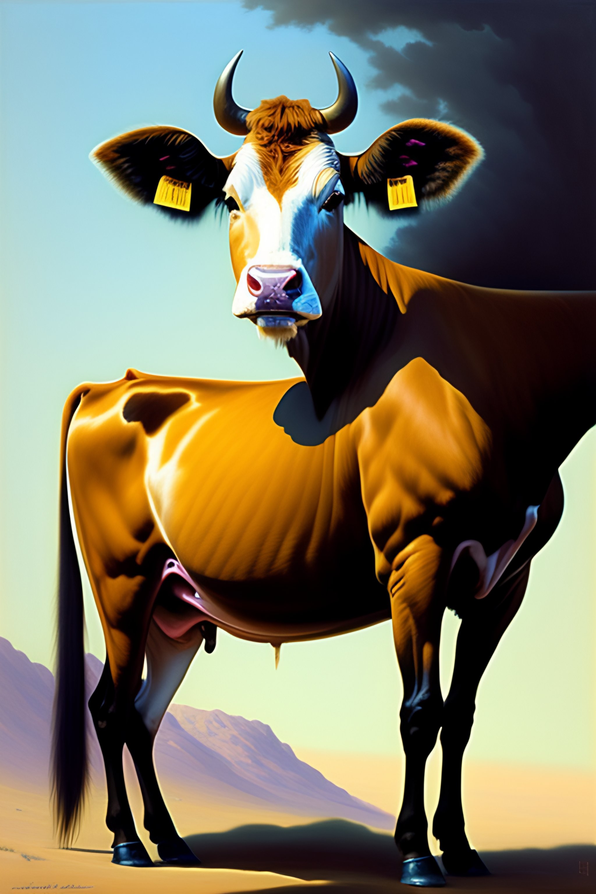 Painting of a cow without - skin, anatomy visible, clear - lines, grim - lighting, high - contrast, intricate, elegant, highly detailed, centered, digital painting, artstation, concept art, smooth, sharp focus, illustration, artgerm, tomasz alen kopera, peter mohrbacher, donato giancola, joseph christian leyendecker, wlop, boris vallejo
