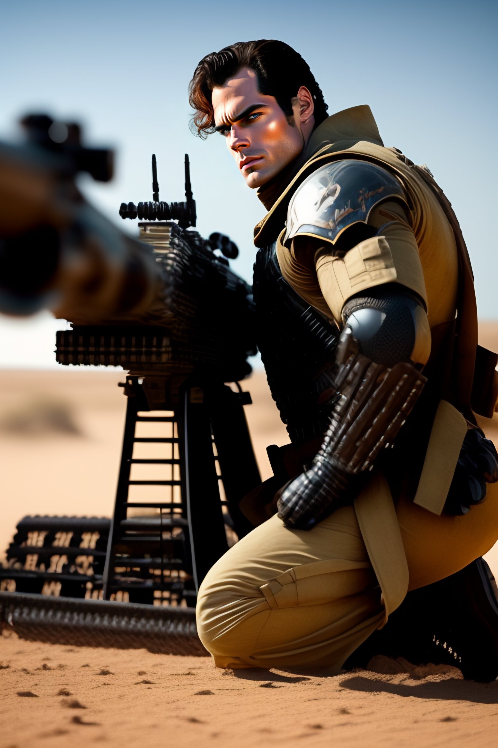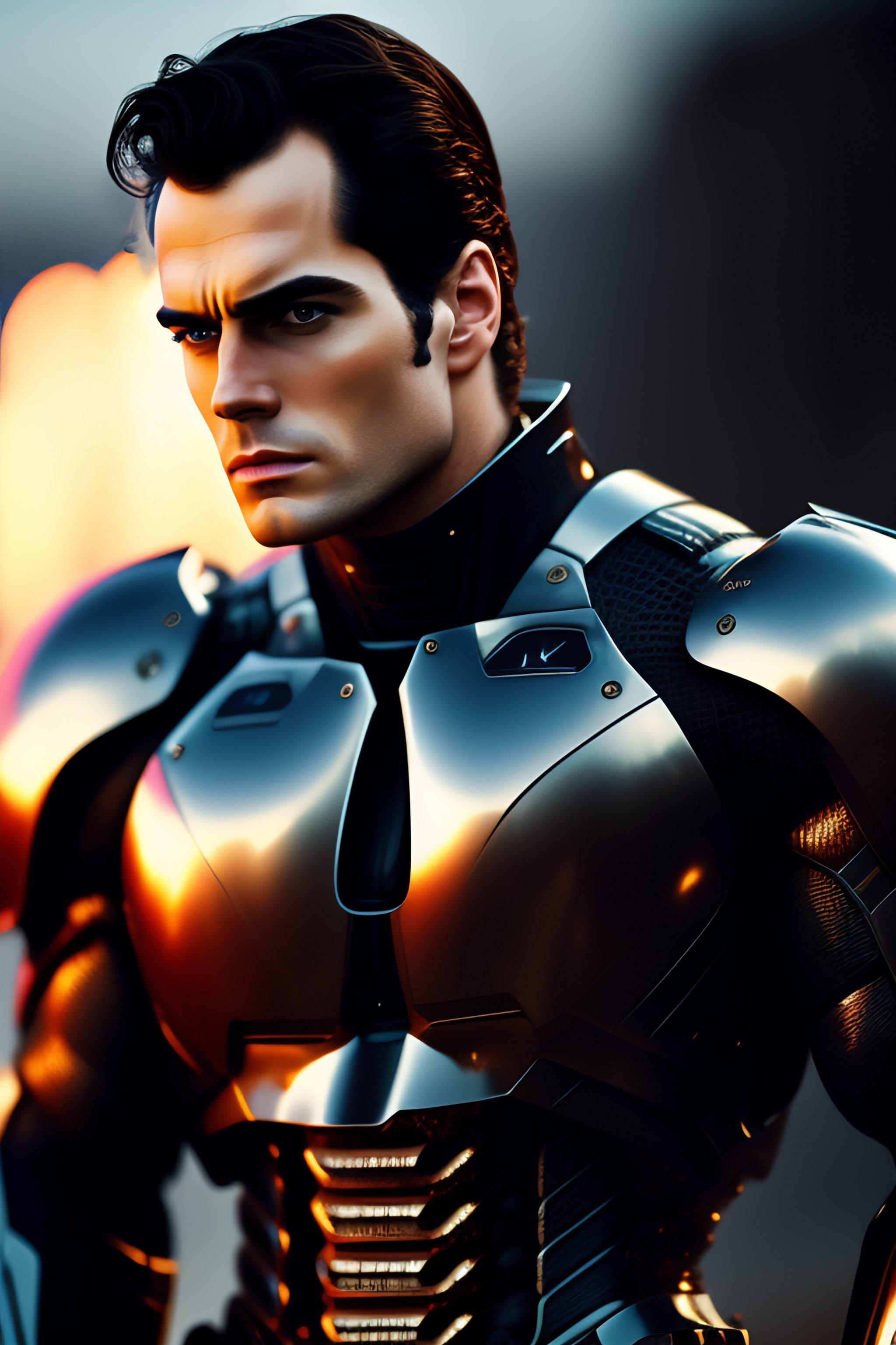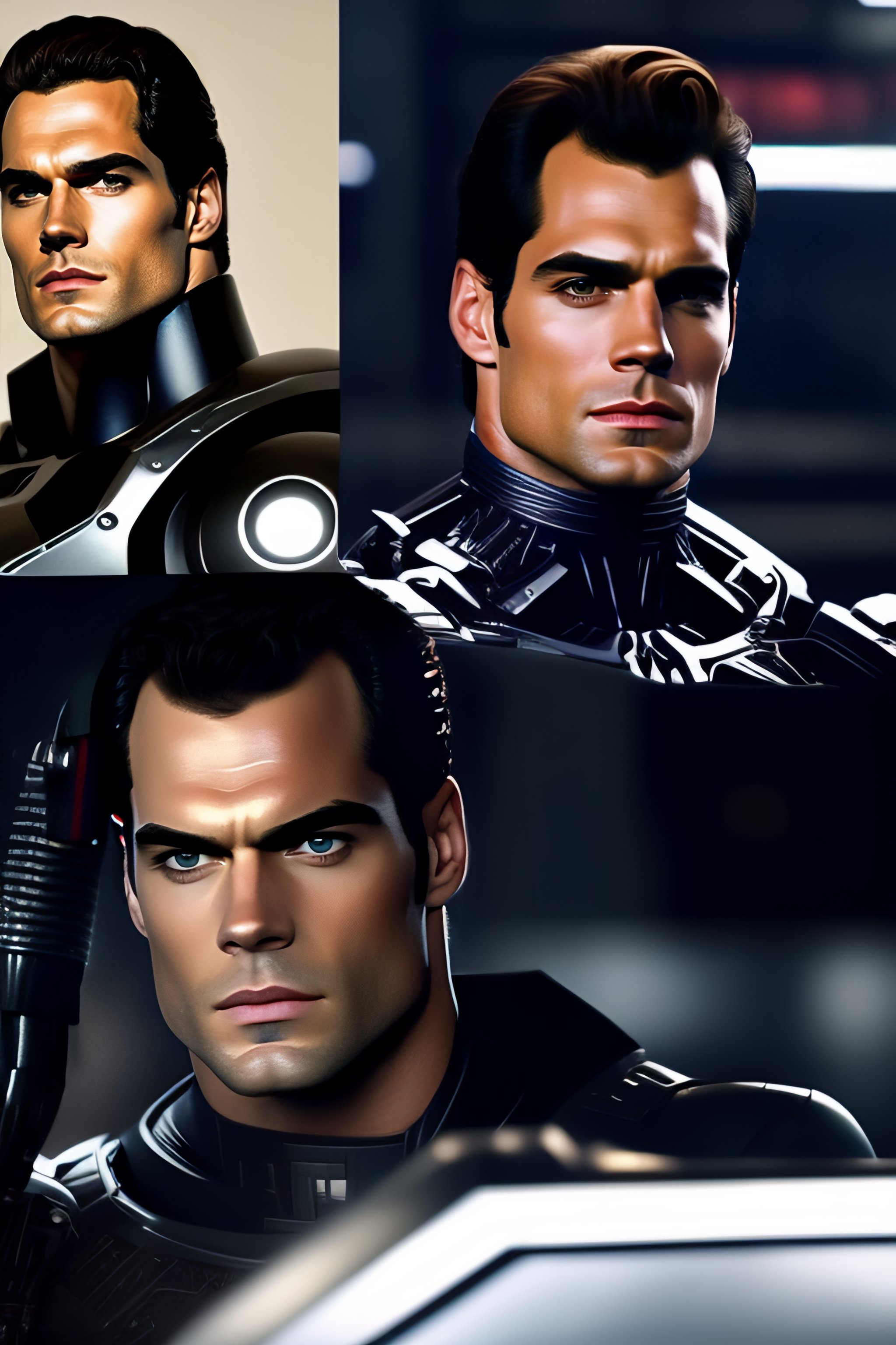 Henry cavill is the terminator (a war machine with a metal skeleton and big gun)