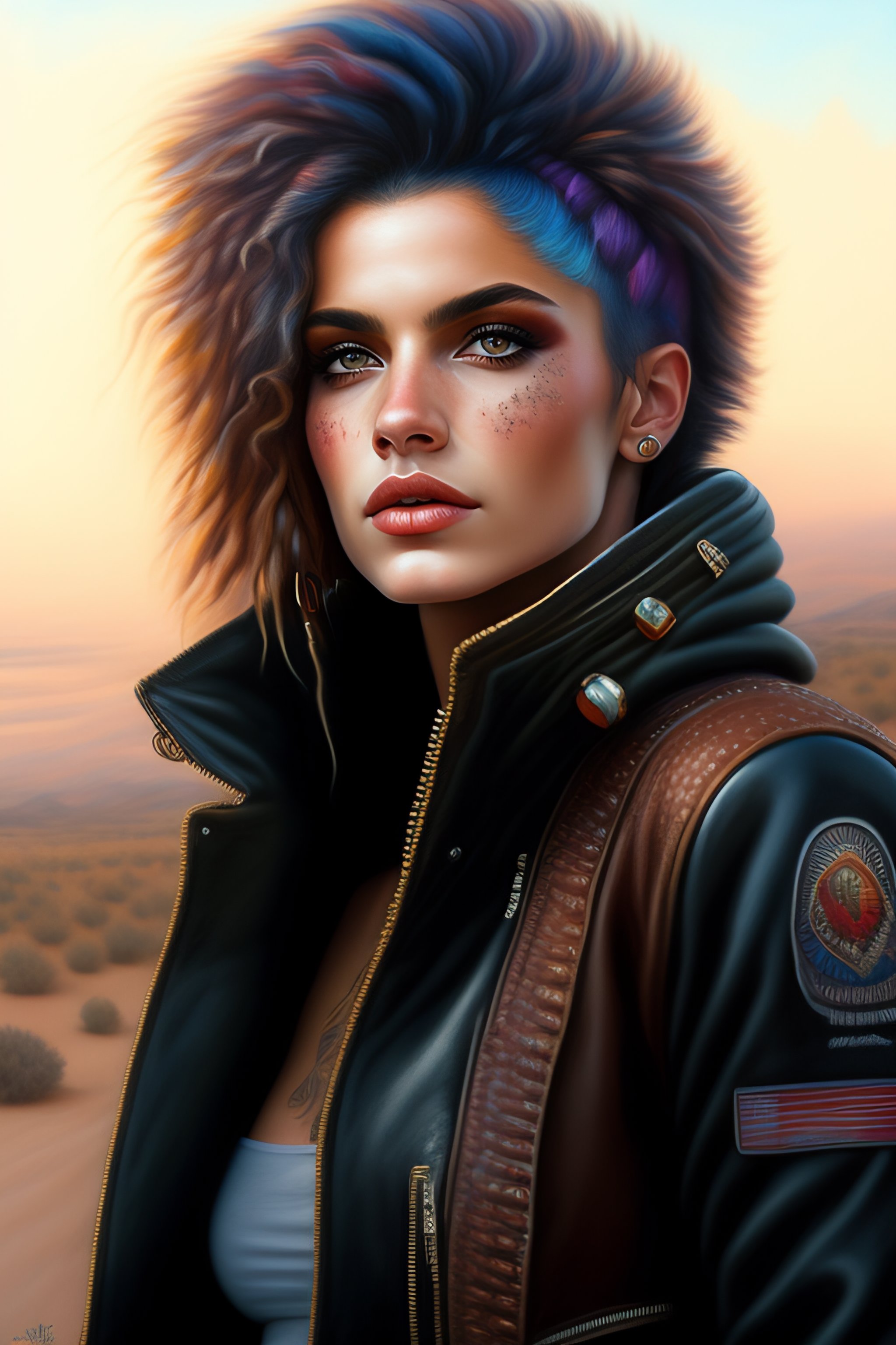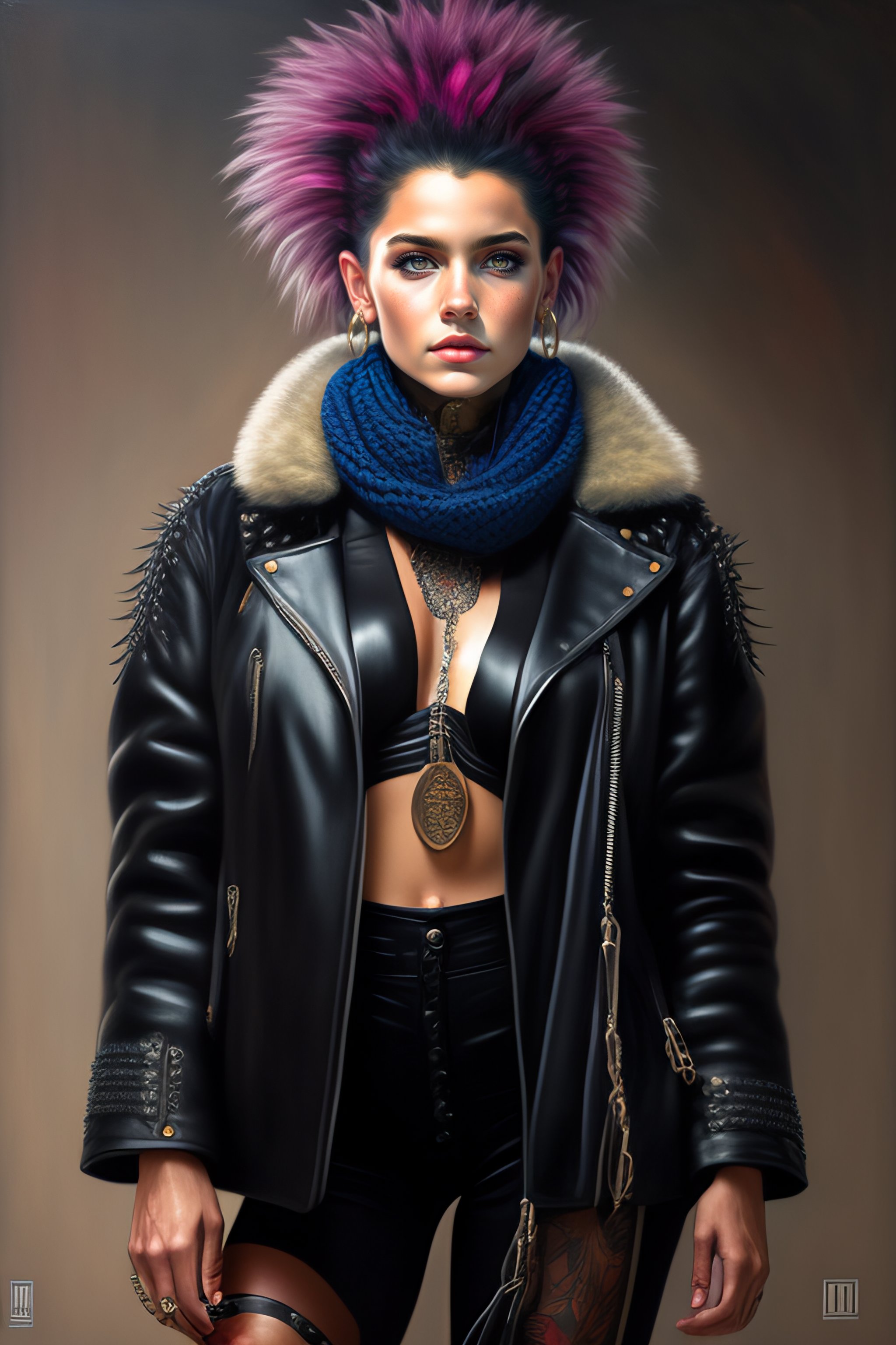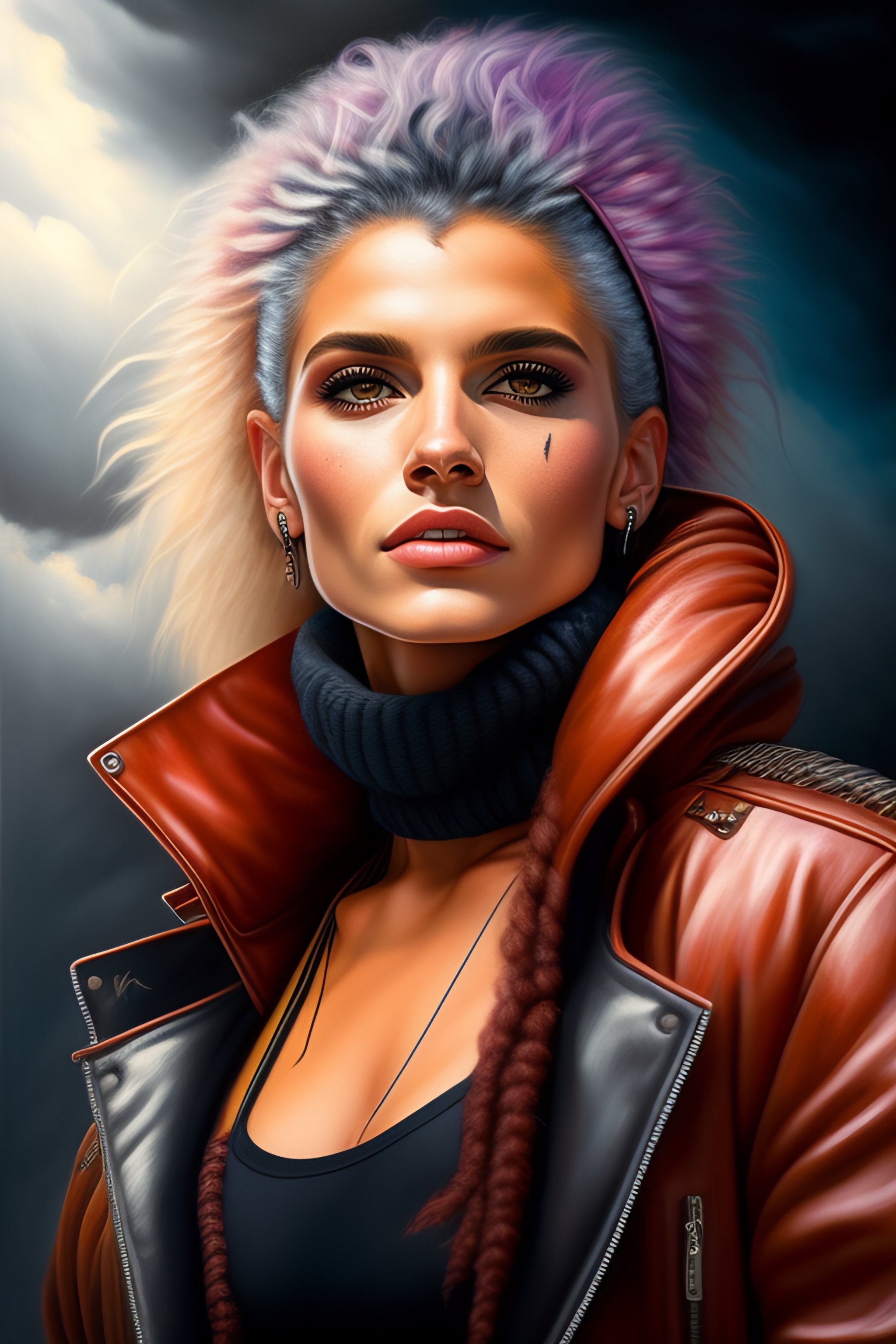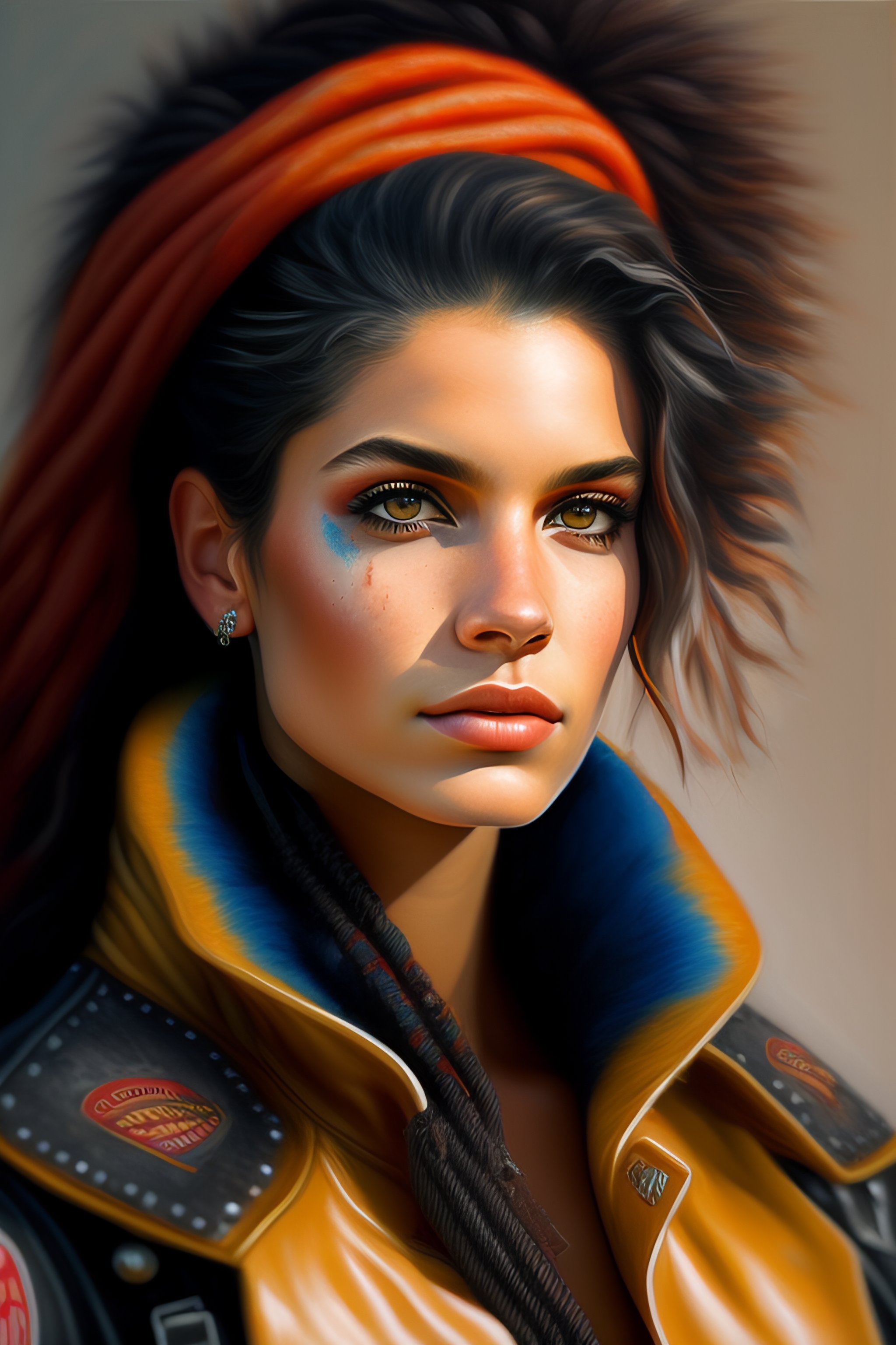 Cute punk rock luiz inácio lula da silva, mad max jacket, renaissance, cables on her body, hyper realistic style, oil painting, fantasy by olga fedorova