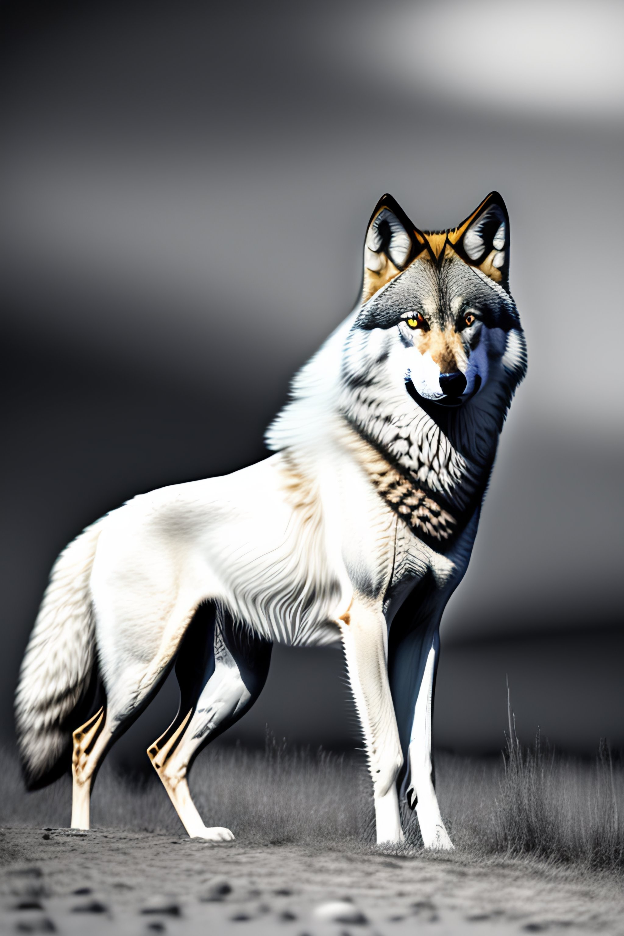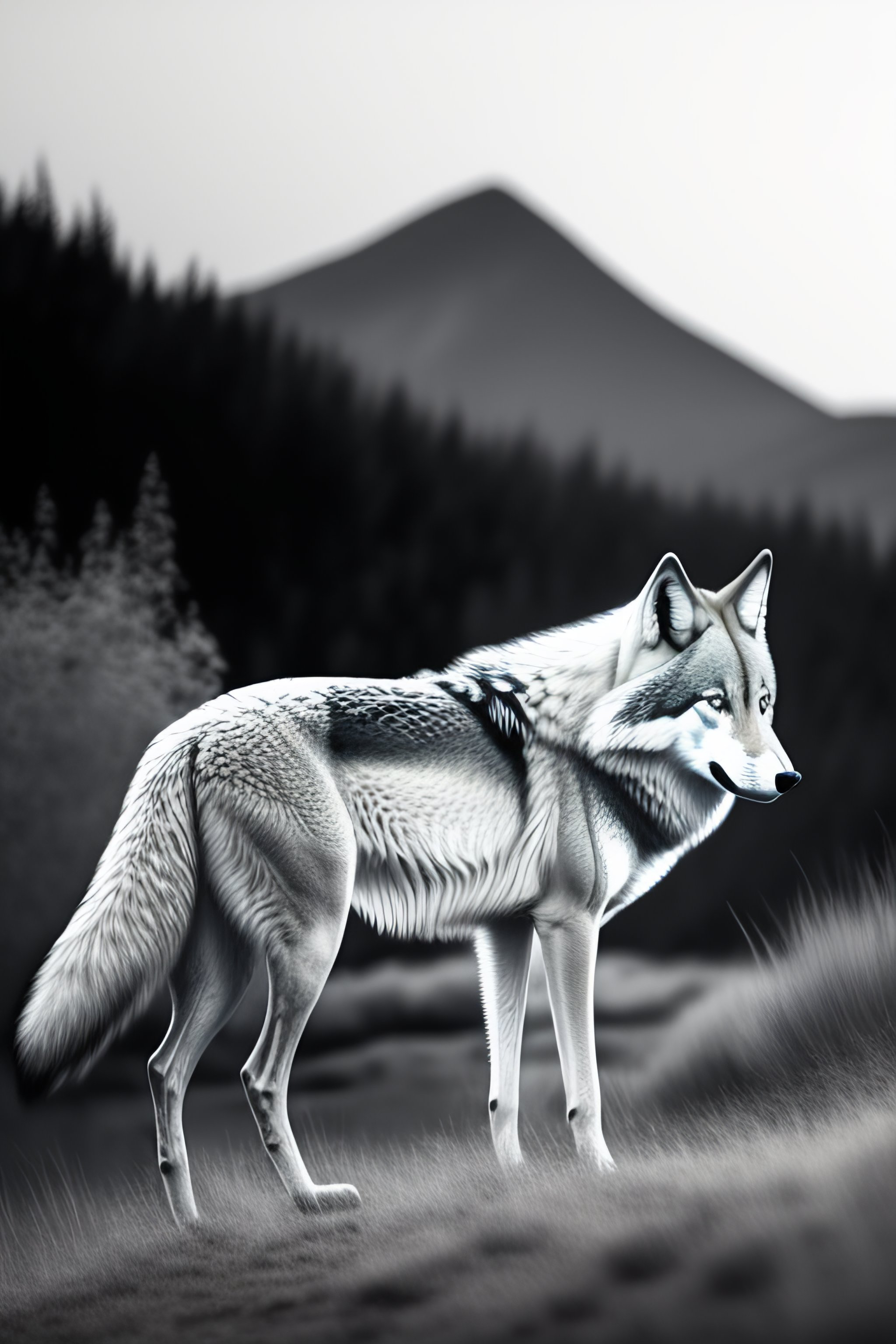 Wolf template base, digital line-art, full-body sideways view, simple, black and white, high quality, hd, 8k