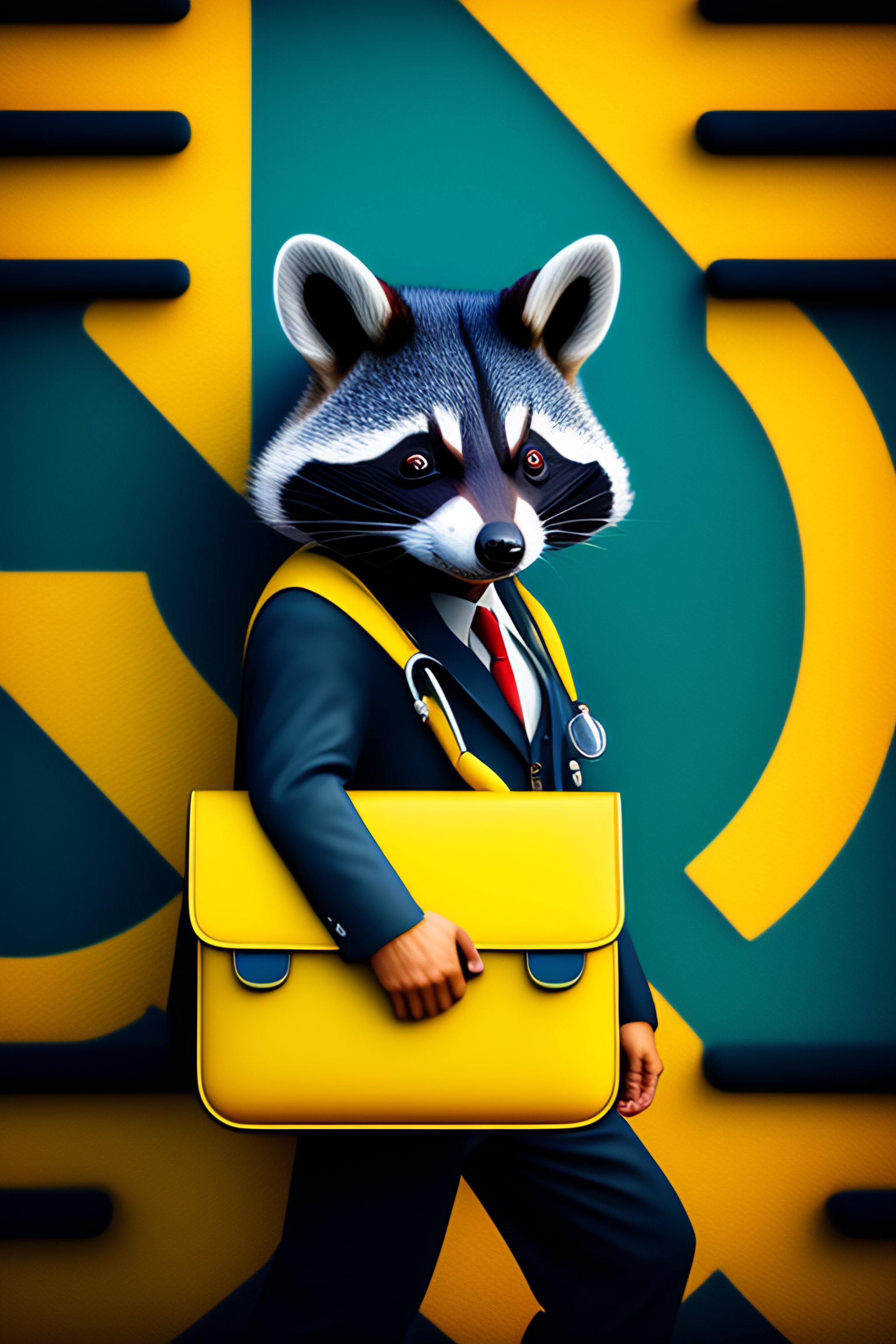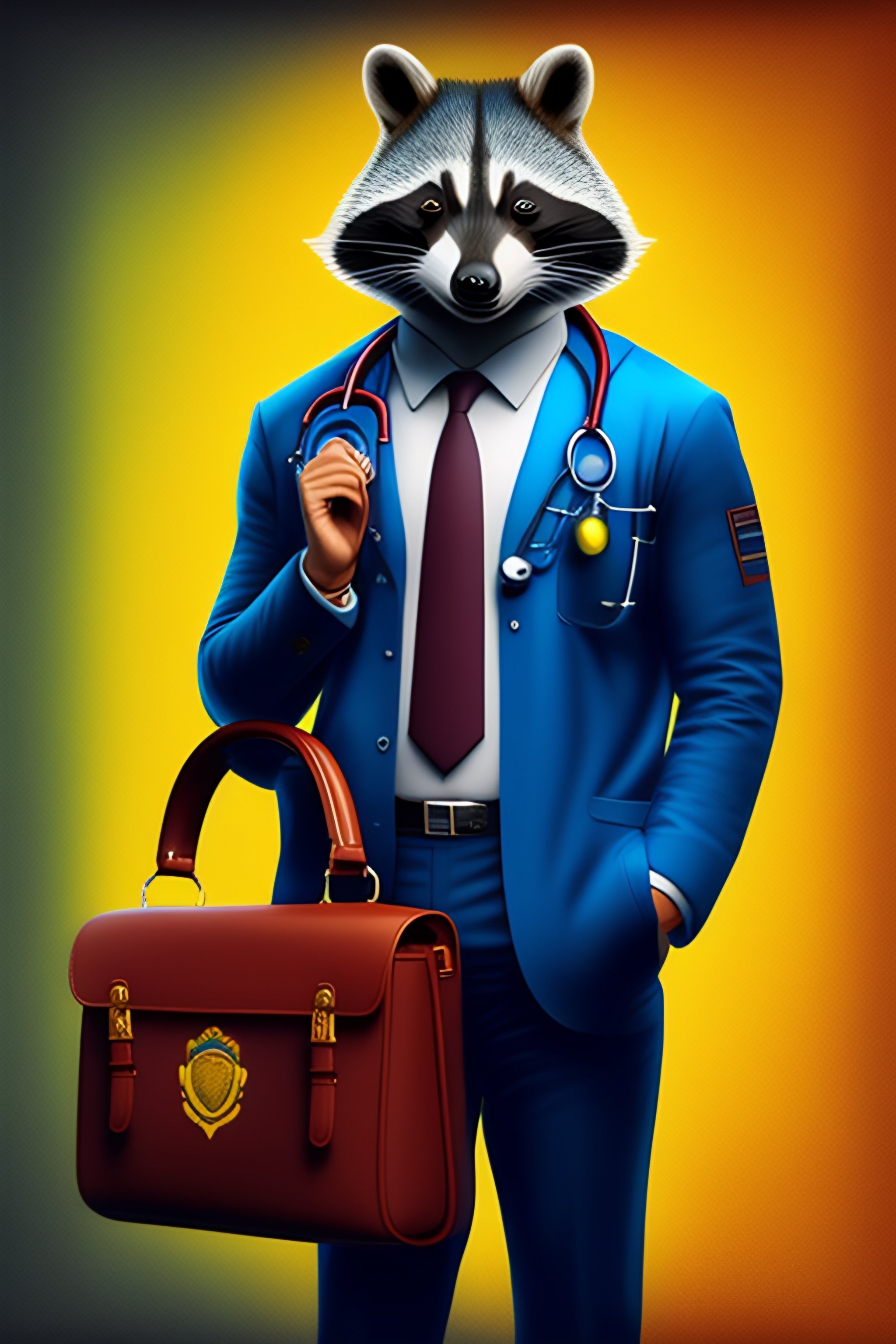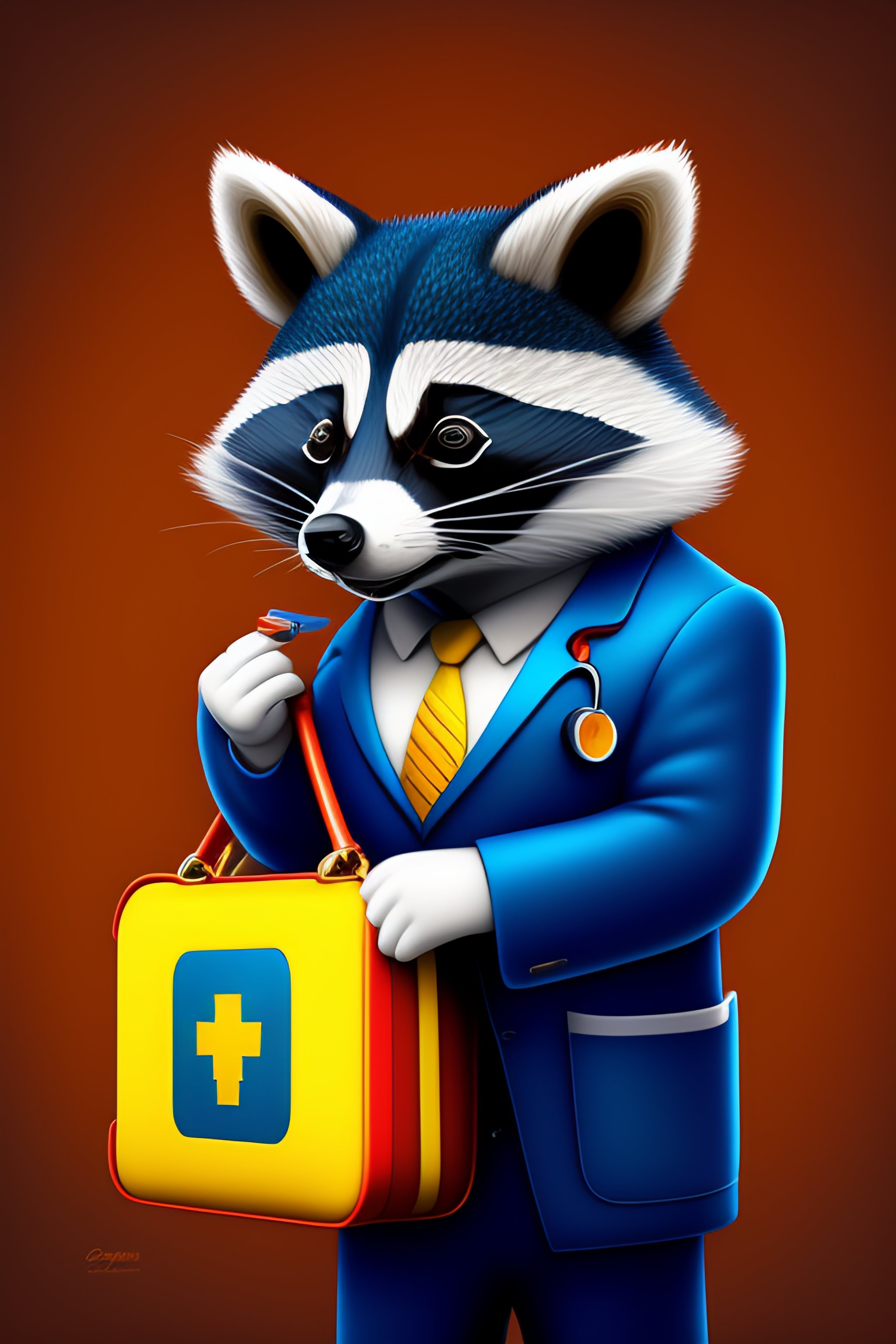 Cute cartoonish racoon doctor with a briefcase