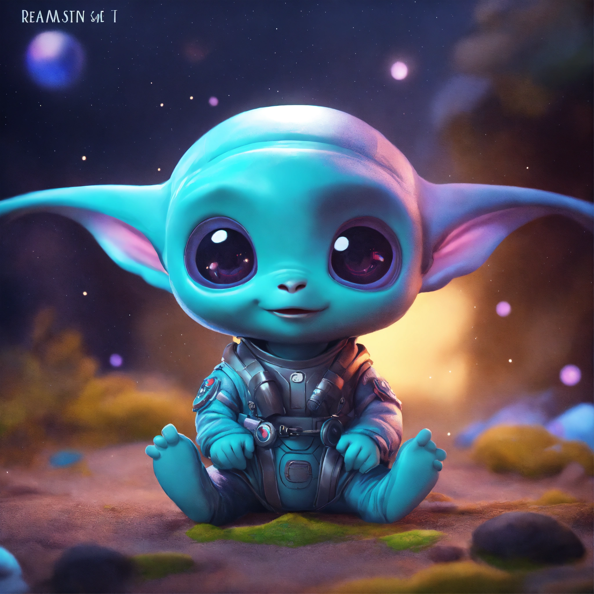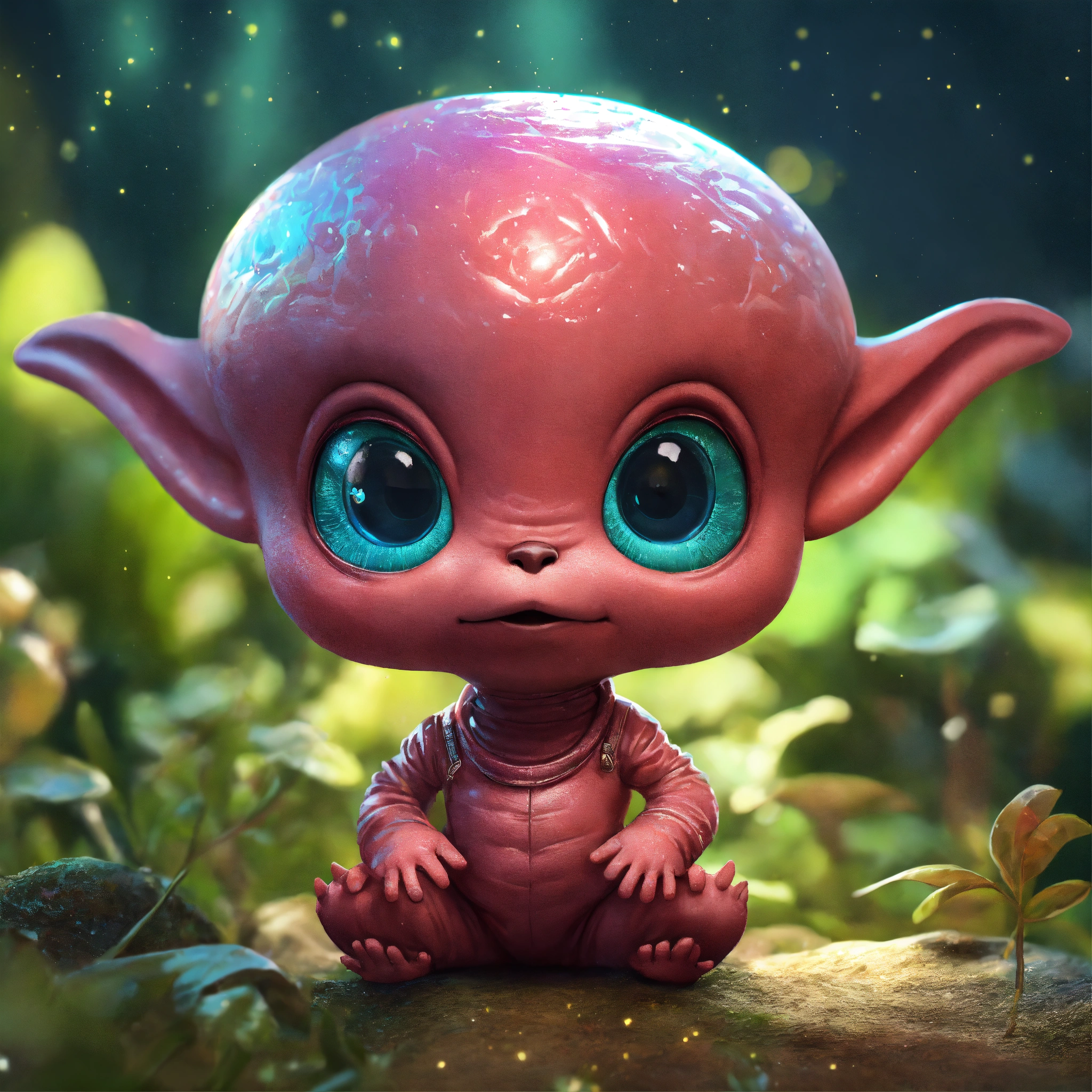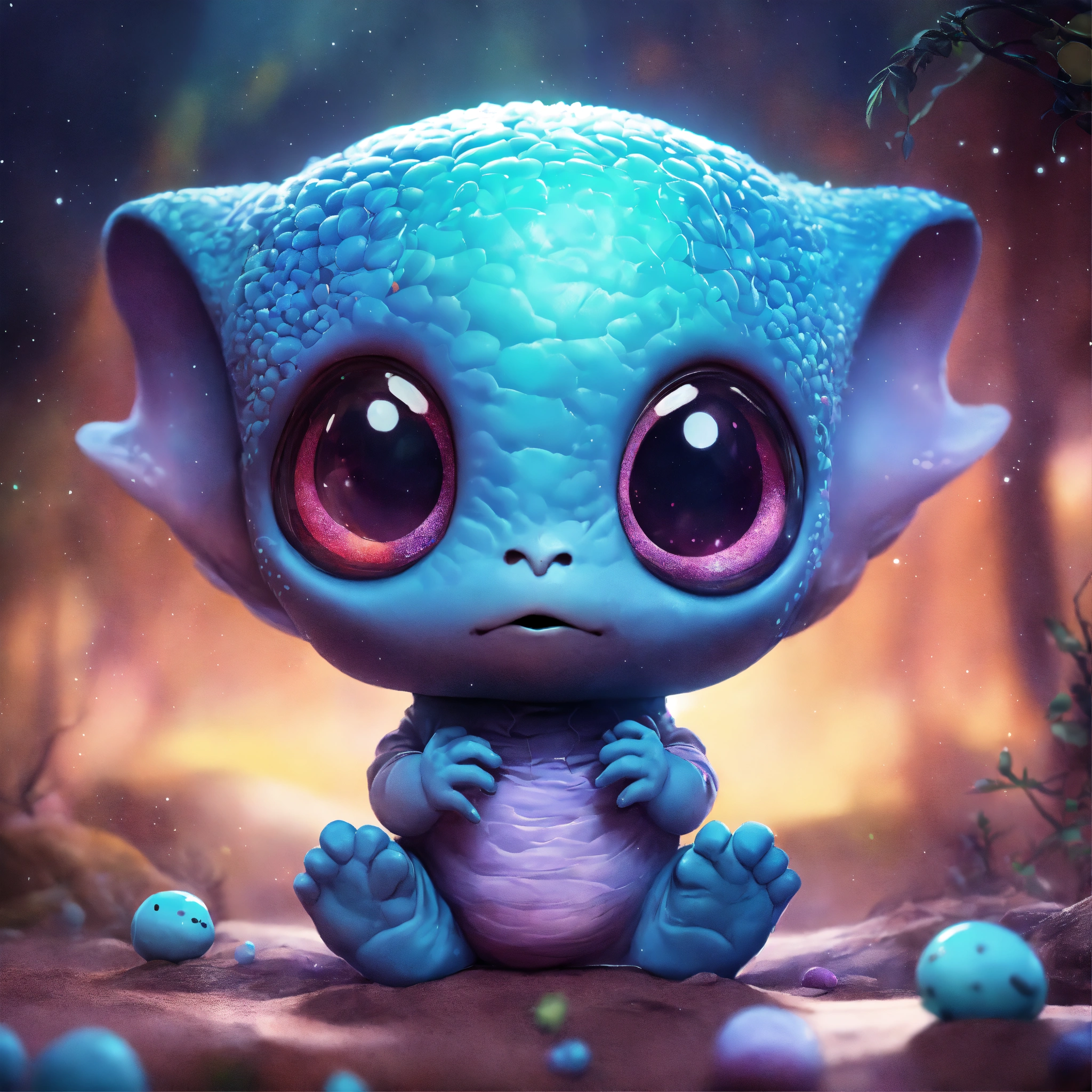 Cute and adorable cartoon alien baby, fantasy, dreamlike, surrealism, super cute, trending on artstation