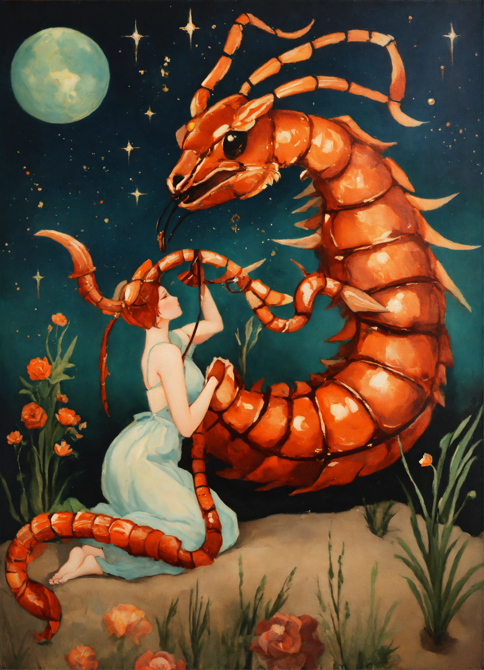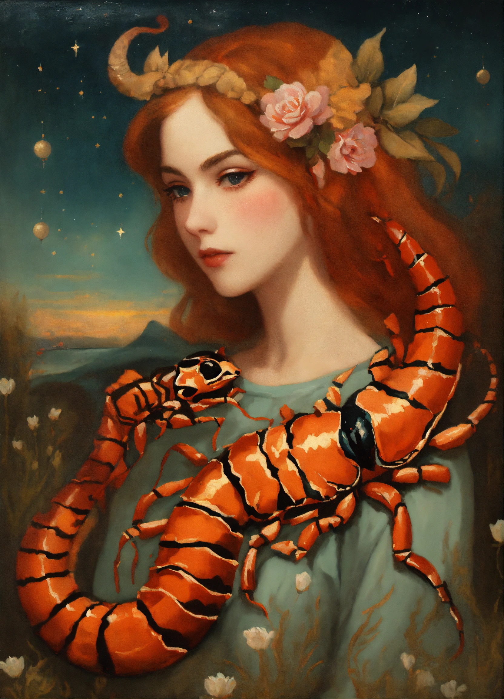 Scorpio zodiac sign cute occult aesthetic vintage oil painting