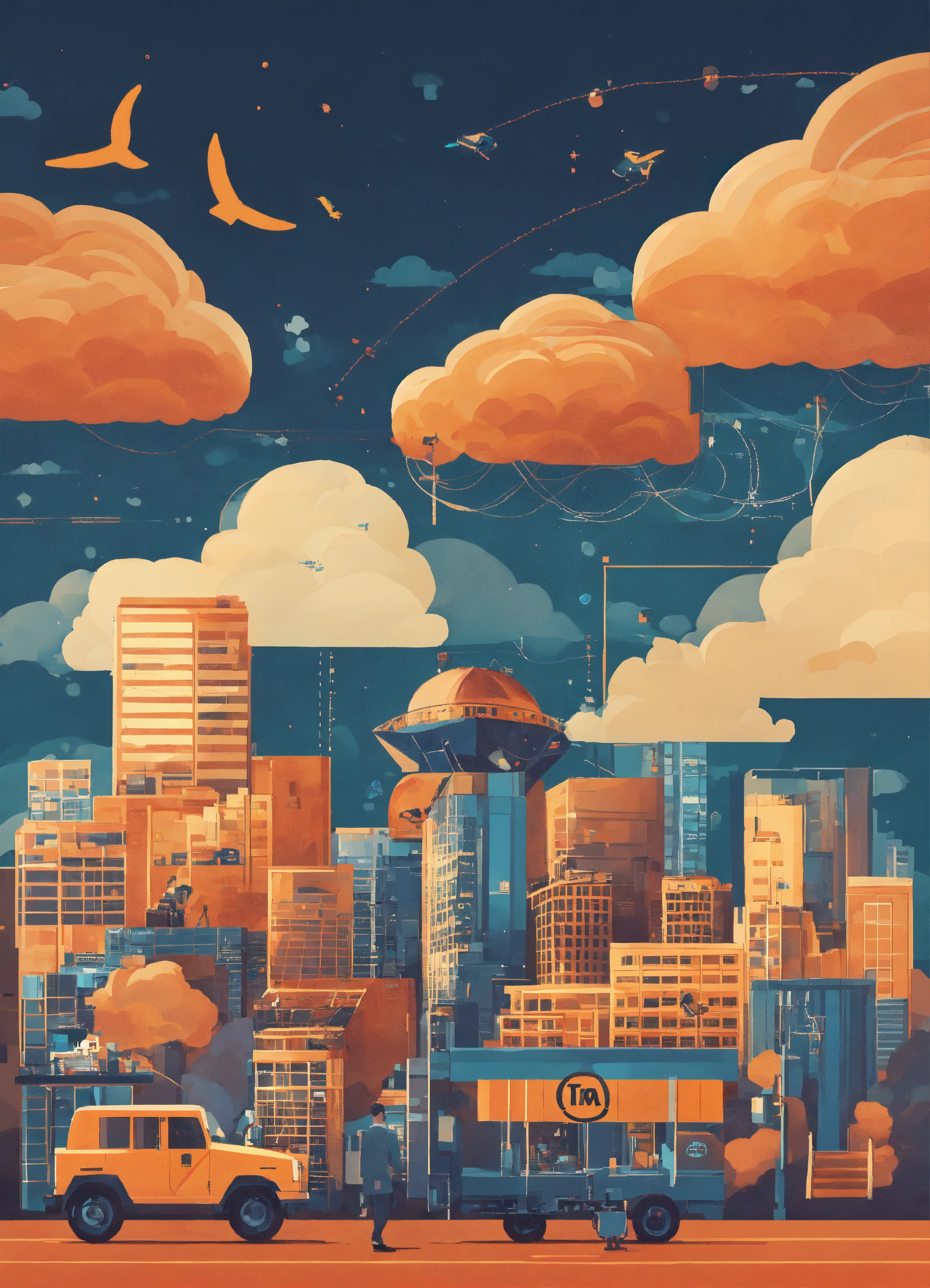 Create an image that symbolizes amazon's rise and dominance in the cloud computing industry. depict amazon's journey from being an established powerhouse in the cloud computing industry, highlighting the use of a/b statistics as a driving force behind its success.