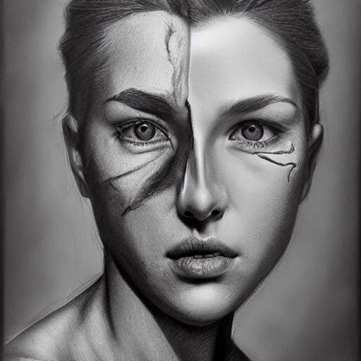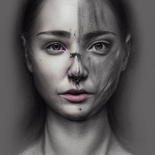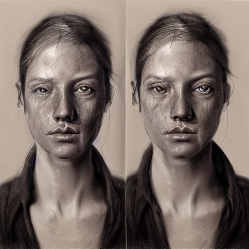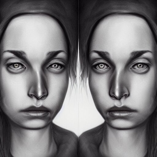 A two people's face blending together!!!!!!, photorealistic art style, charcoal drawing by richard mortensen, matte drawing, hyper realism, zbrush, mannerism