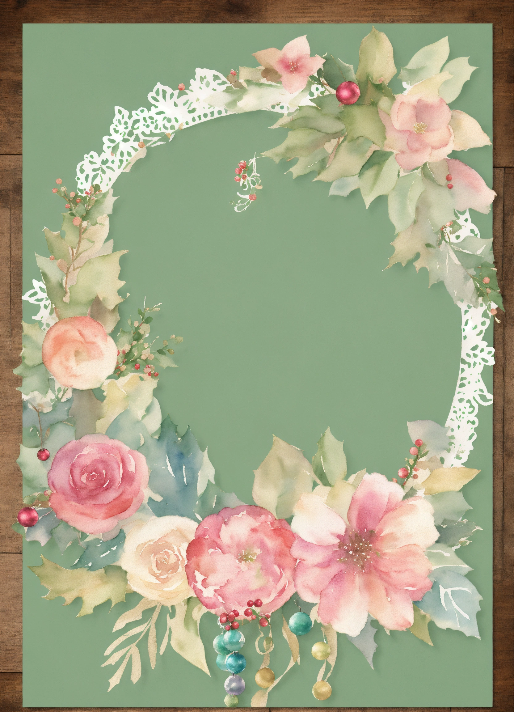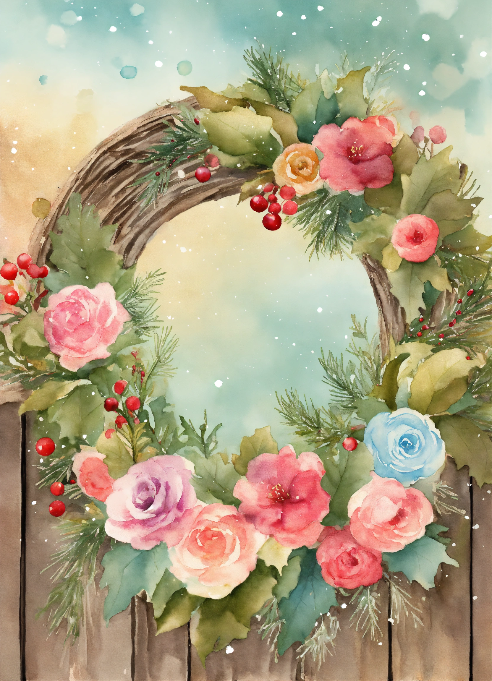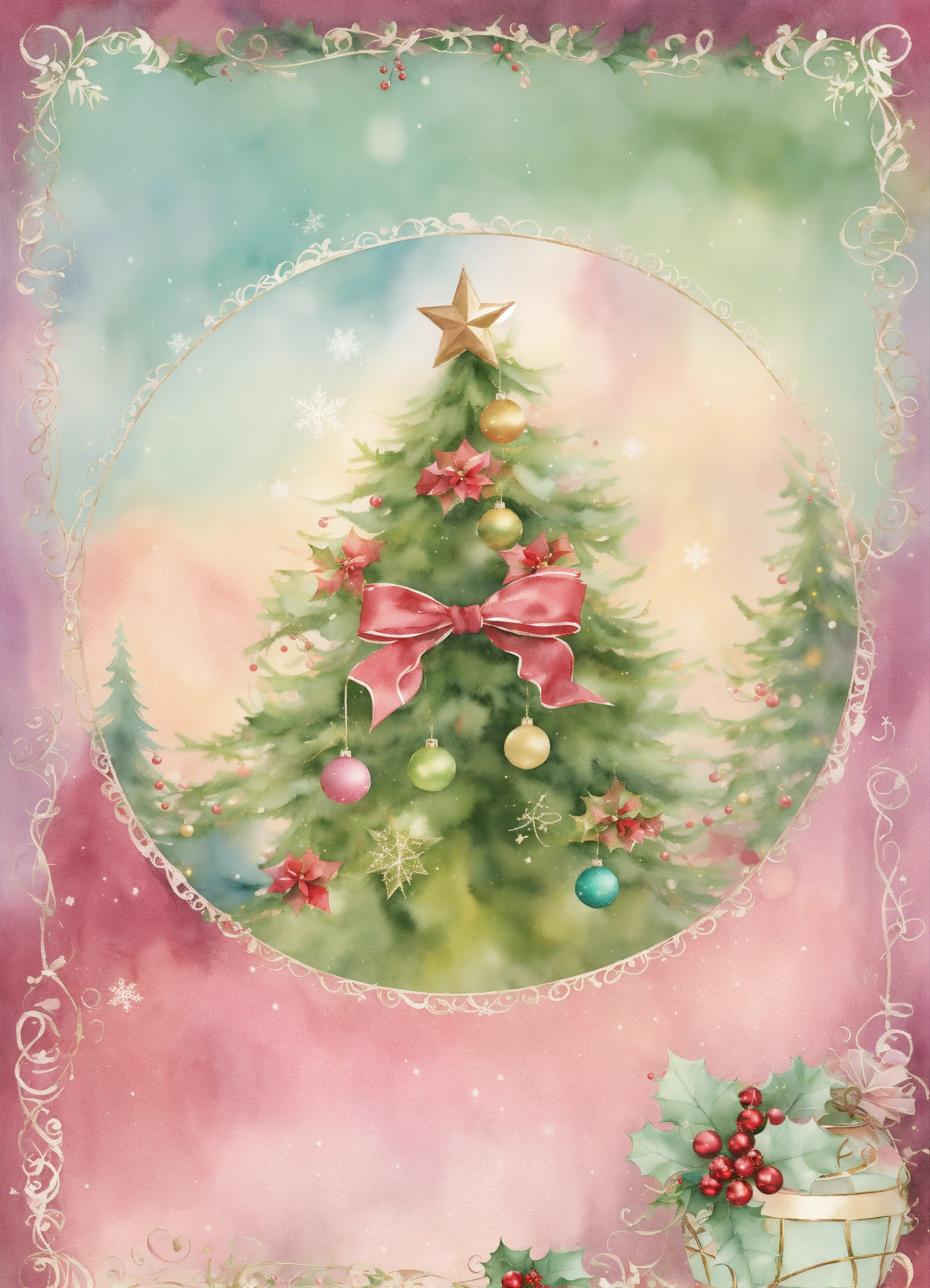 Shabby chic dreamy mist pastel junk journals "create enchanting watercolor illustrations of christmas scenes, featuring festive holiday elements and characters. wreath a circular arrangement of flowers, leaves, or other materials, commonly hung on doors during christmas. provide each element, such as ornaments, christmas trees, santa claus, reindeer, and more, as separate png images, perfect for easy cutting and use in crafting projects like card making, scrapbooking, and creating holiday-themed decorations. these digital illustrations should capture the joyful and magical spirit of christmas, offering a versatile resource for creating heartwarming and visually captivating holiday crafts." swirling magical fairytale abstract art style
