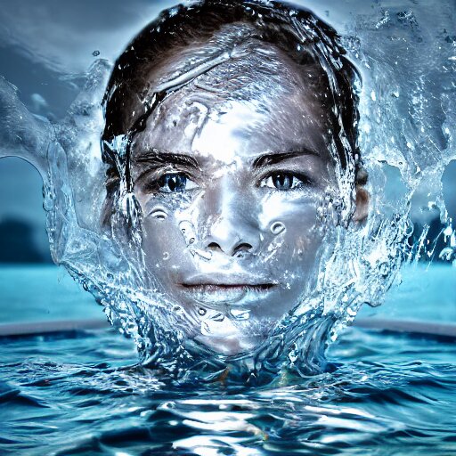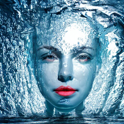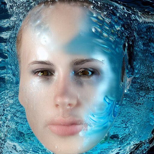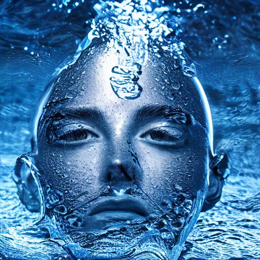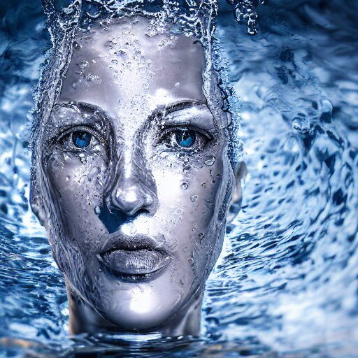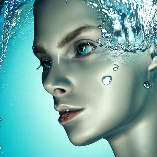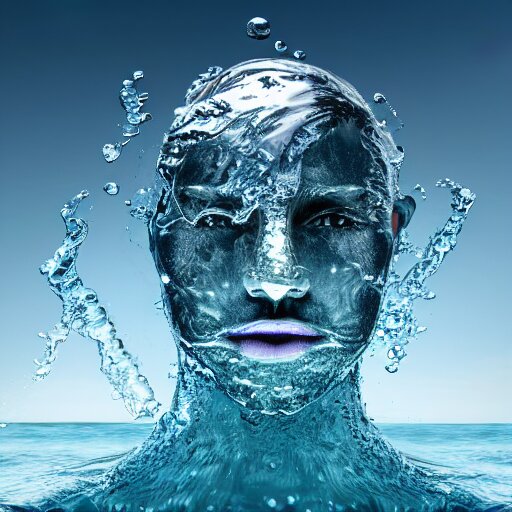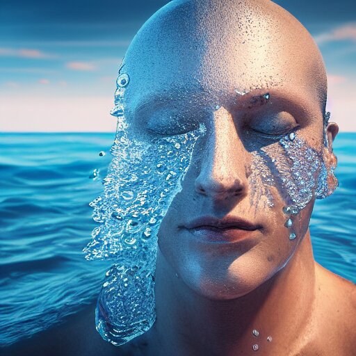 Water artwork manipulation in the shape of a human head, on the ocean water, ray tracing, realistic water sharp focus, long shot, 8 k resolution, cinematic, amazing water art