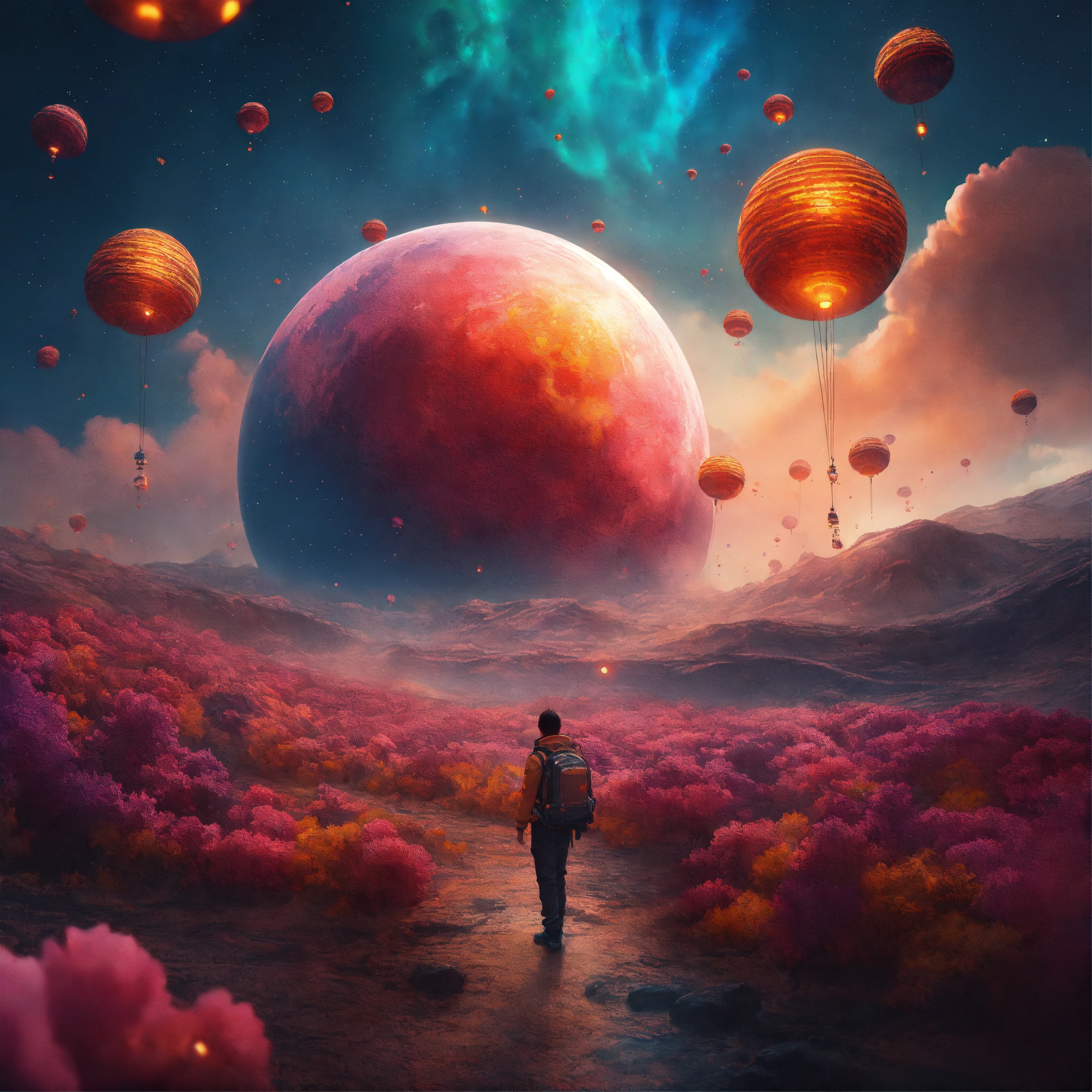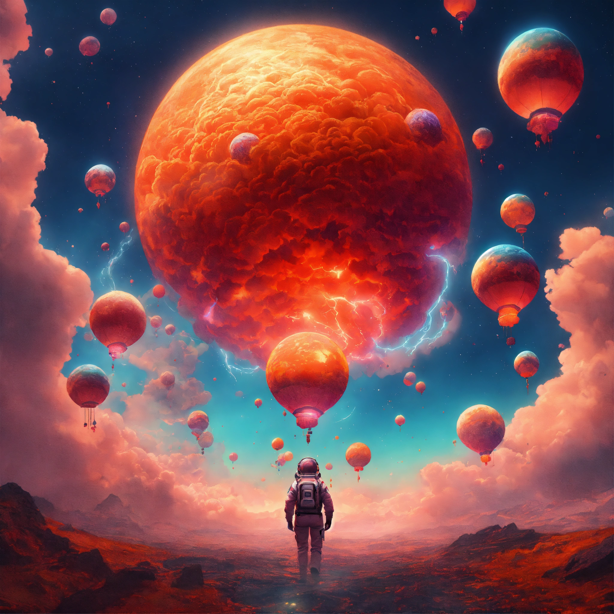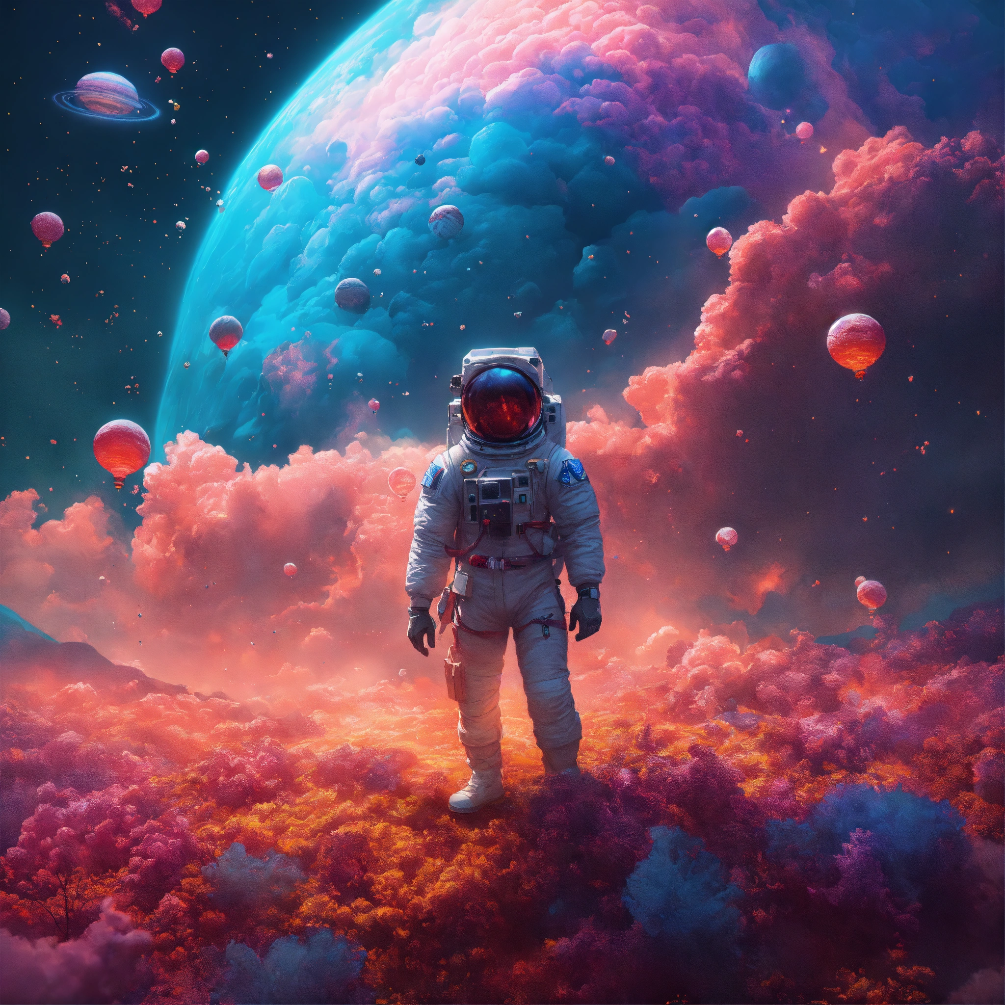 Space cloudscape, lone astronaut falling in jupiter clouds, million tiny lanterns hovering in cosmic clouds, epic scene, vibrant colours, dynamic lighting, digital art, winning award masterpiece, fantastically beautiful, illustration, aesthetically inspired by beksinski and dan mumford, trending on artstation, 8 k, digital art by beeple, a hyper - detailed 3 d render of our irrational fear of non - existence, surrealism!!!!! surreal concept art, lifelike, photorealistic, digital painting, aesthetic, smooth, sharp focus, artstation hd, cinematic, hyper realism, high detail, octane render, unreal engine, smooth gradients, high contrast, depth of field, aperture