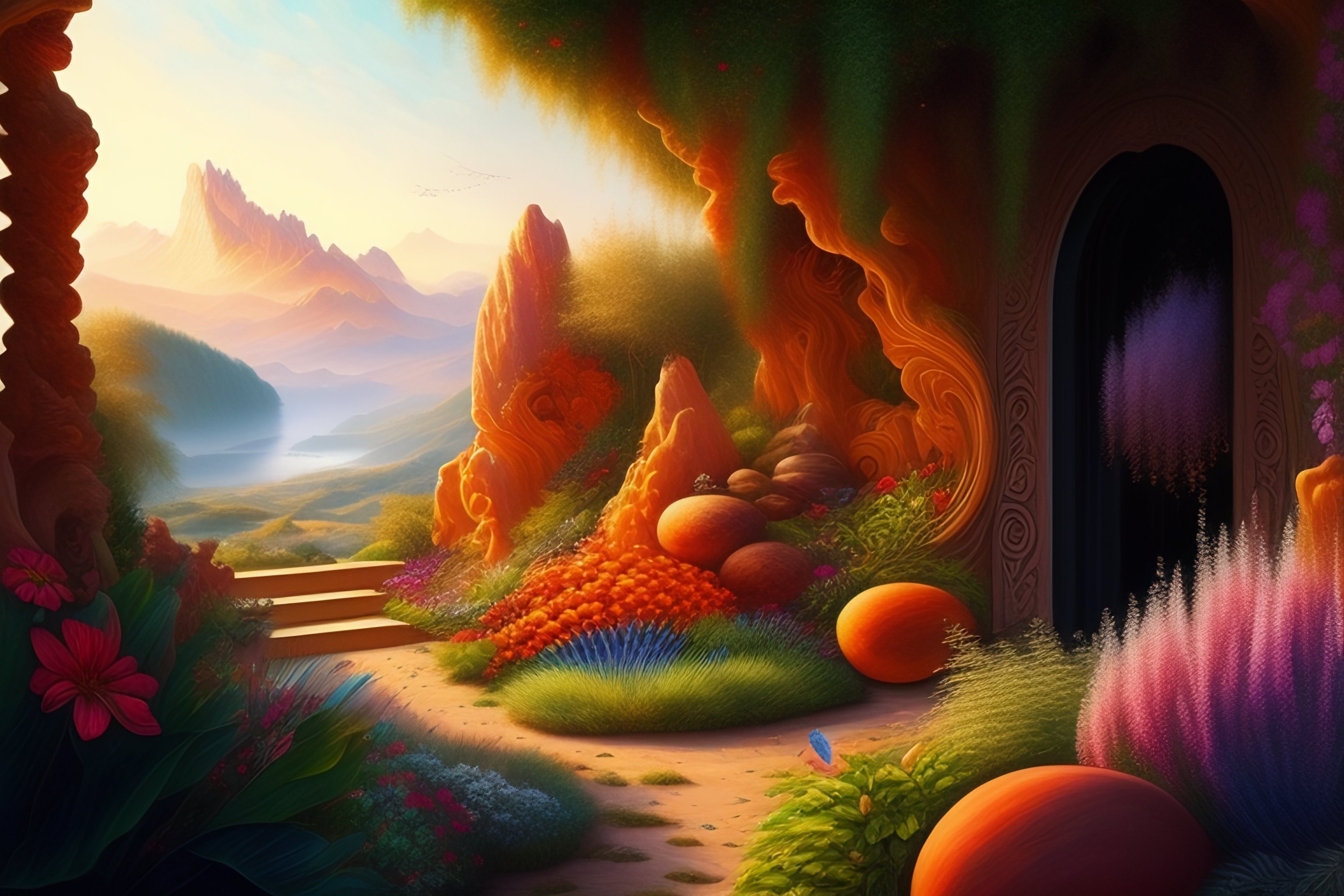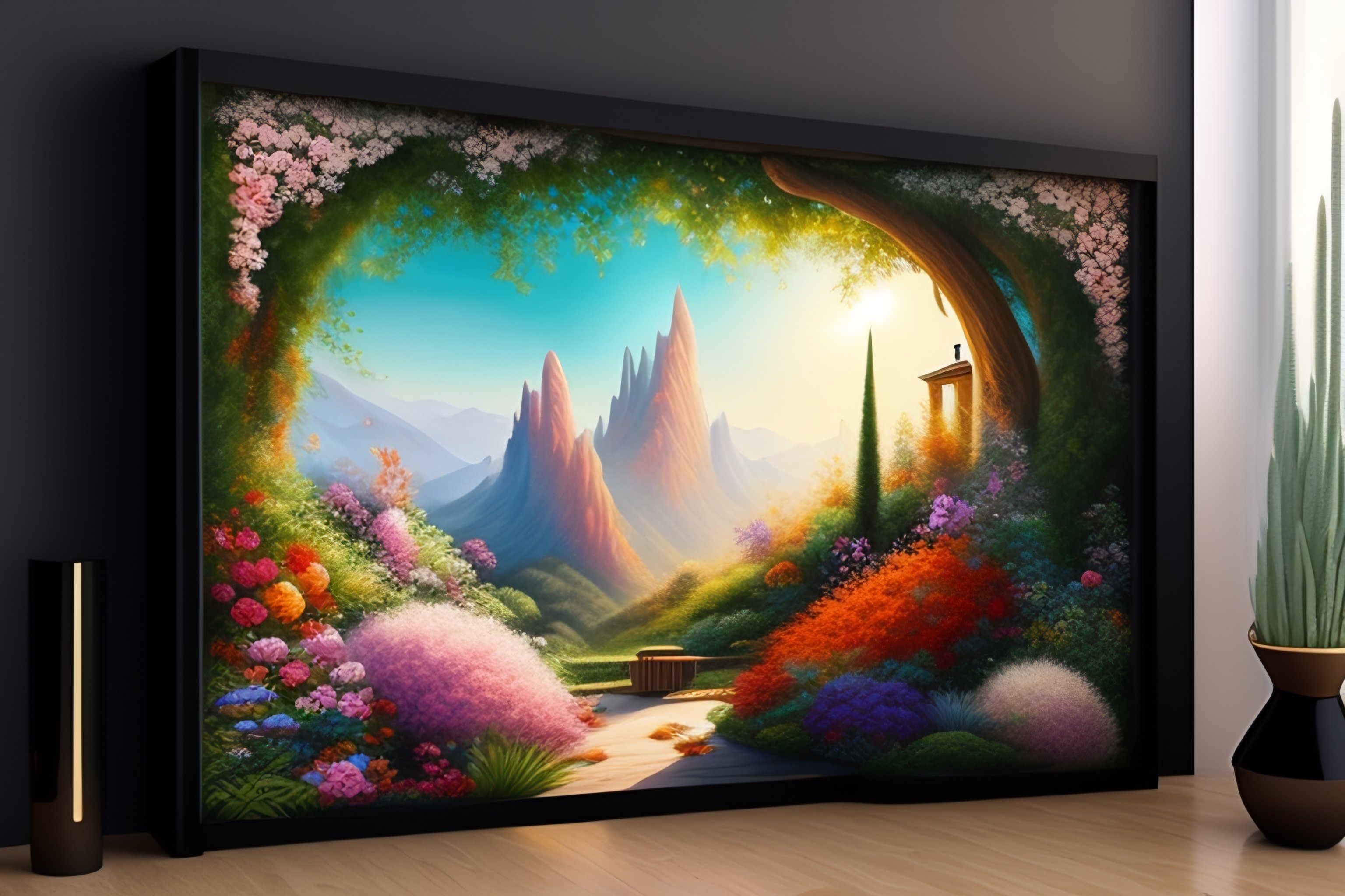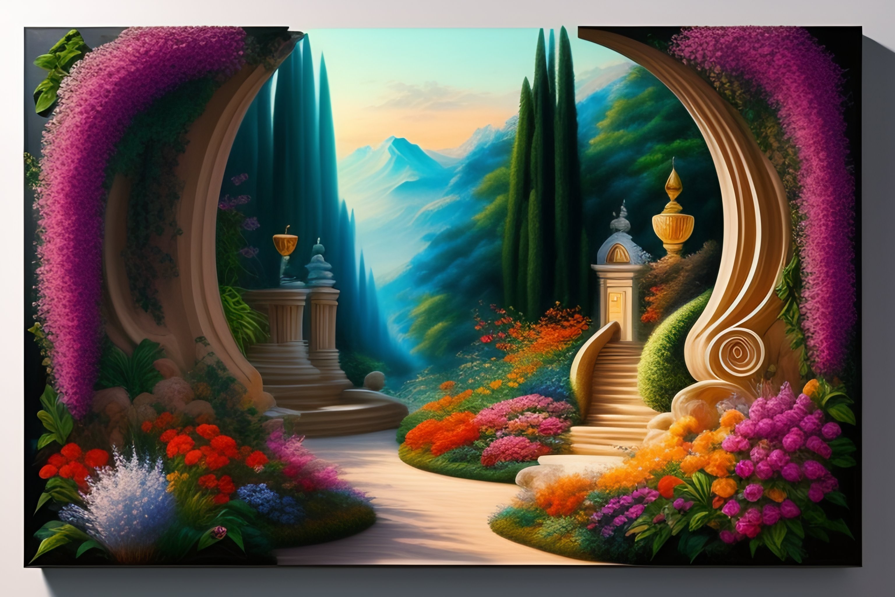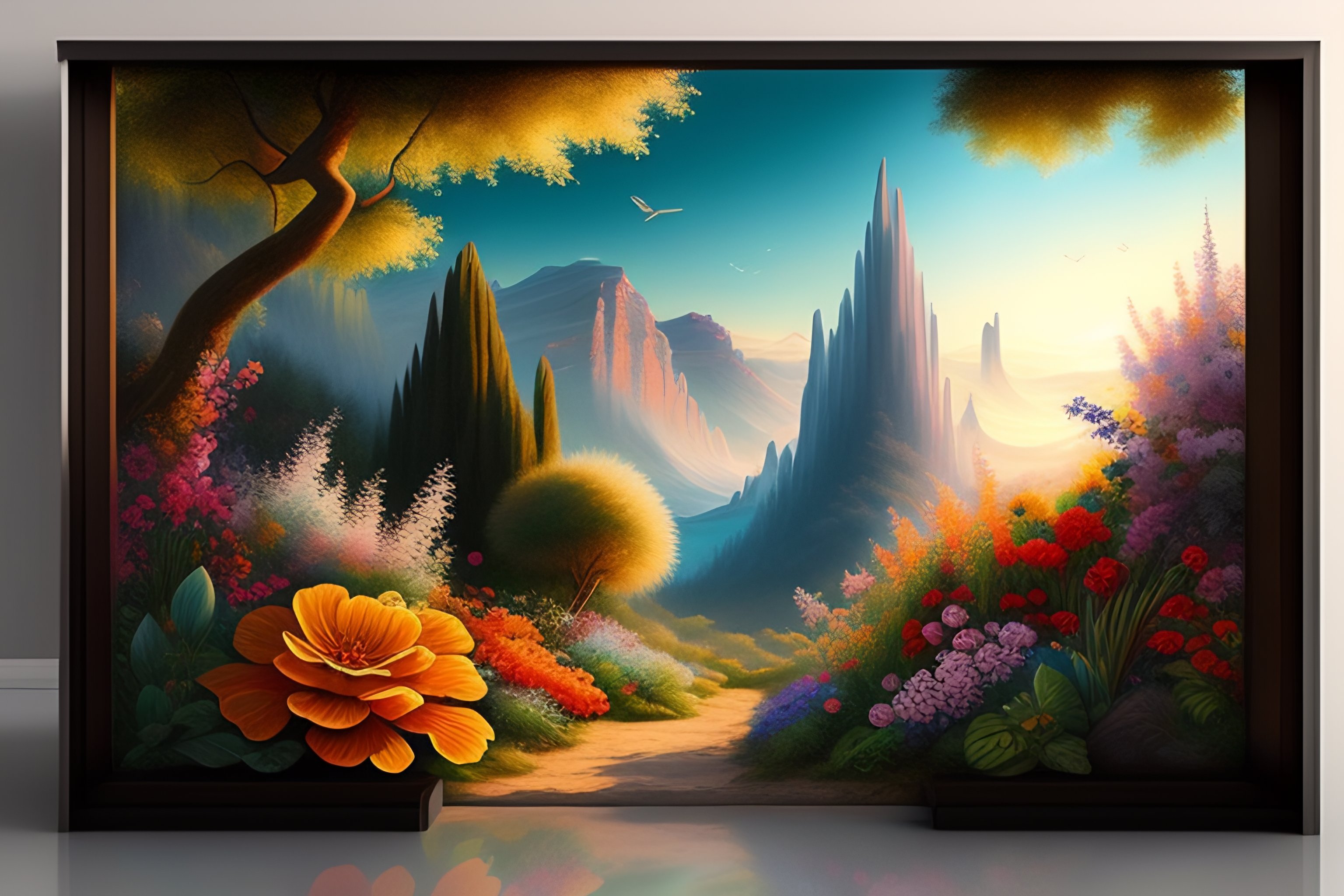 Very very very very highly detailed panel: volumetric modern painting "garden of eden" texture paste, painting with flowers, three-dimensional painting, bas-relief, gypsum mixture