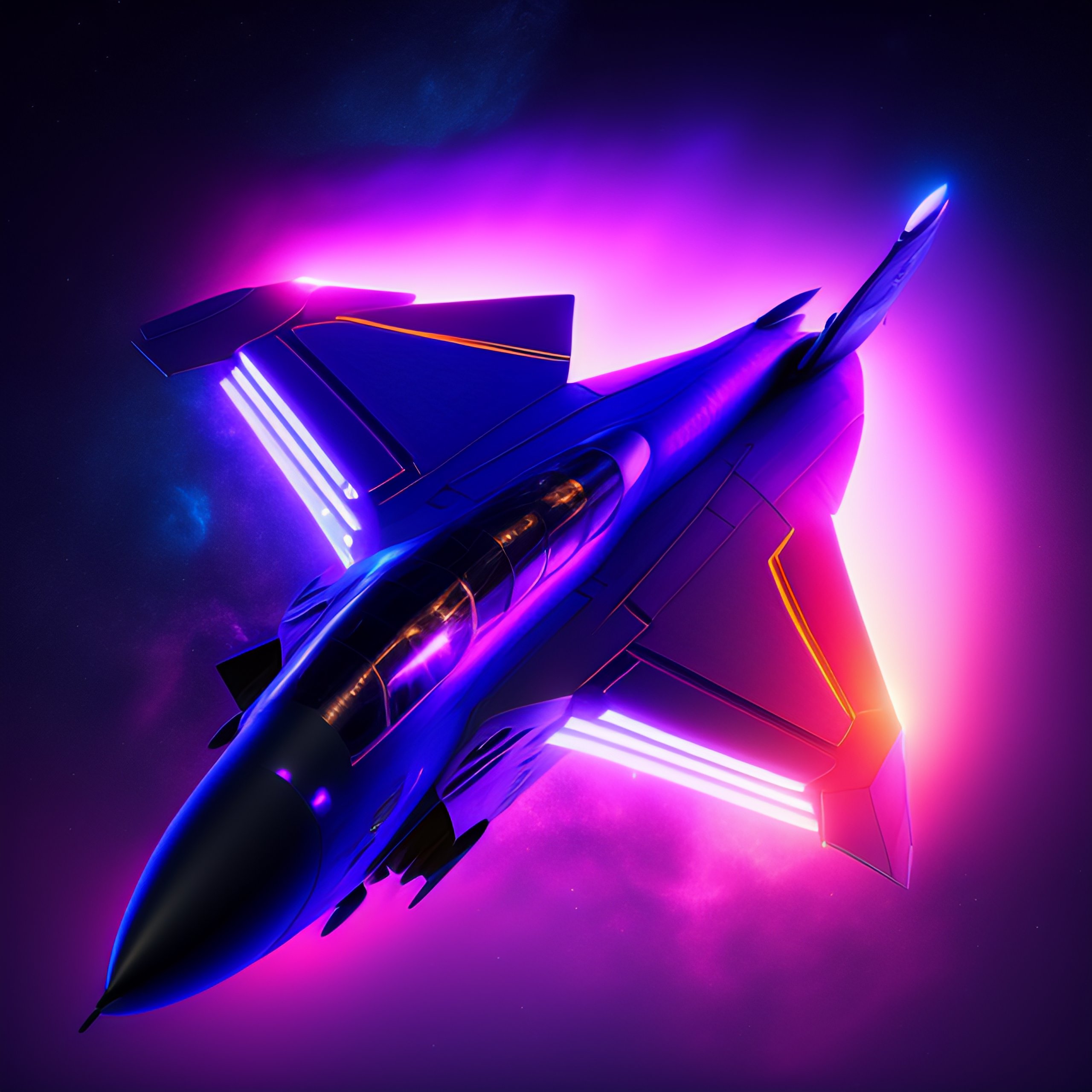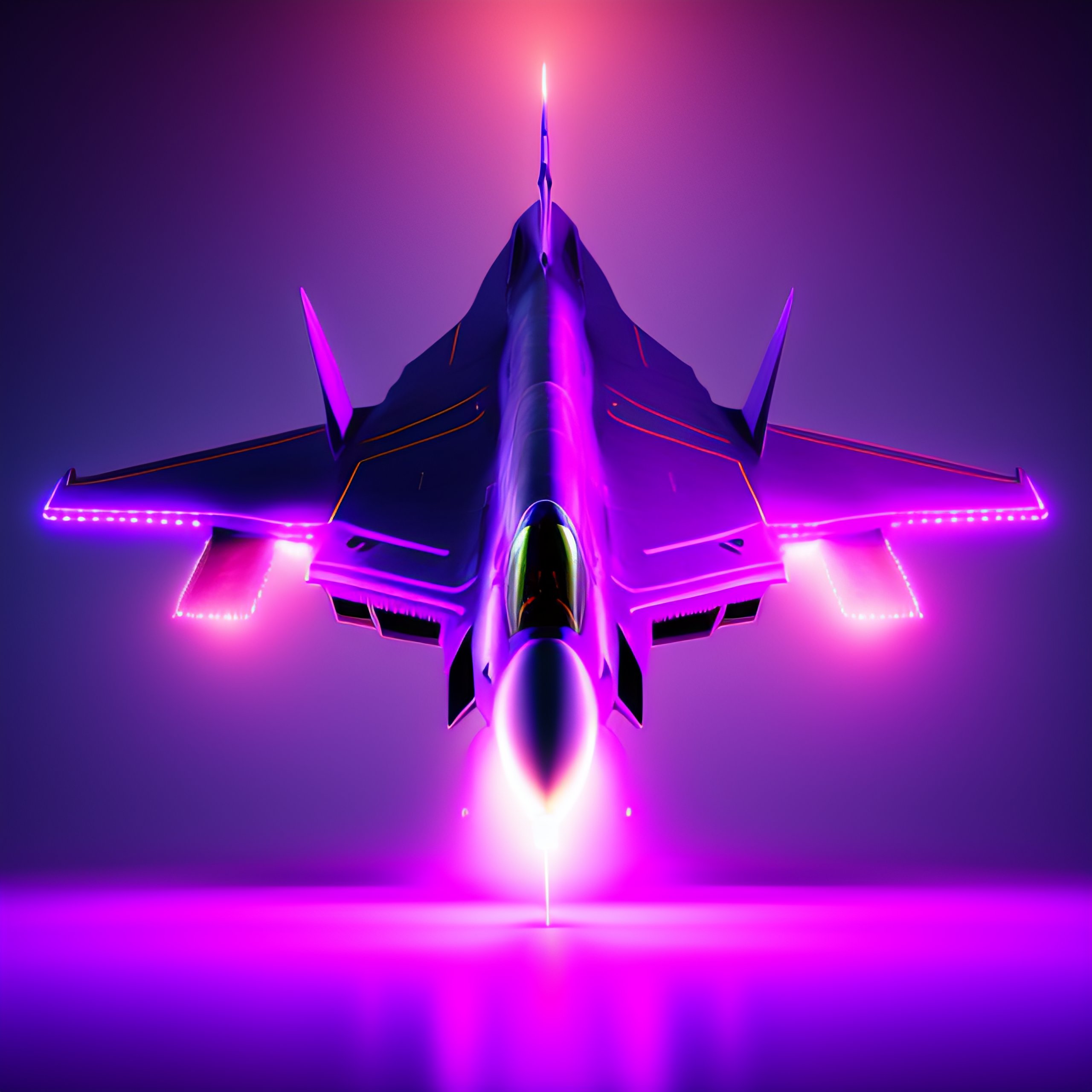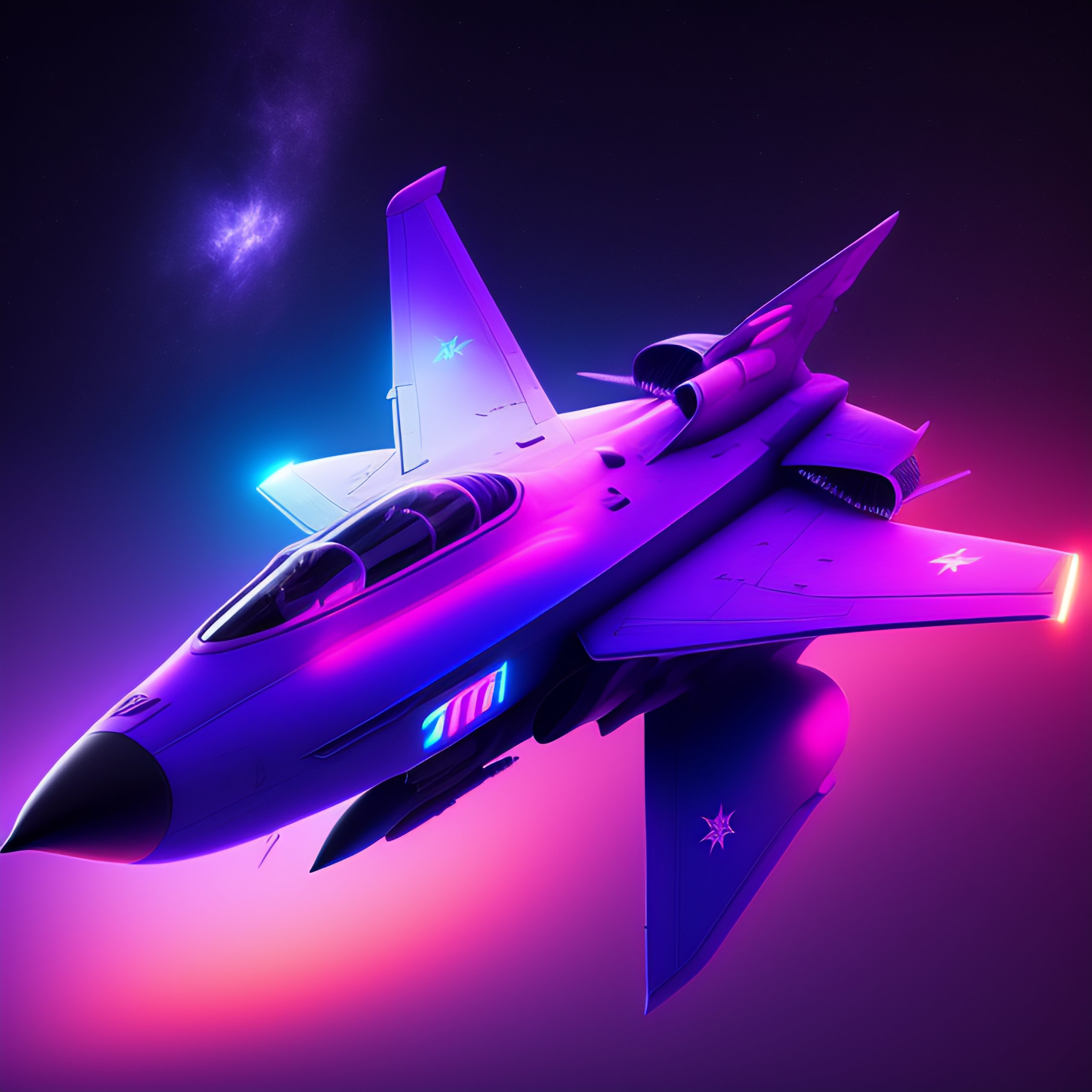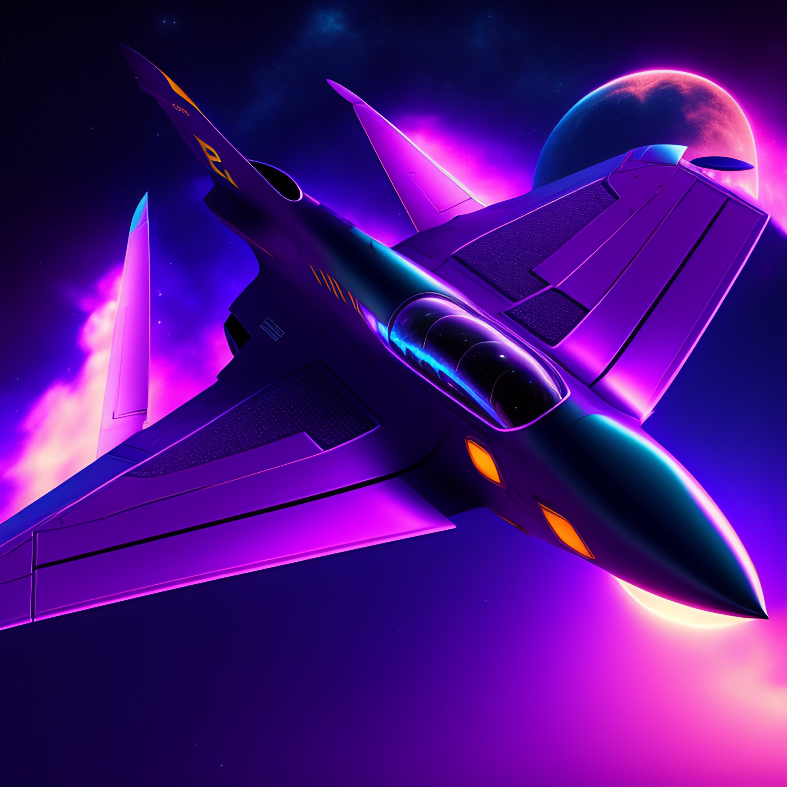 3d render fighter jet in purple light close up 8k dark neon lights moon stars