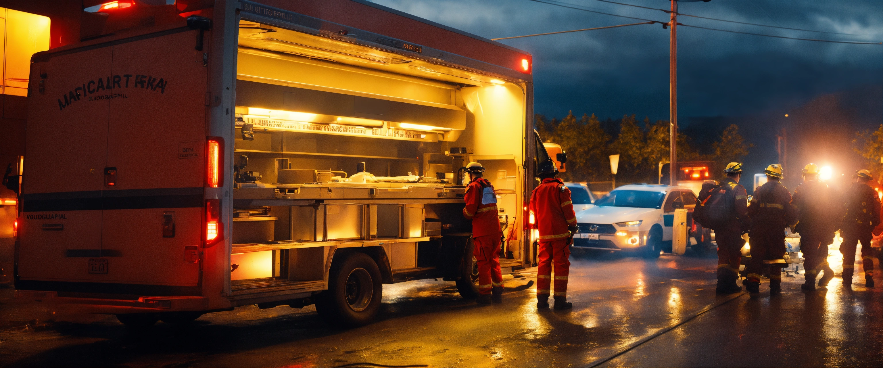 Medical emergency and evacuation of people, high quality photography of texture, lighting, volumetric, sharp focus photography, exquisite details, ultra photorealism, depth of field, 8k.