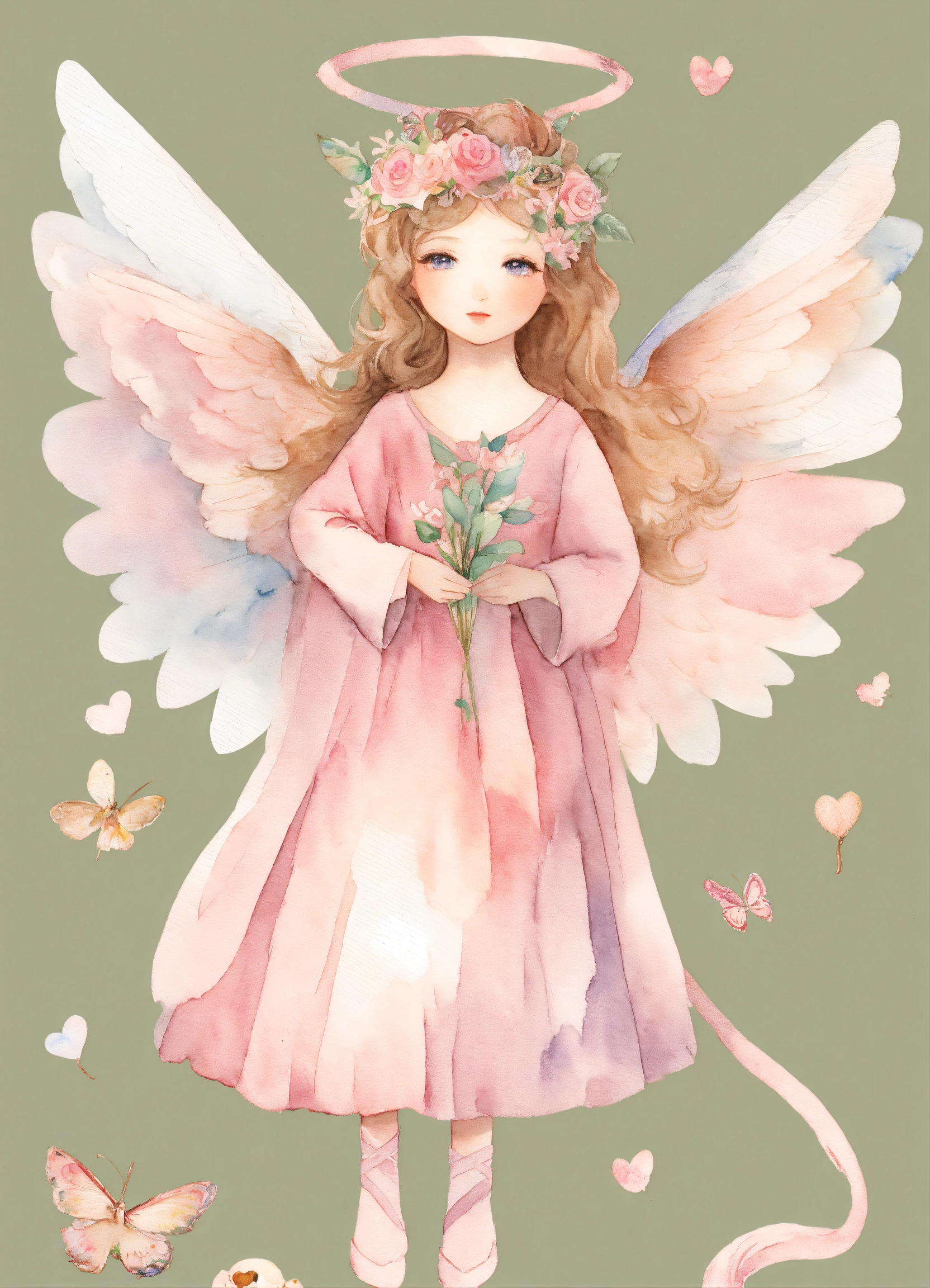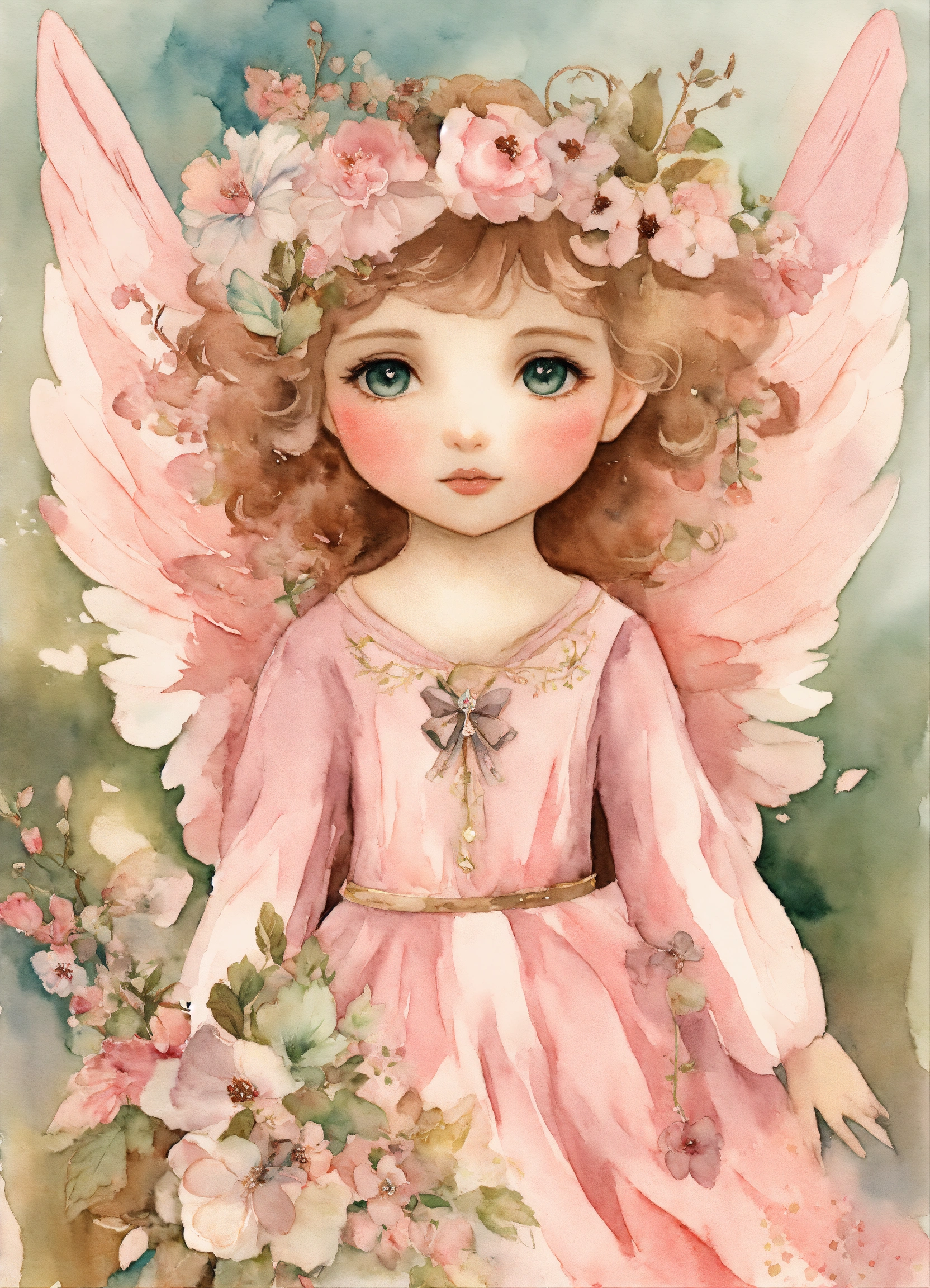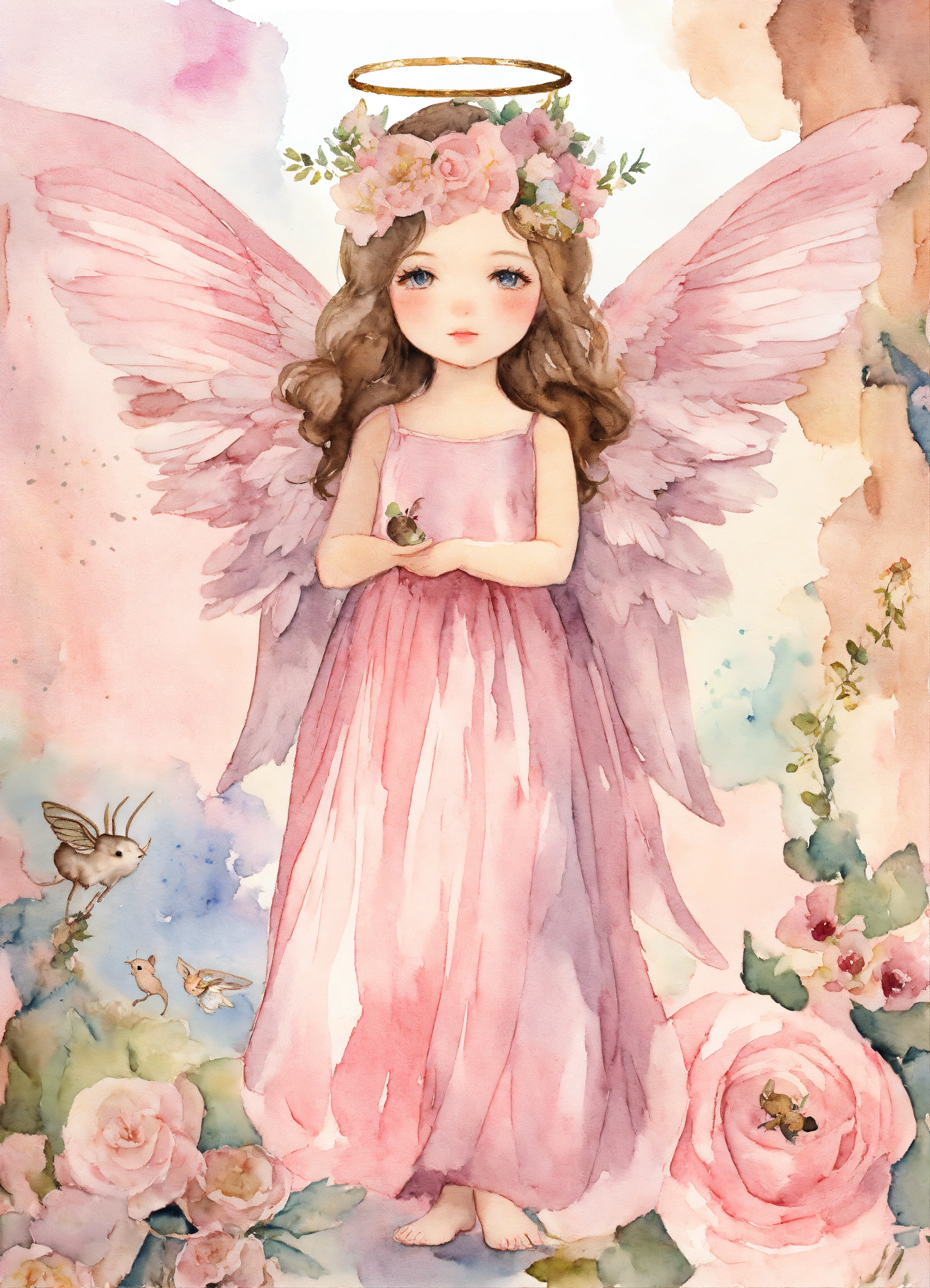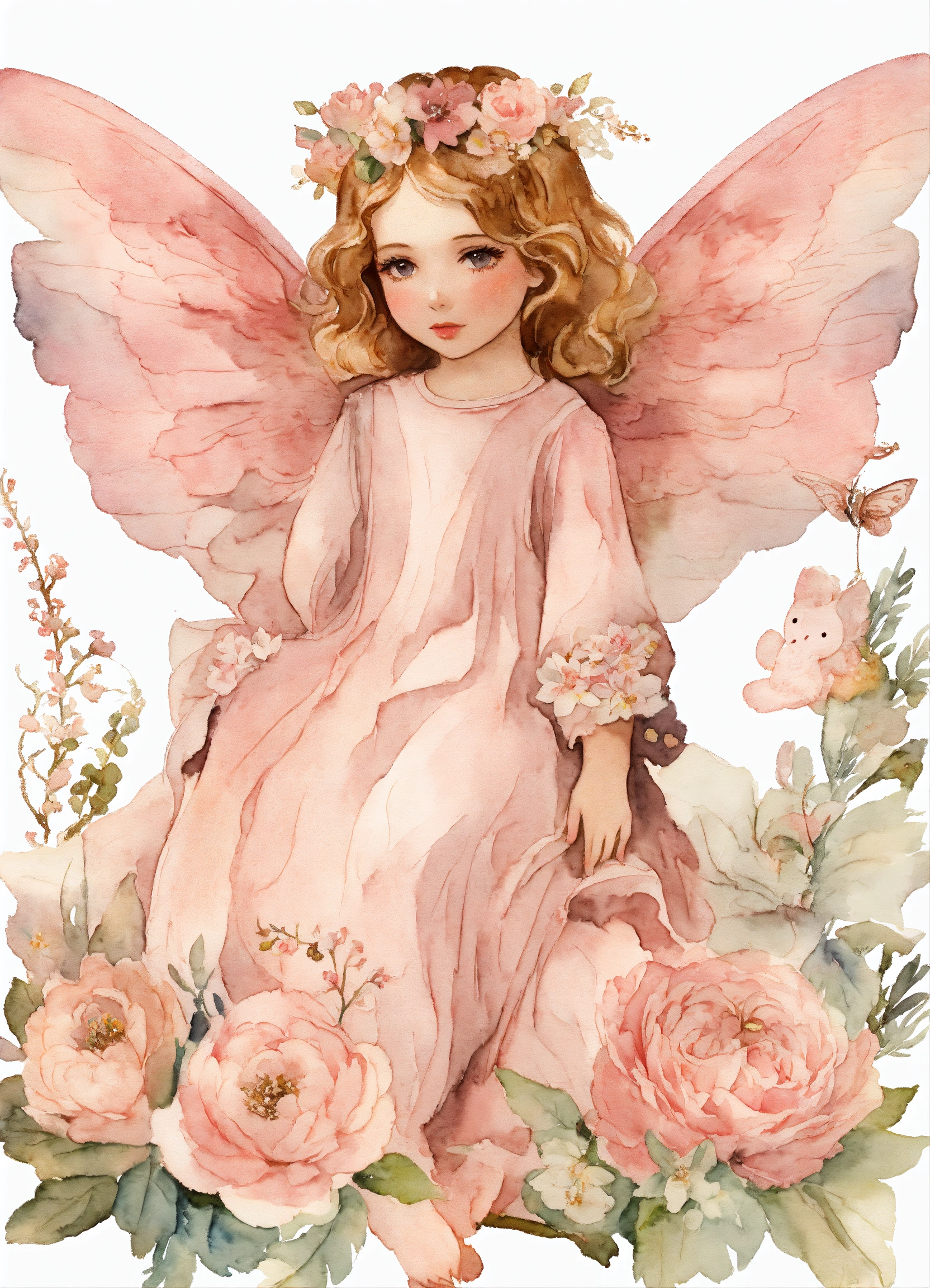 Whimsical pale pink angel girl, watercolor clipart, collage angel ephemera, fairytale clipart png, fantasy mice, fantasy art clipart, paper craft, tags, junk journal, scrapbooking, mixed media