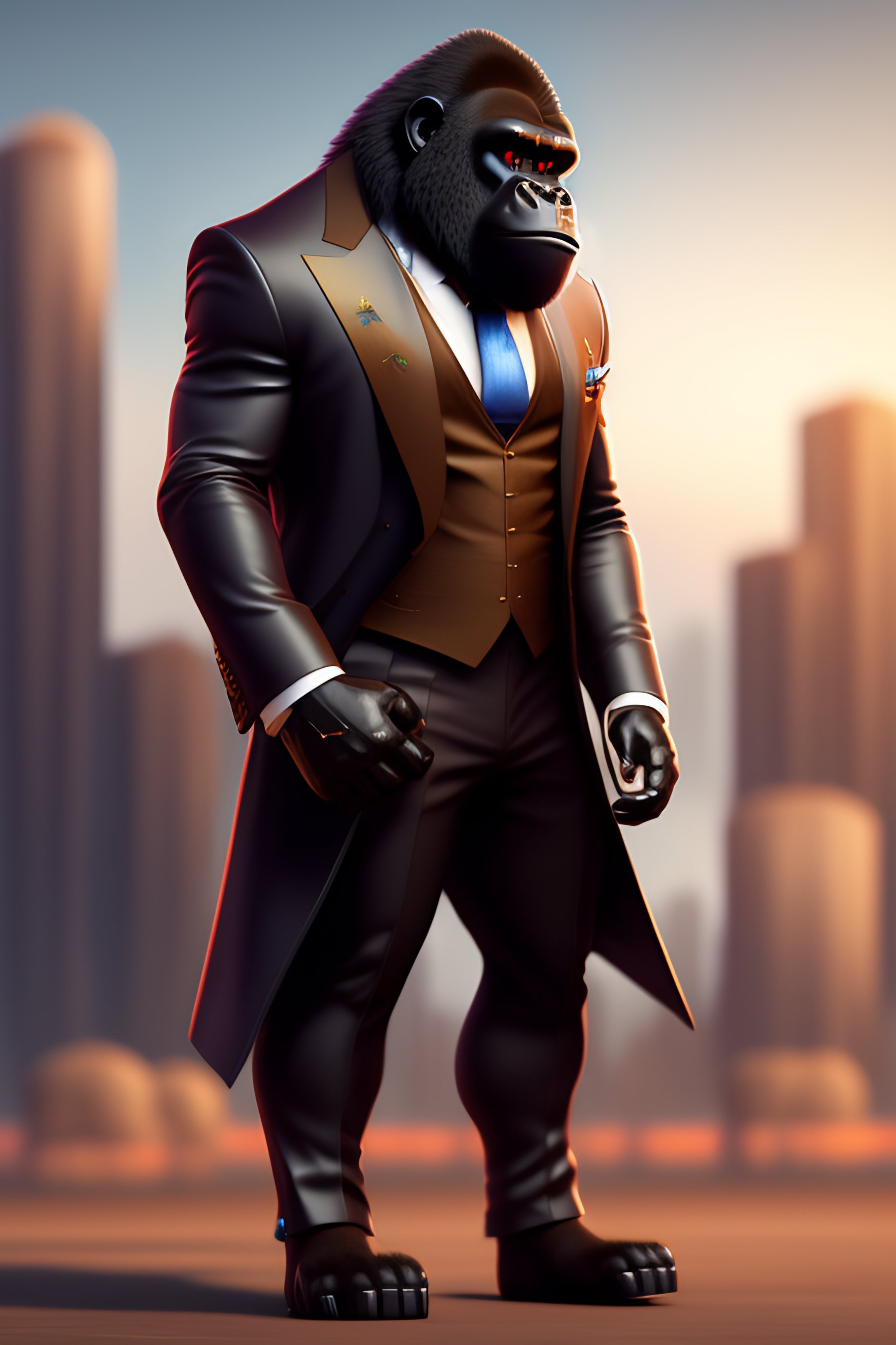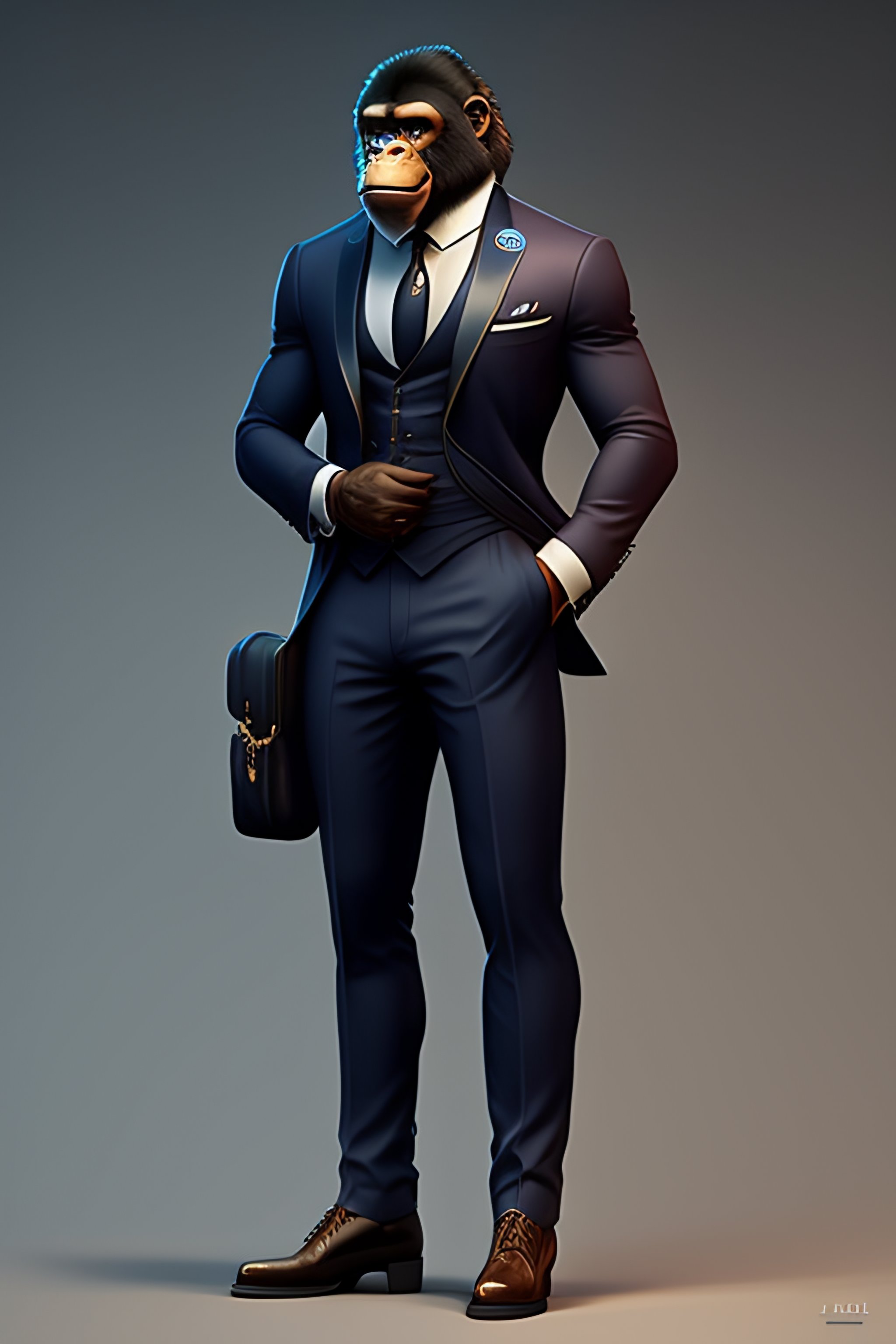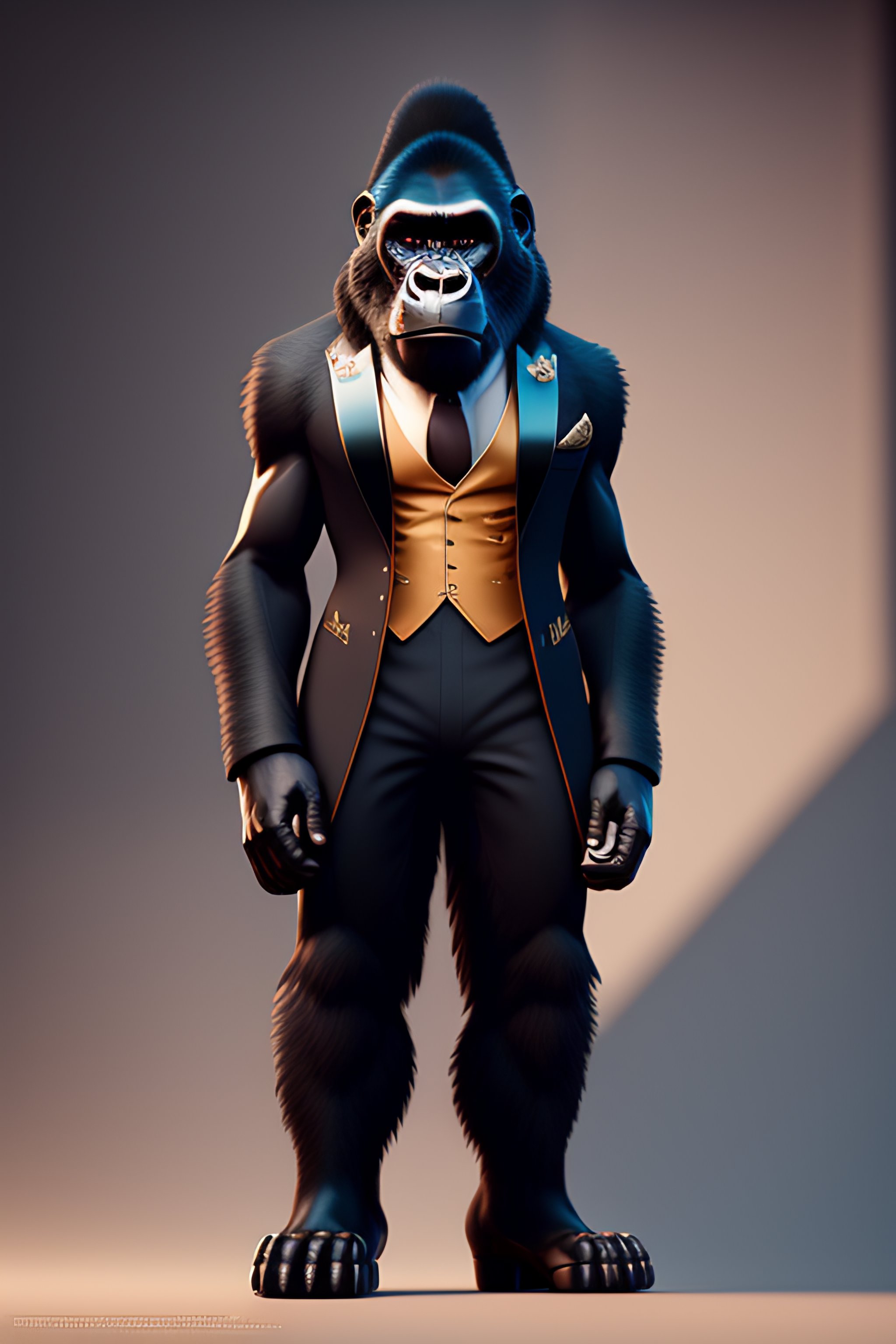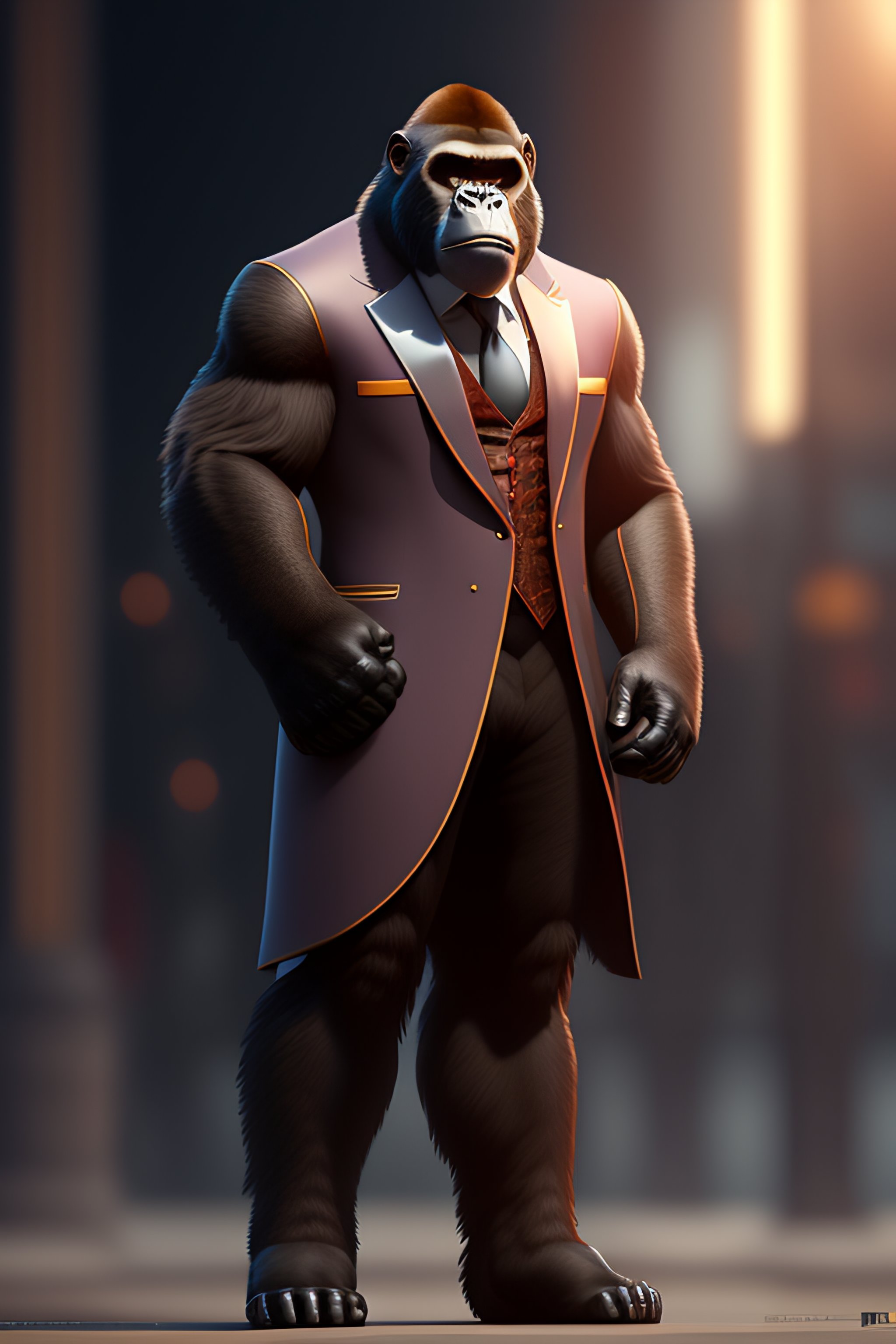 Anthro furry humanoid gorilla, three piece suit, checking watch, character concept design, painting, detailed, vivid, trending on artstation, 8k, detailed lighting