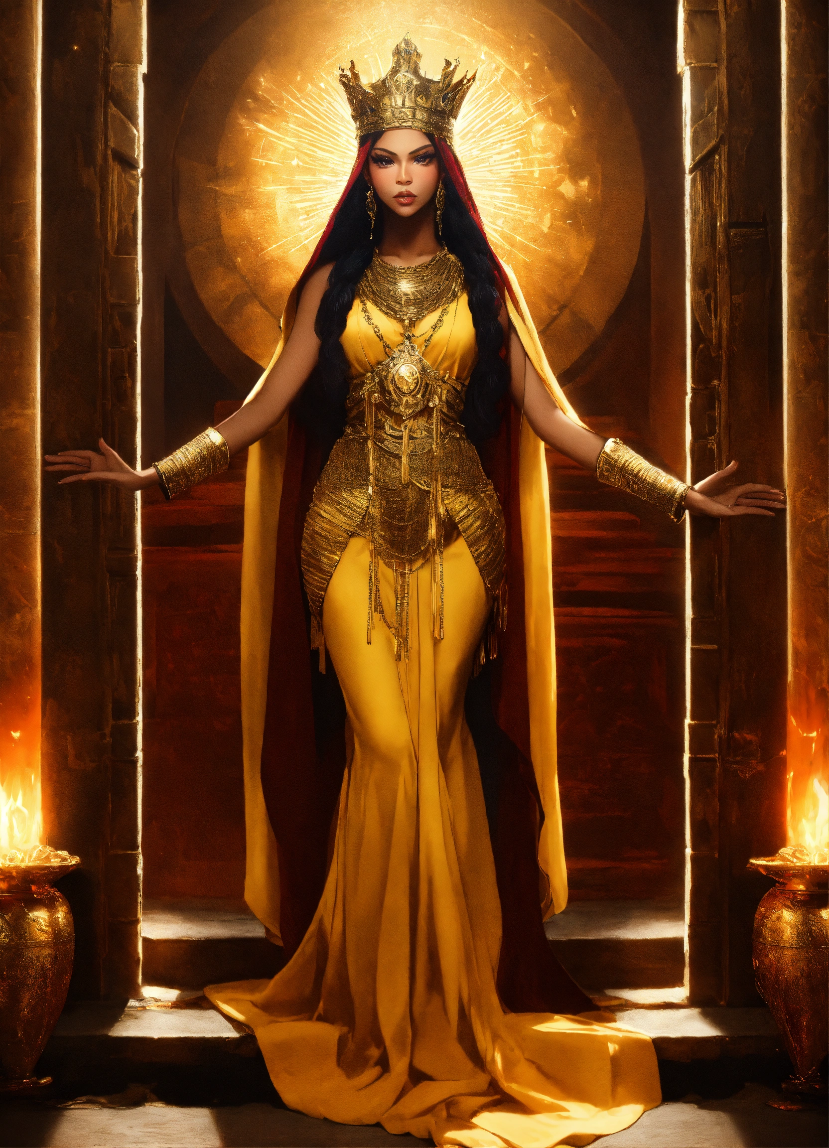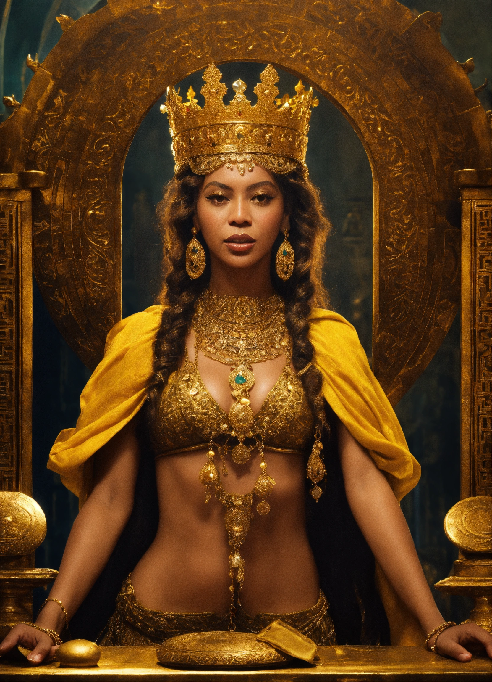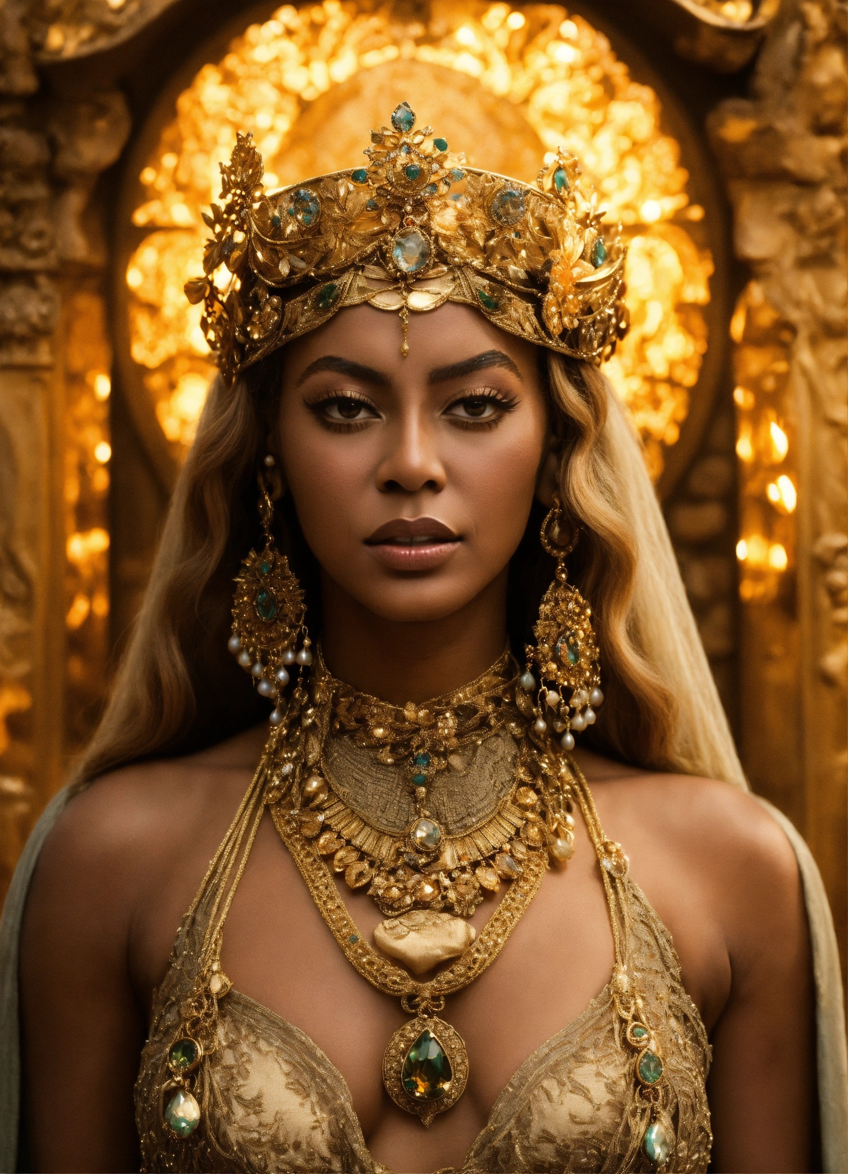 Beyoncé as ishtar he bade her enter the first gate, which he opened wide, and took the large crown off her head "why, o gatekeeper, dost thou remove the large crown off my head?" "enter, o lady, such are the decrees of ereshkigal." the second gate he bade her enter, opening it wide, and removed her earrings "why, o gatekeeper, dost thou remove my earrings?" "enter, o lady, for such are the decrees of ereshkigal." the third gate he bade her enter, opened it wide, and removed her necklace "why, o gatekeeper, dost thou remove my