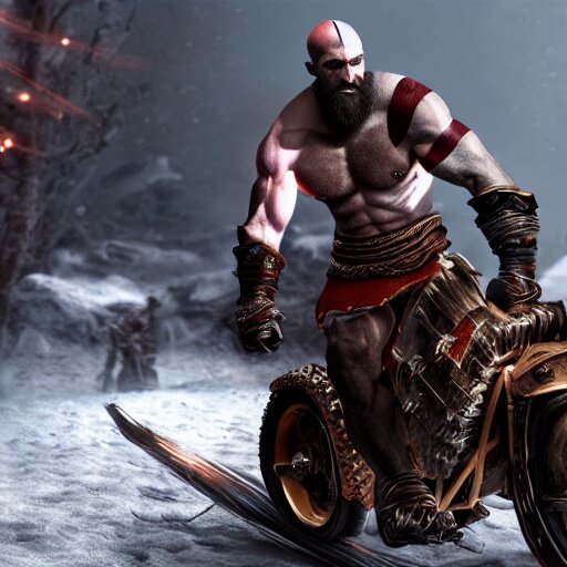Kratos - motercycle centaur, cinematic render, god of war 2 0 1 8, playstation studios official media