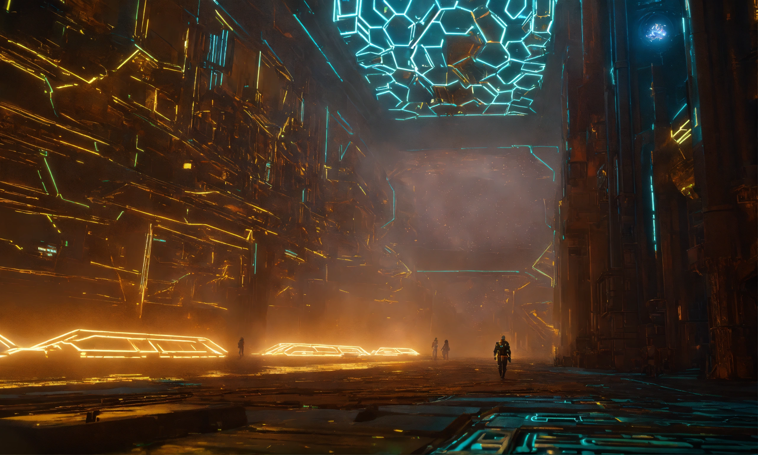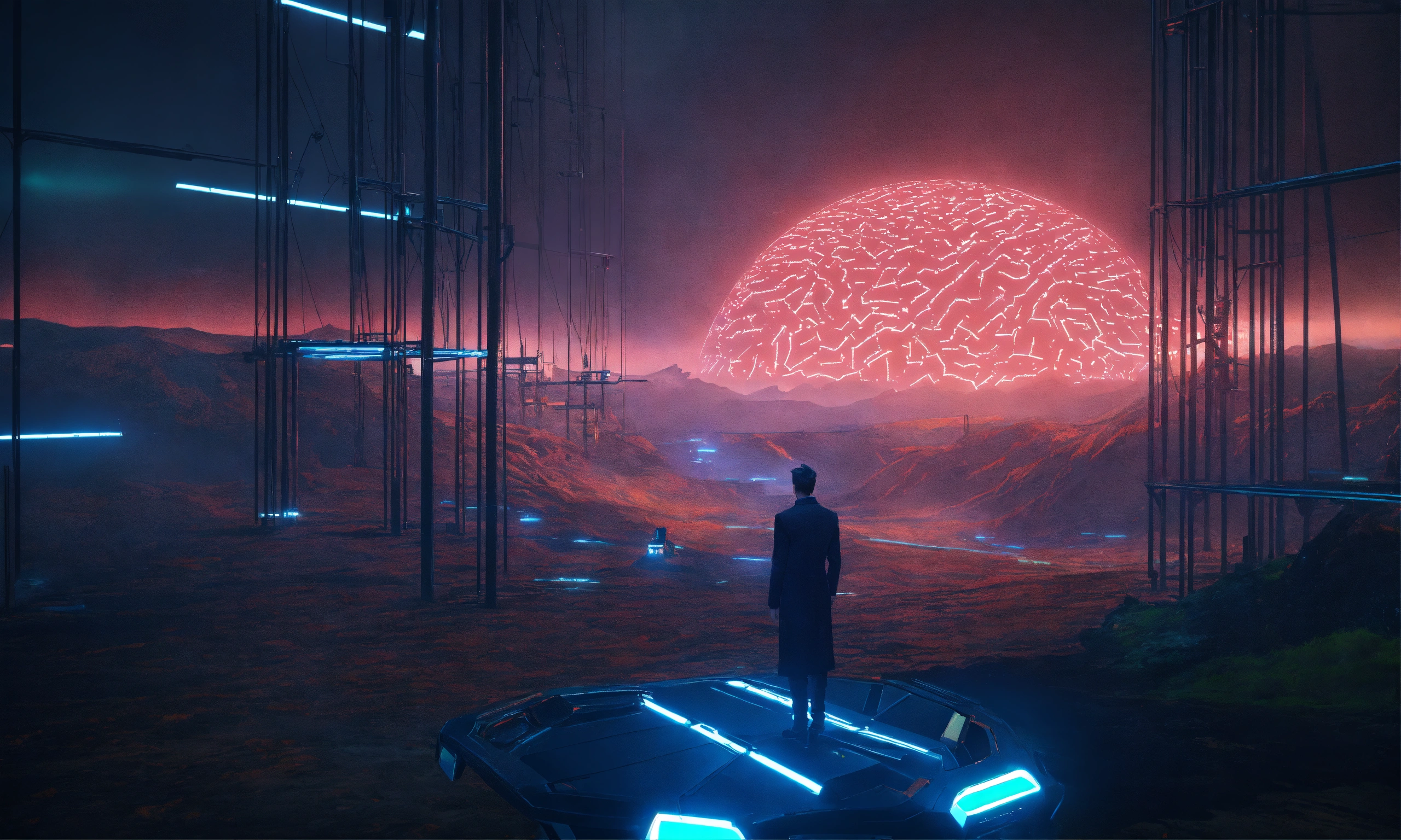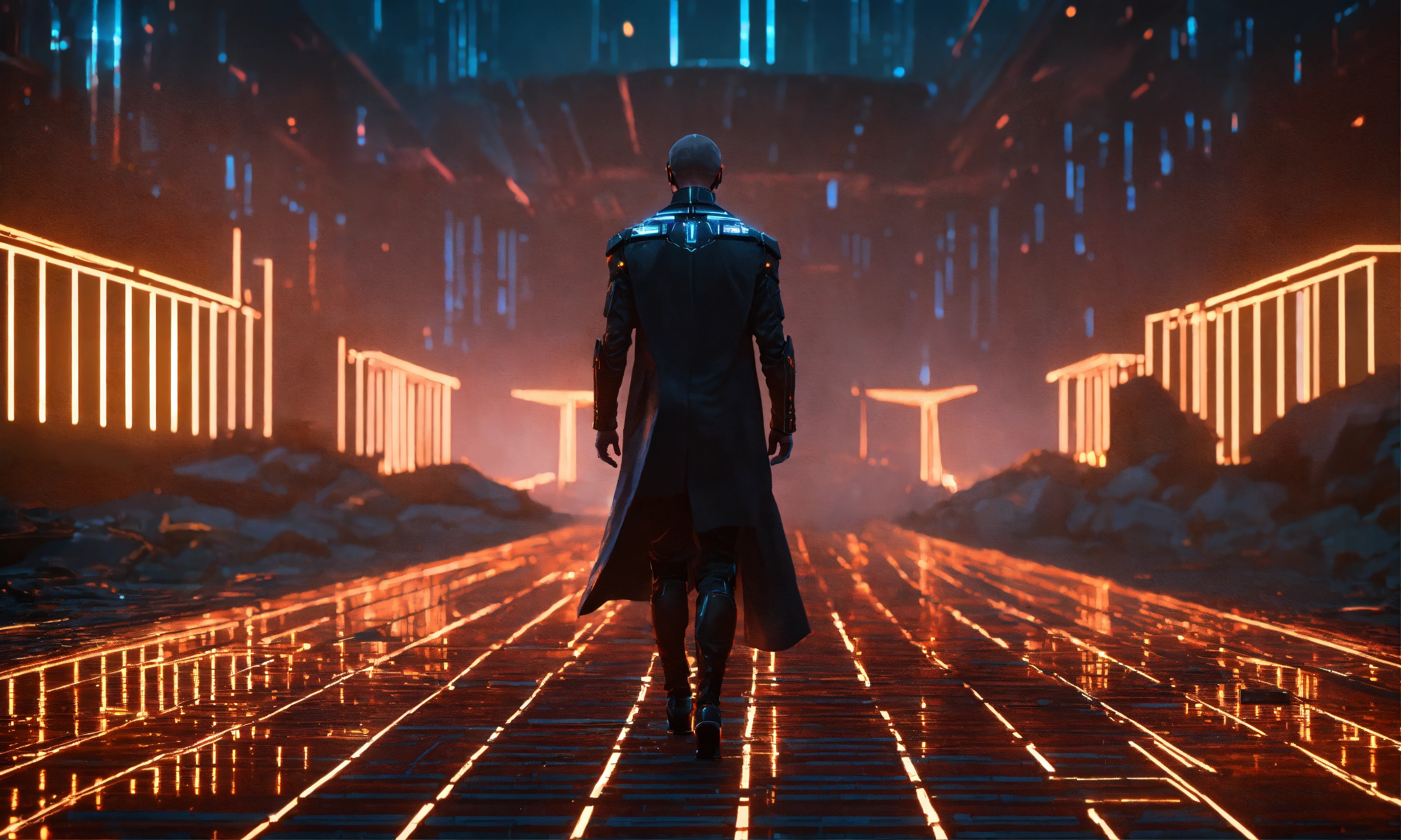 5 sentient artificial intelligence and major antagonists in the matrix series, barren landscape, unreal engine, tron, 8k, vibrant neon illumination in brain an eyes