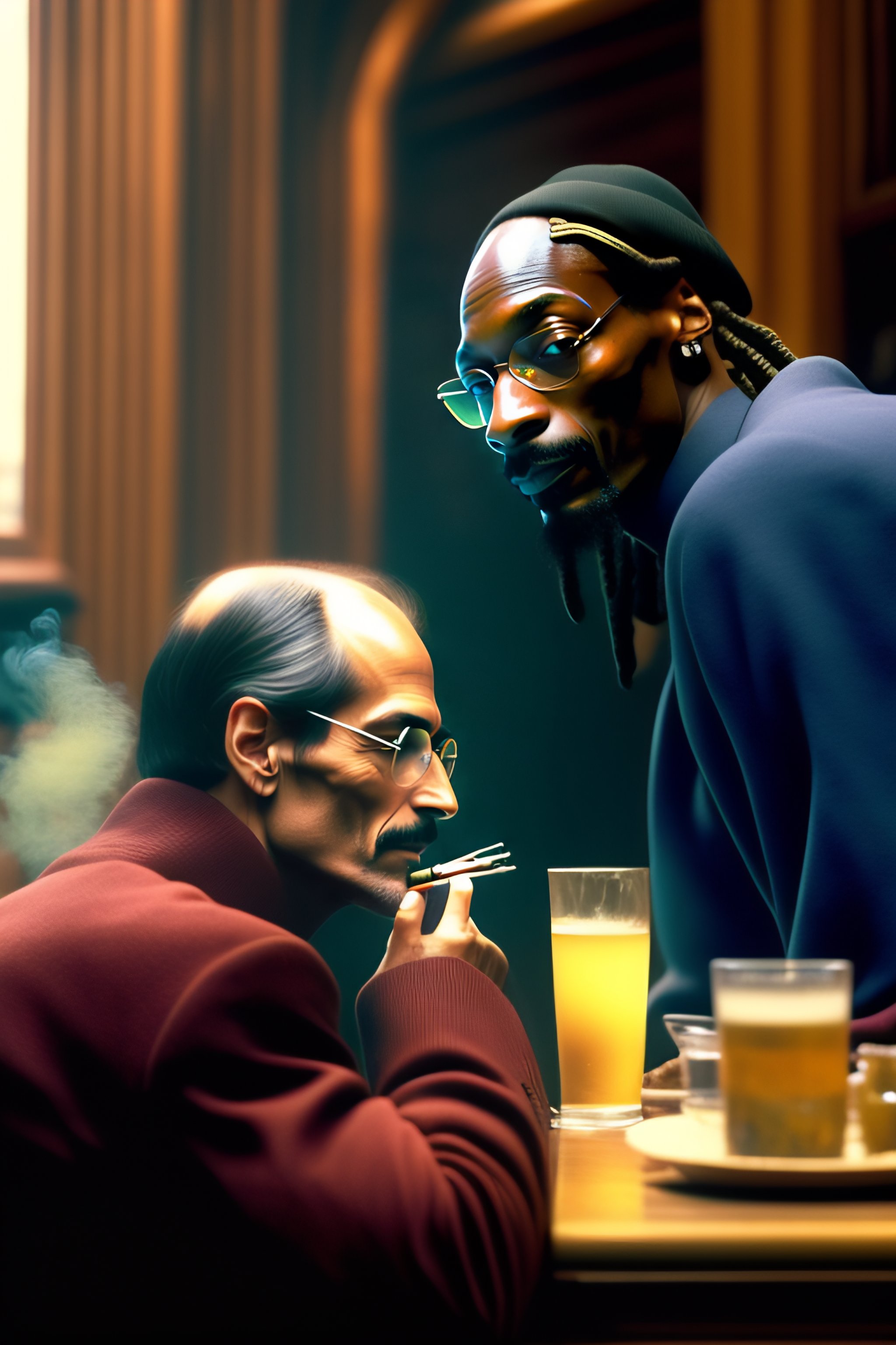 Old steve jobs smoking a joint with snoop dogg in amsterdam
