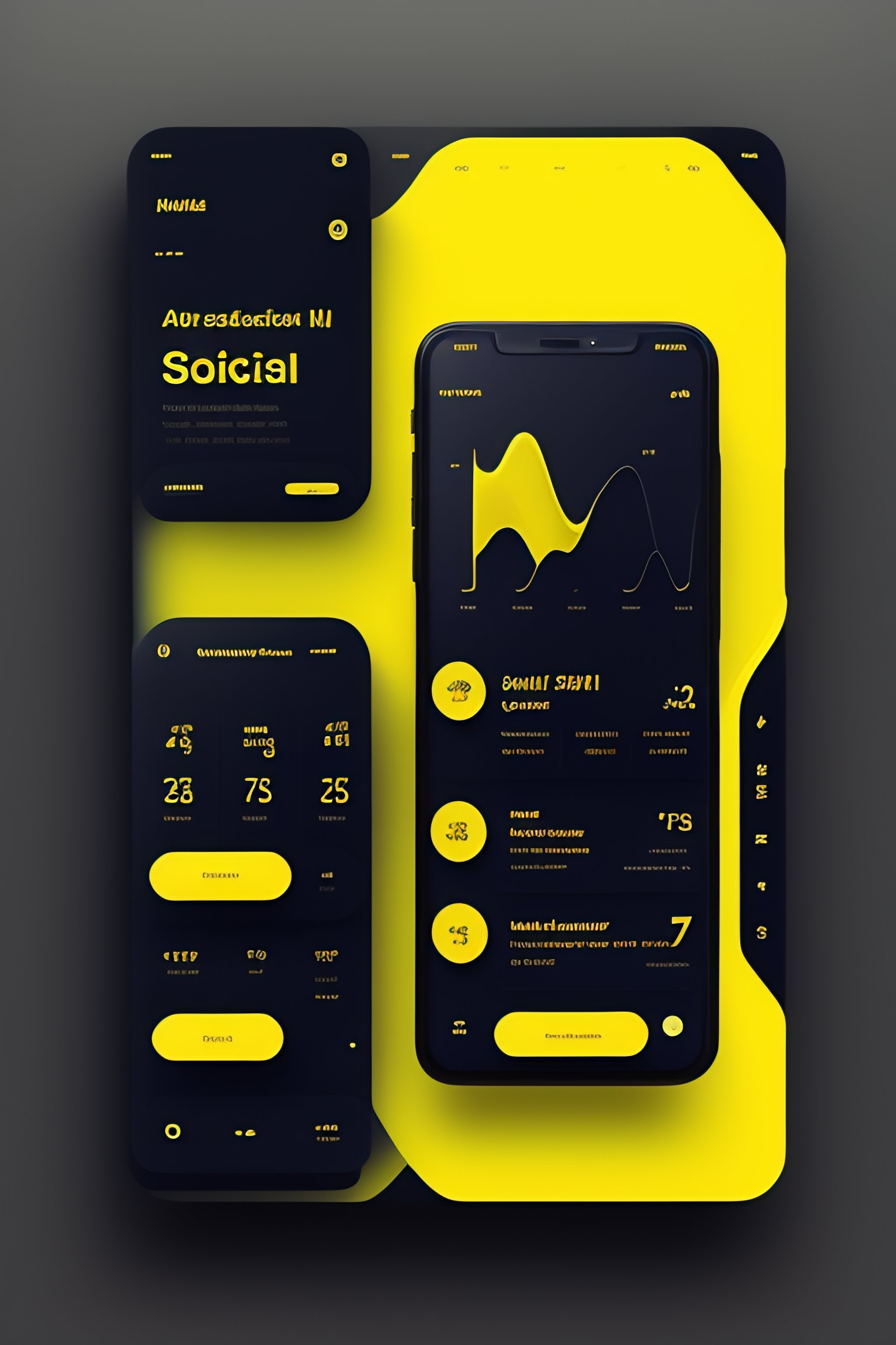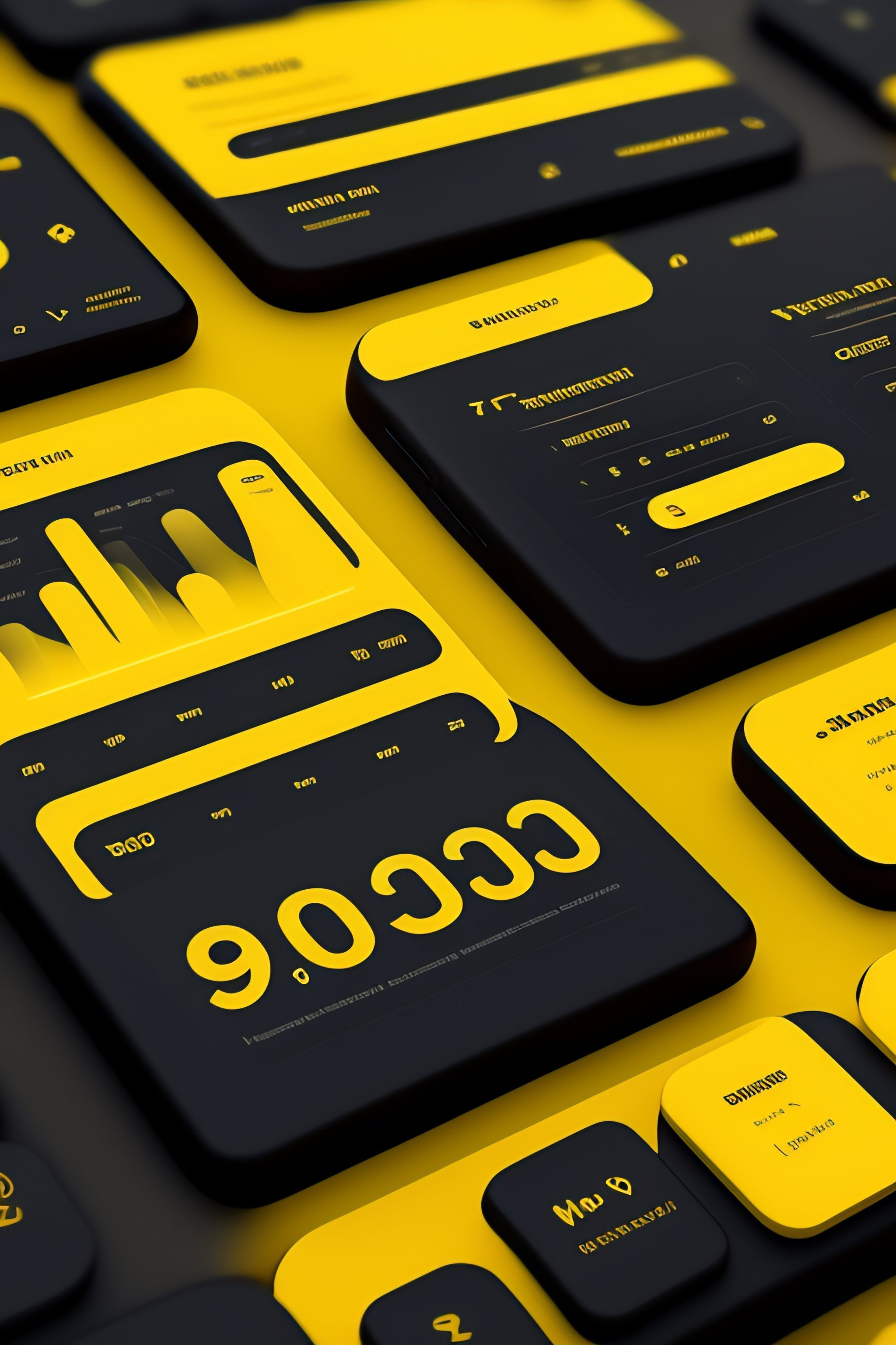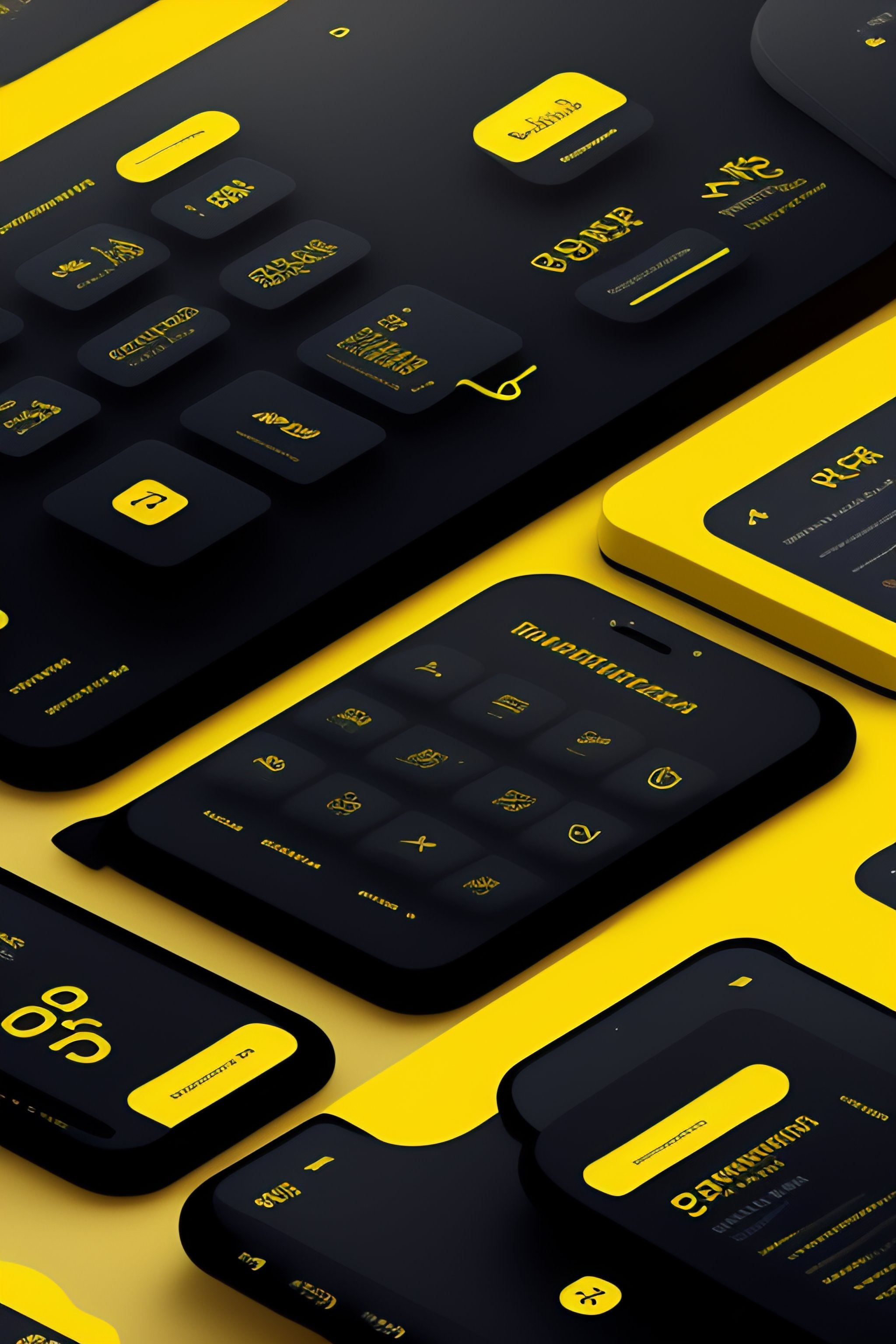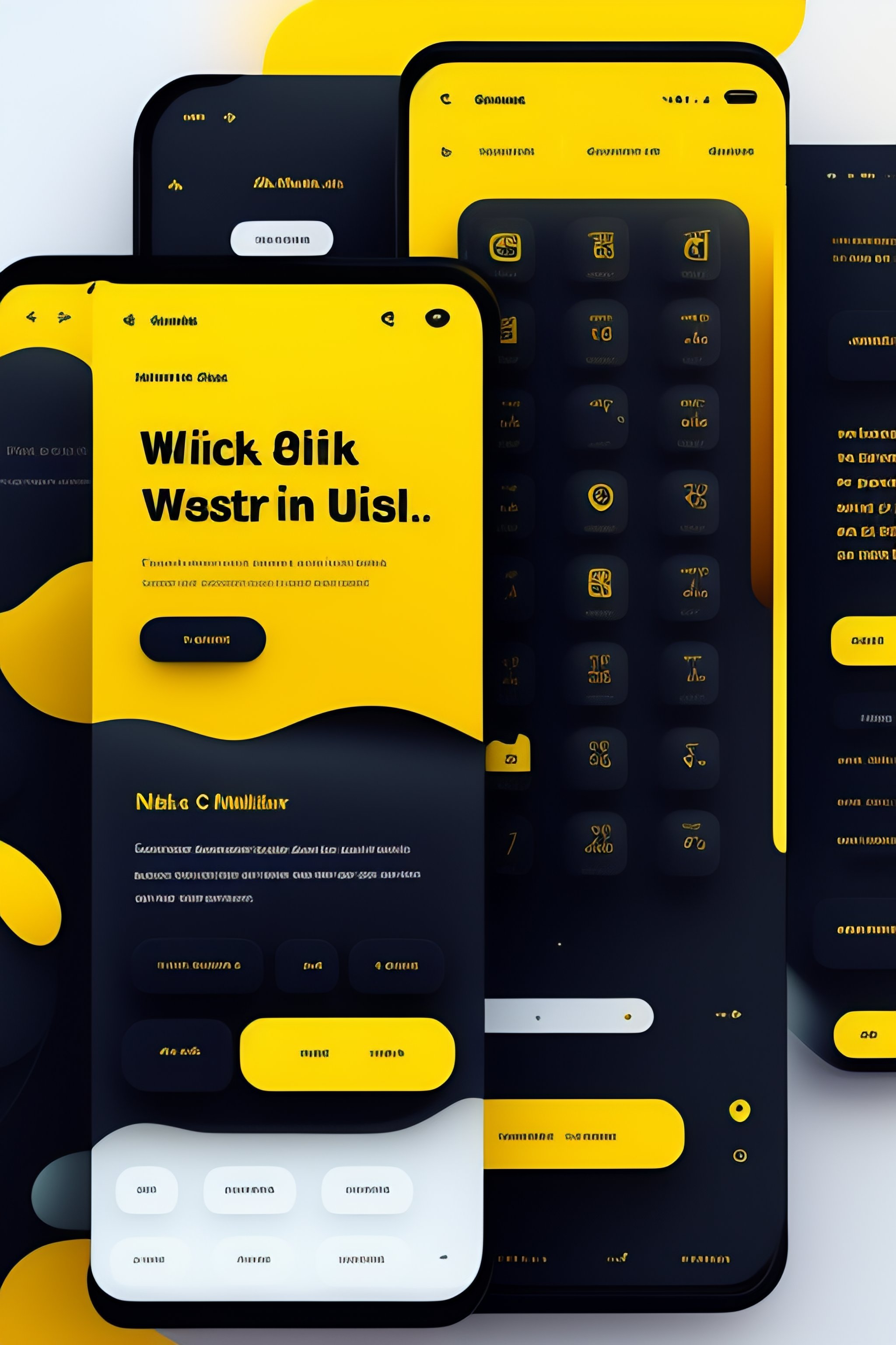 Slick, mordern, ui design, ux research, mobile ui ux, wireframe background black, yellow accent, dashboard bold --stylish 700