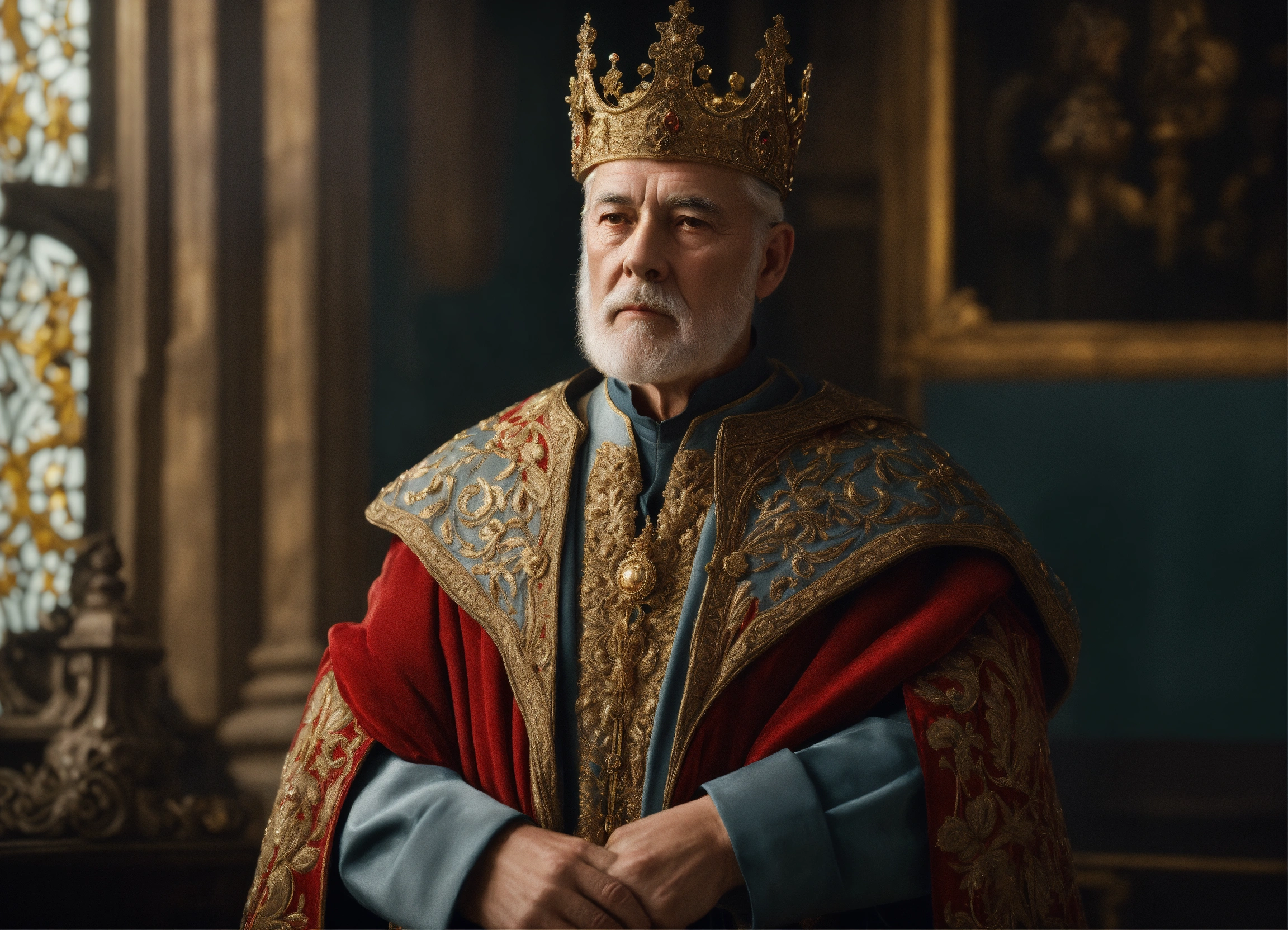Kodak portra 400, 8k, soft light, volumetric lighting, highly detailed, fine art portrait photography, medieval setting, 68 years old male baron, slim build, narrow face, pale, complex 3d render, 150 mm lens, elegant noble medieval clothing, crown of a baron, kind appereance, front view, full body portrait, intricate details, elegant, hyper realistic, ultra detailed, octane render, etheric, outworldly colours, emotionally evoking, fantasy, ornamental, intricate, elegant, 8k, soft light, volumetric lighting, highly detailed, refined, highly detailed, soft lighting colors scheme, fine art photography, hyper realistic, photo realistic