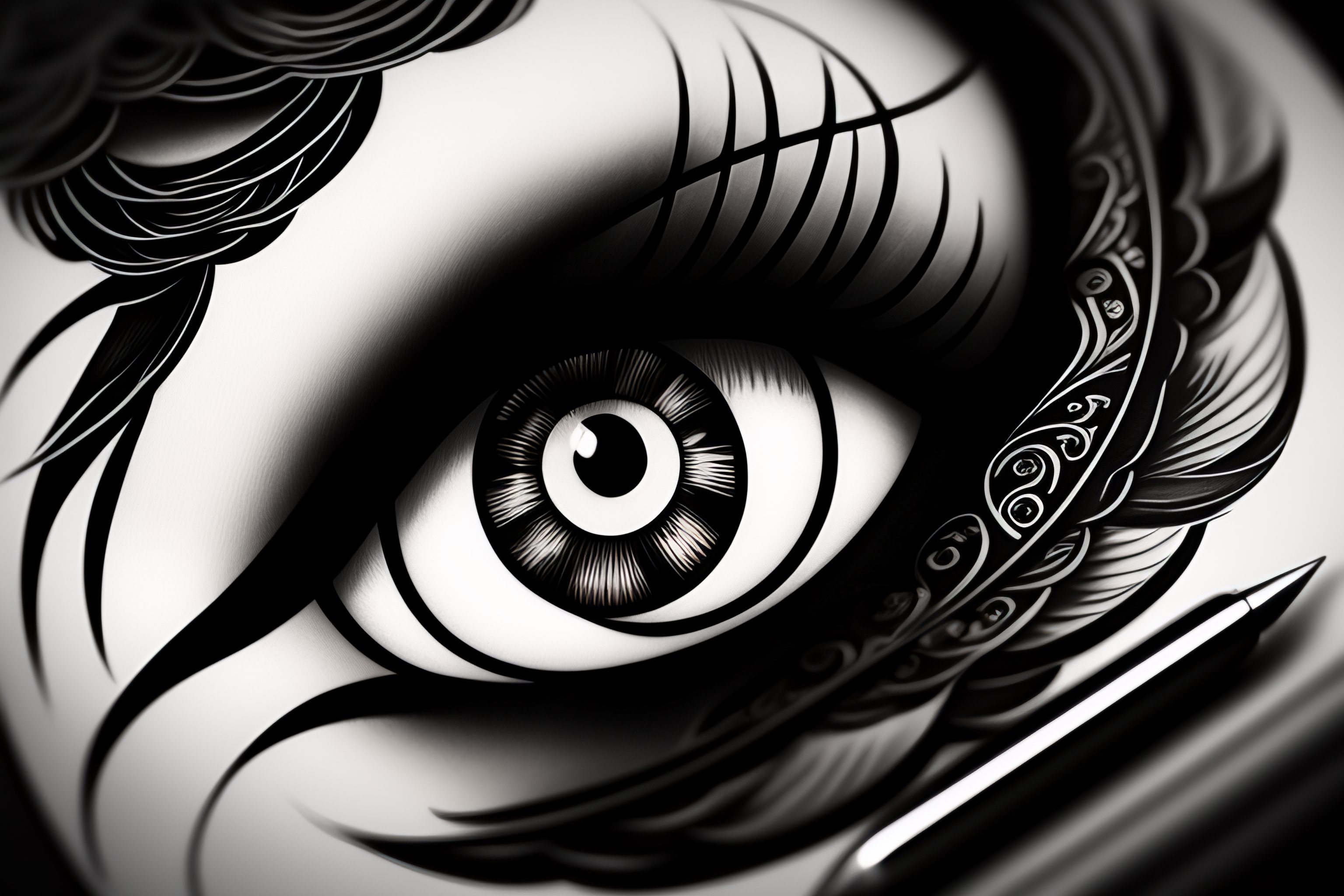 A tattoo stencil of anime eyes in blackwork style!, crying, in high definition, art station, very very detailed, many sharp edges
