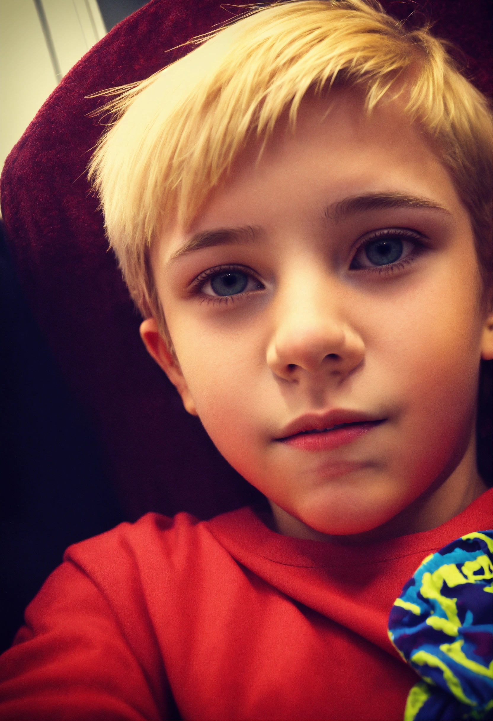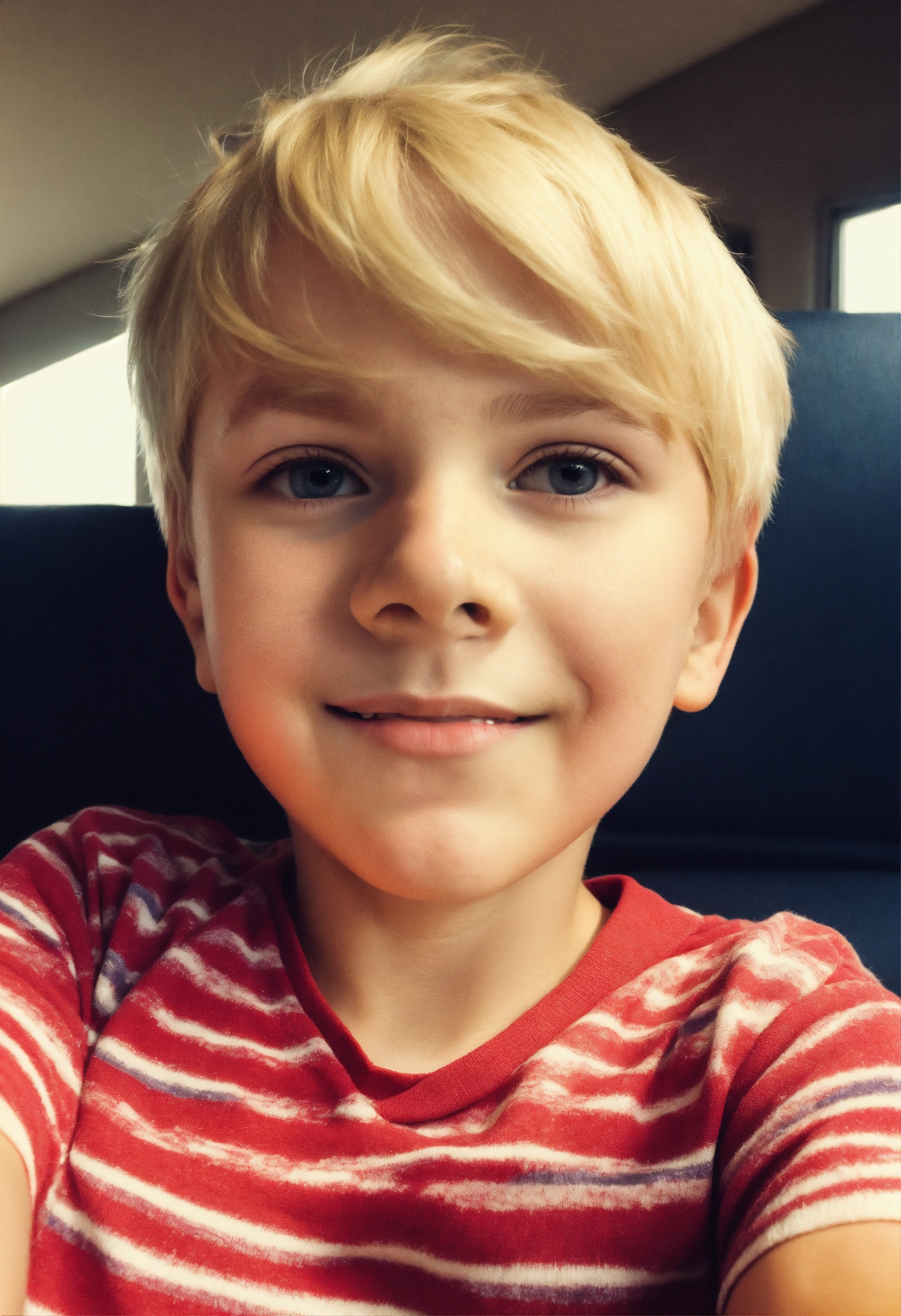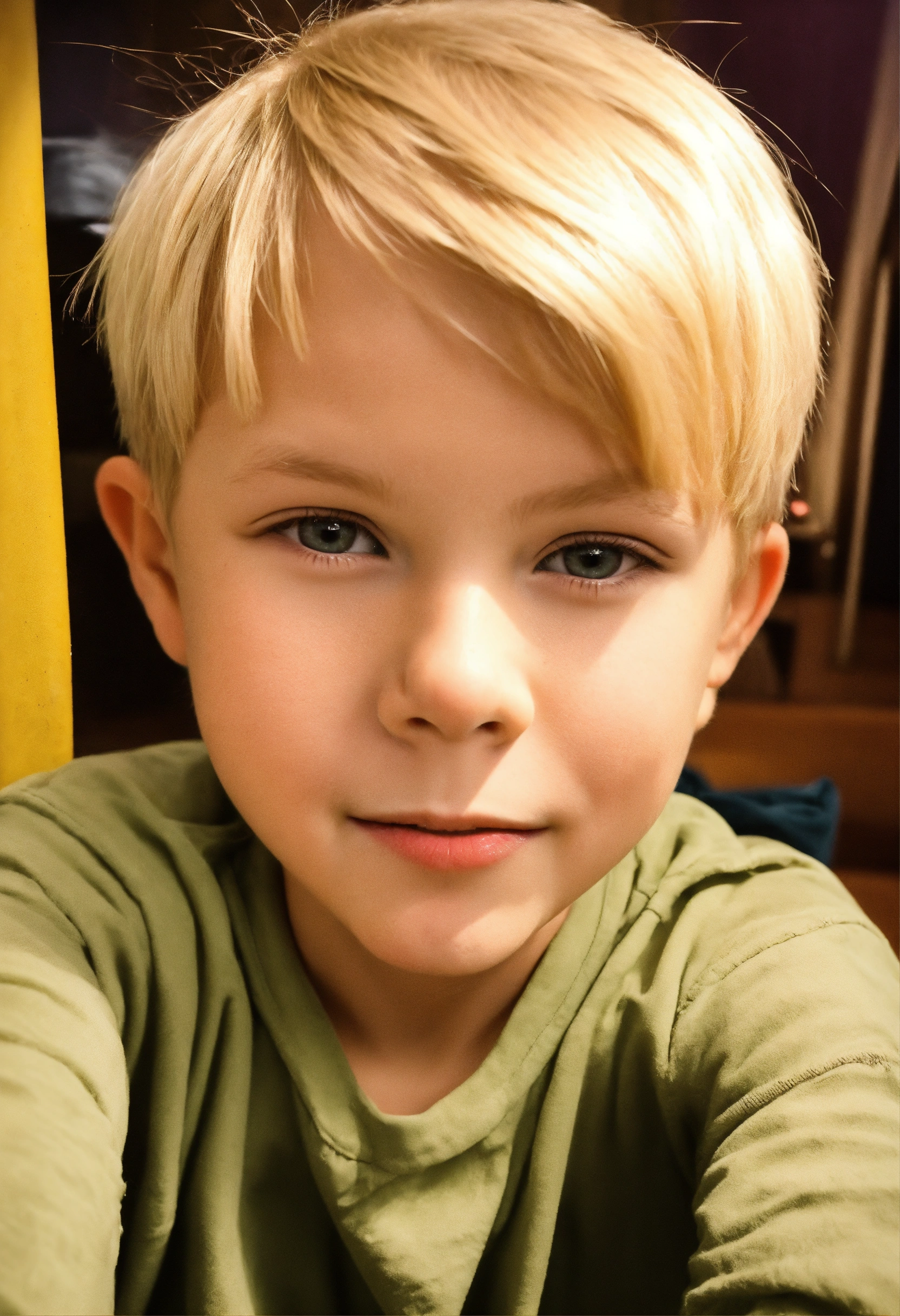 Selfie, photo, 8-year-old blonde boy, brat, spoiled brat, wicked, mischievous, adorable, short hair, obnoxious, cruel, devilish, selfie photo