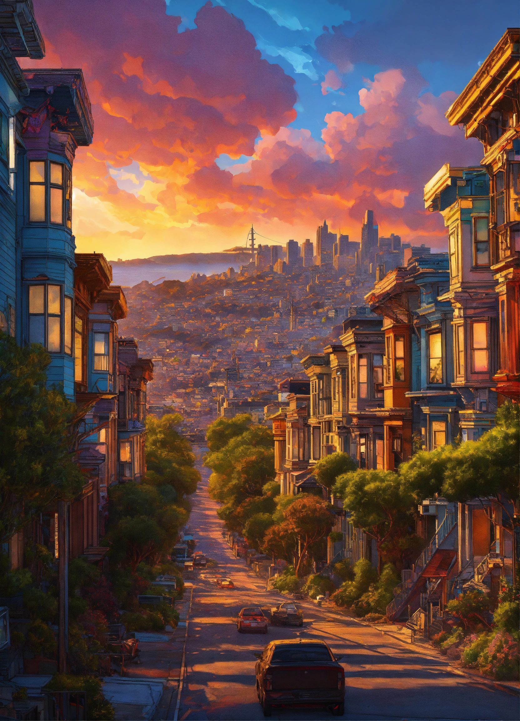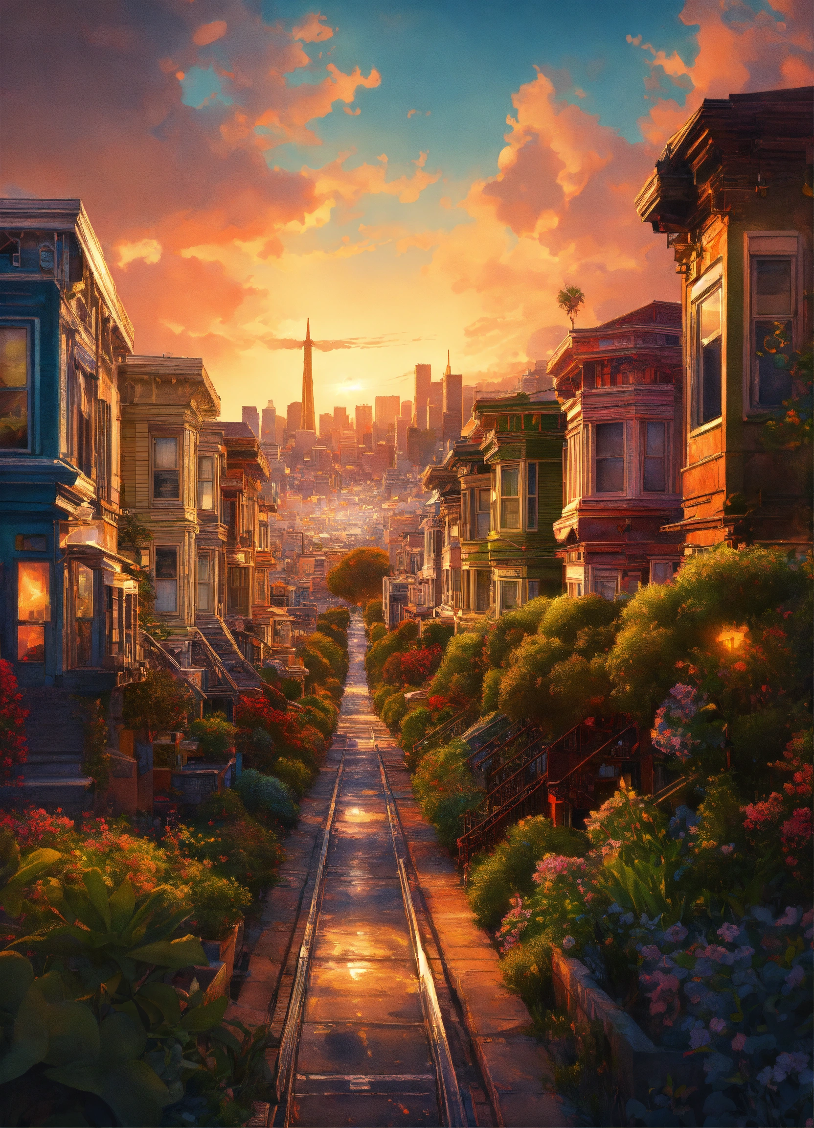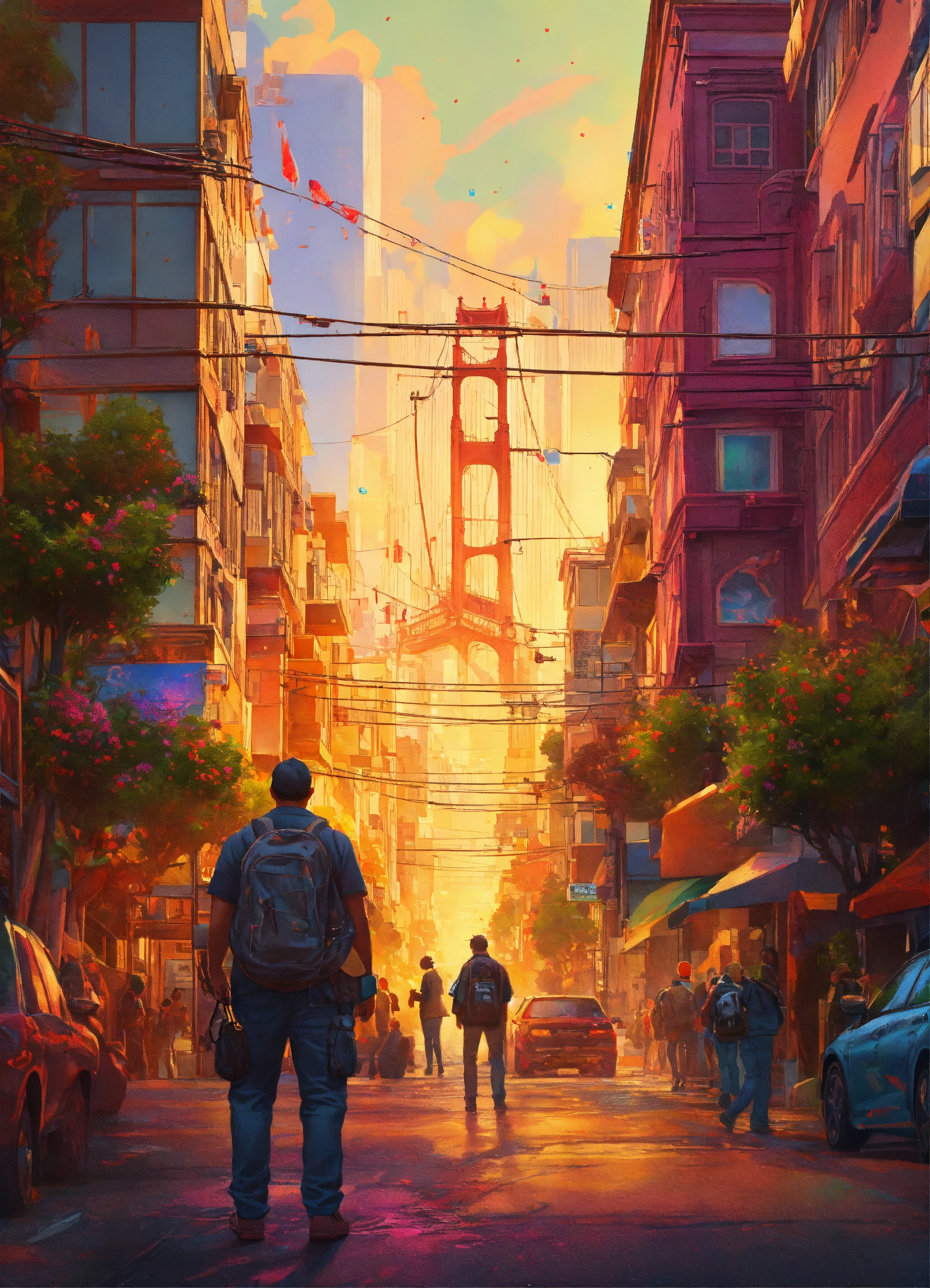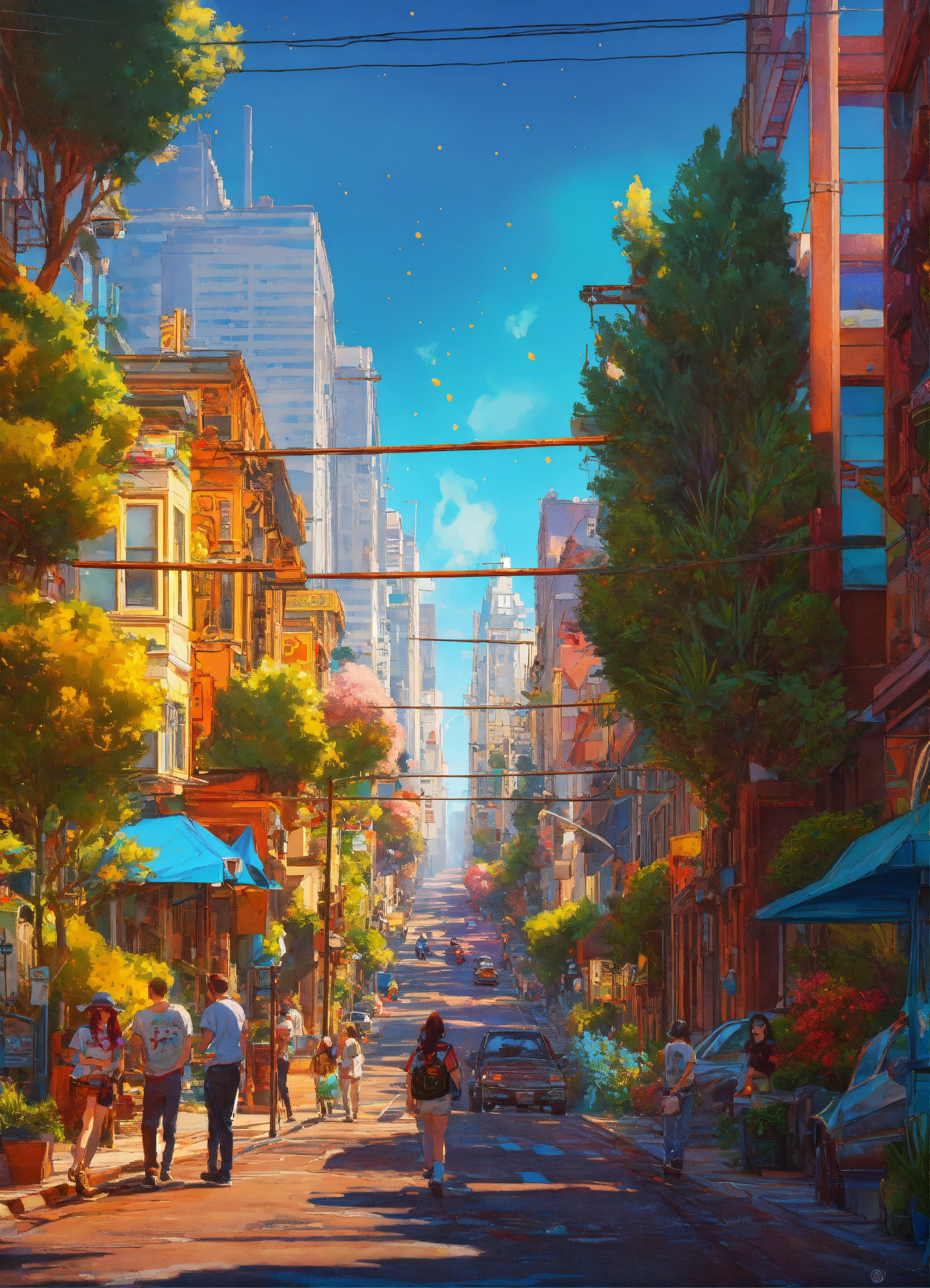 ((san francisco neighborhood full of people playing, lots of plants)), hyperdetailed, tee-shirt design, line art, ultra detailed artistic, colour splash art, fire and ice, splatter, black ink, liquid melting, dreamy, glowing, glimmer, shadows, oil on canvas, brush strokes, smooth, ultra high definition, 8k, unreal engine 5, ultra sharp focus, intricate artwork masterpiece, ominous, golden ratio, highly detailed, vibrant, production cinematic render