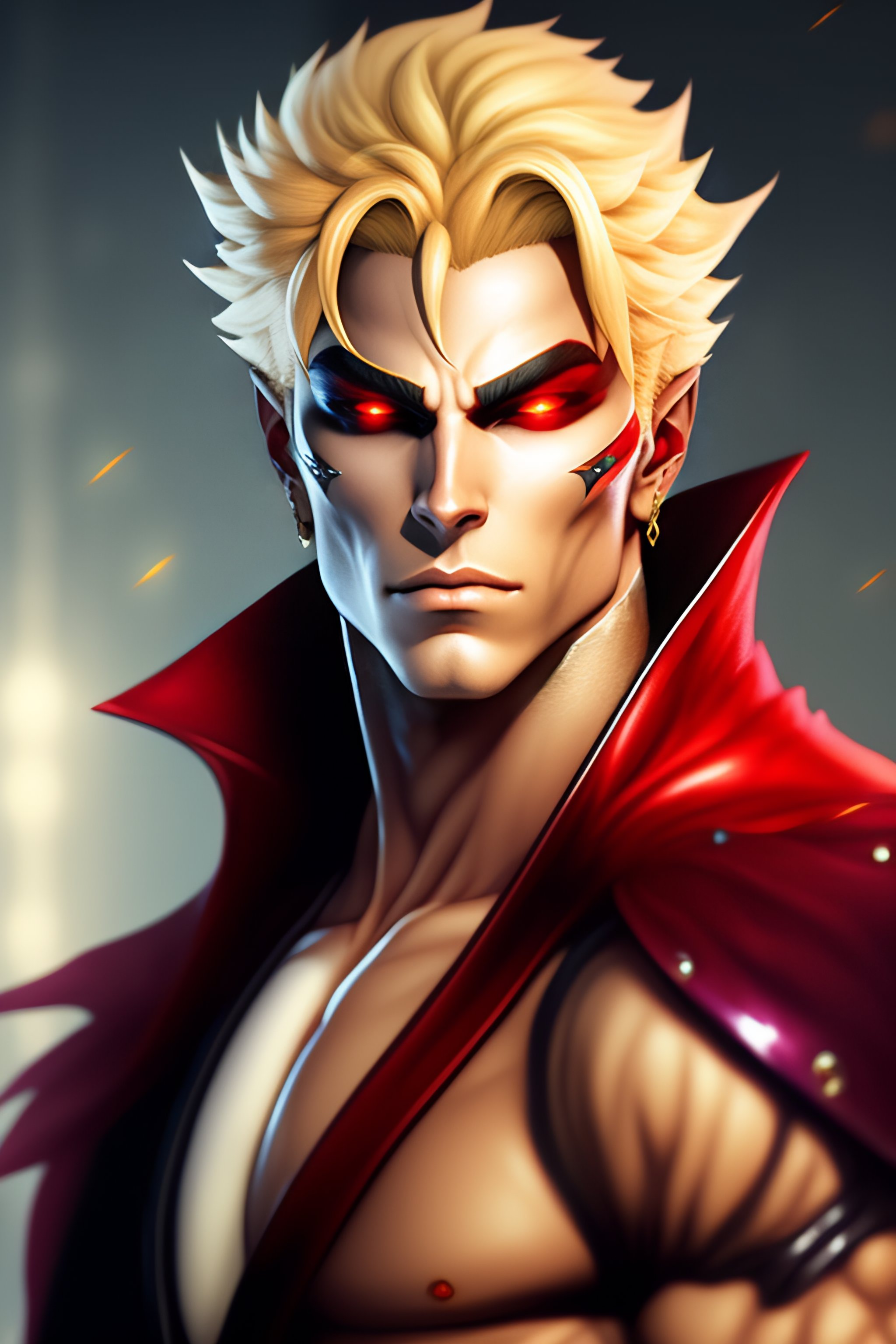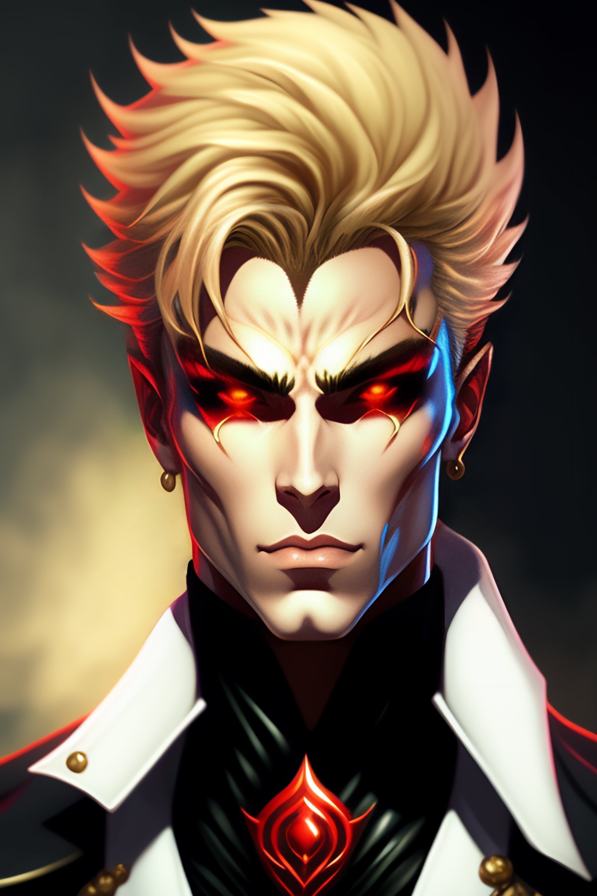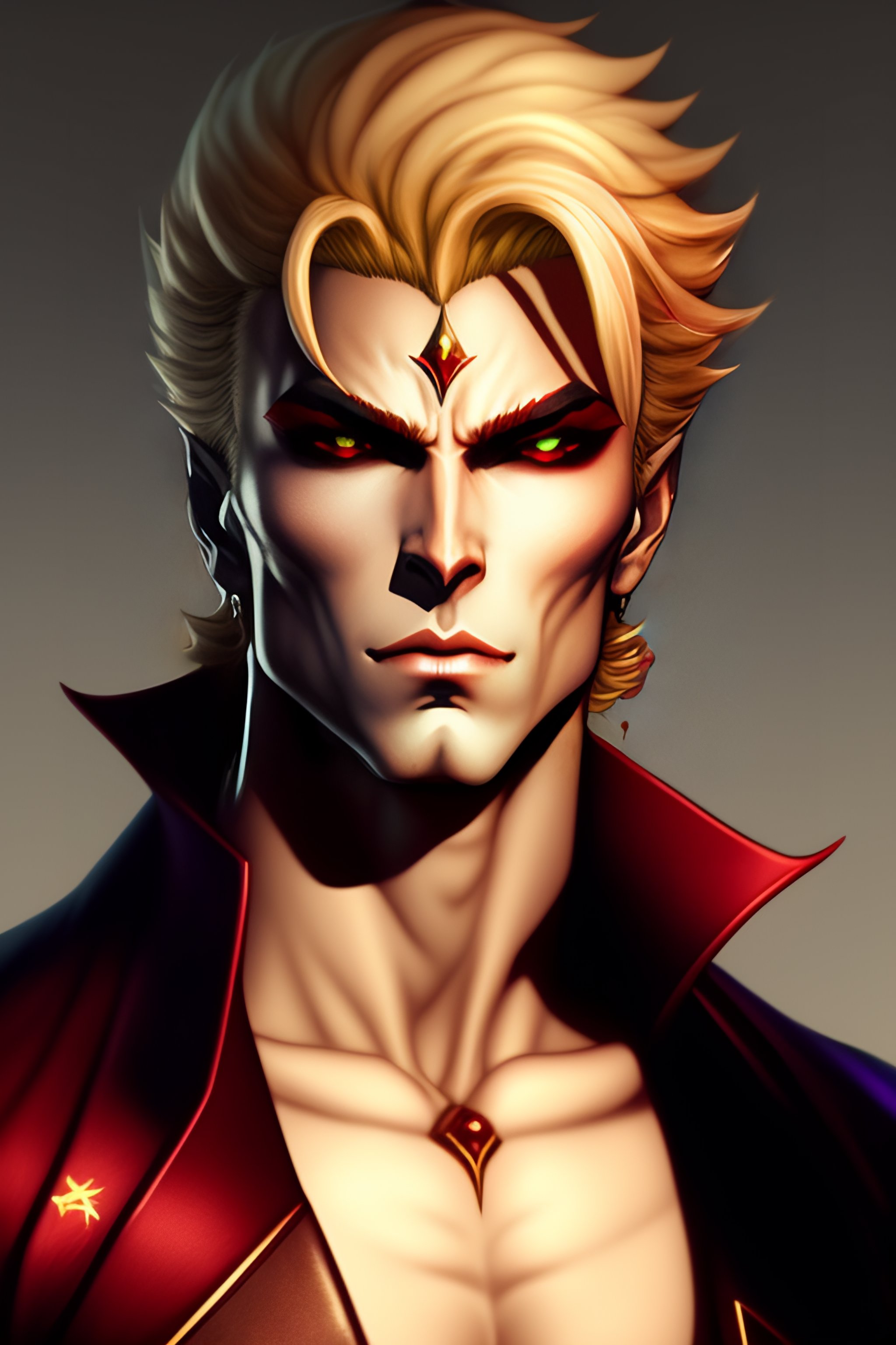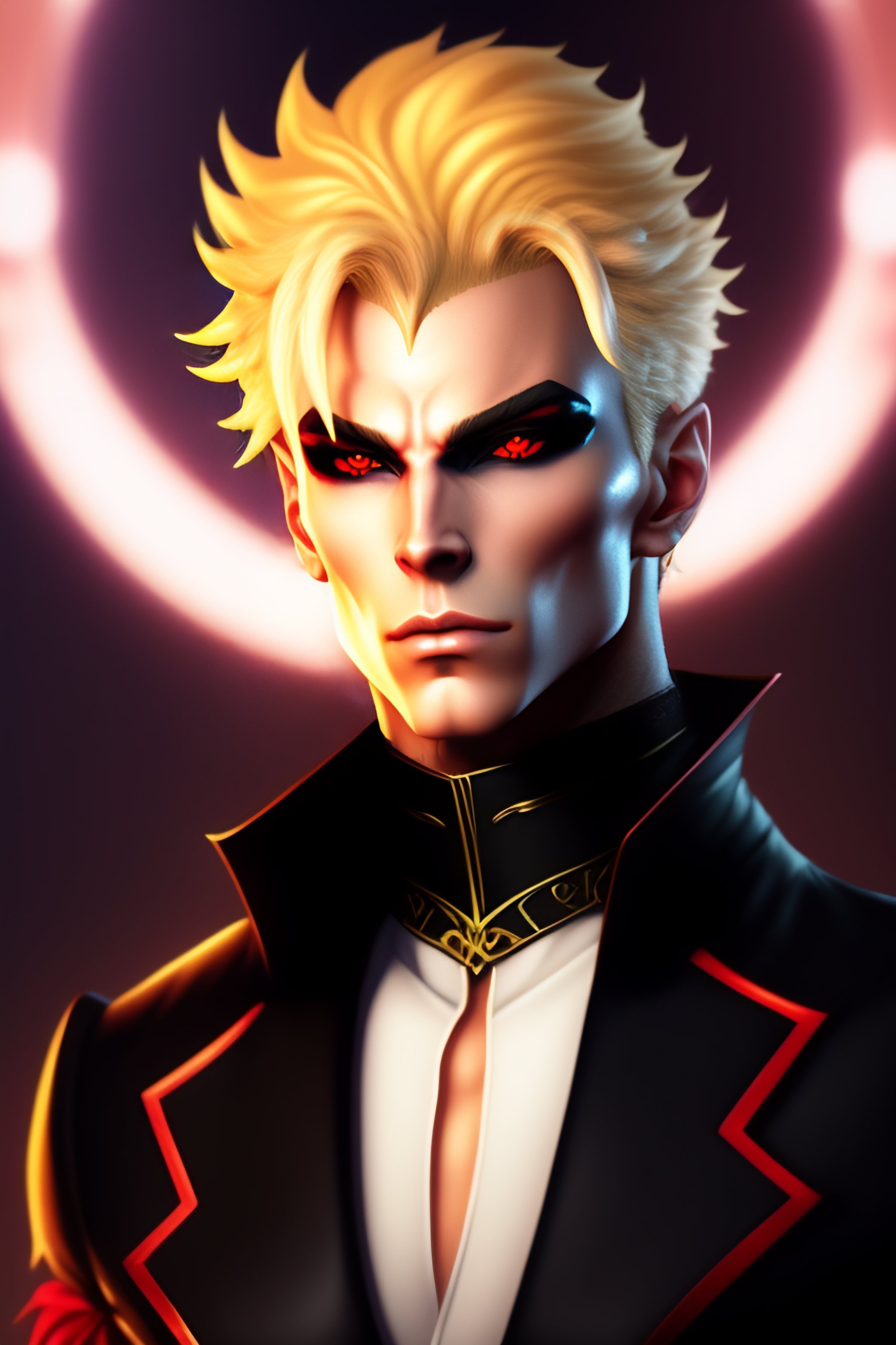 Human man blond vampire with red eyes inspired by dio brando from jojo bizzare adventure