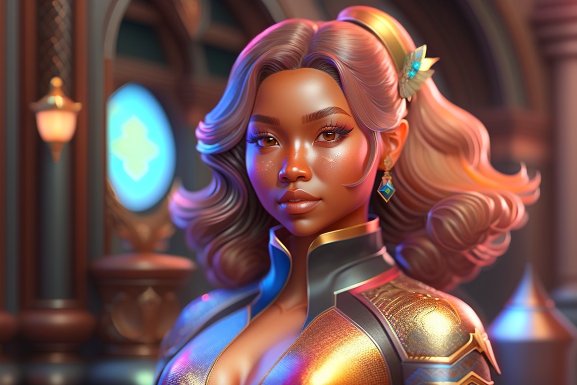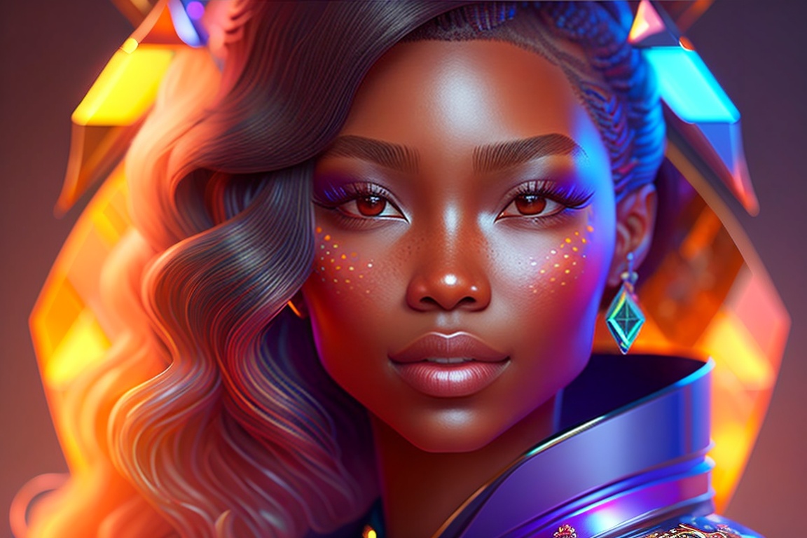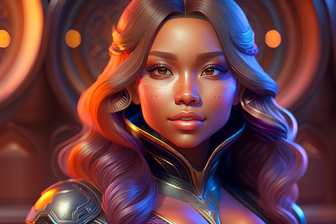 Cute virtual woman by jordan nelson and mingchen shen. trending on artstation. black scales. lighting, epic, 8k, highly detailed, centered, symmetry, painted, intricate, volumetric lighting, beautiful, rich colors in masterpieces, sharp focus, ultra detailed, in the style of and mumford and marc simonetti, astrophotography