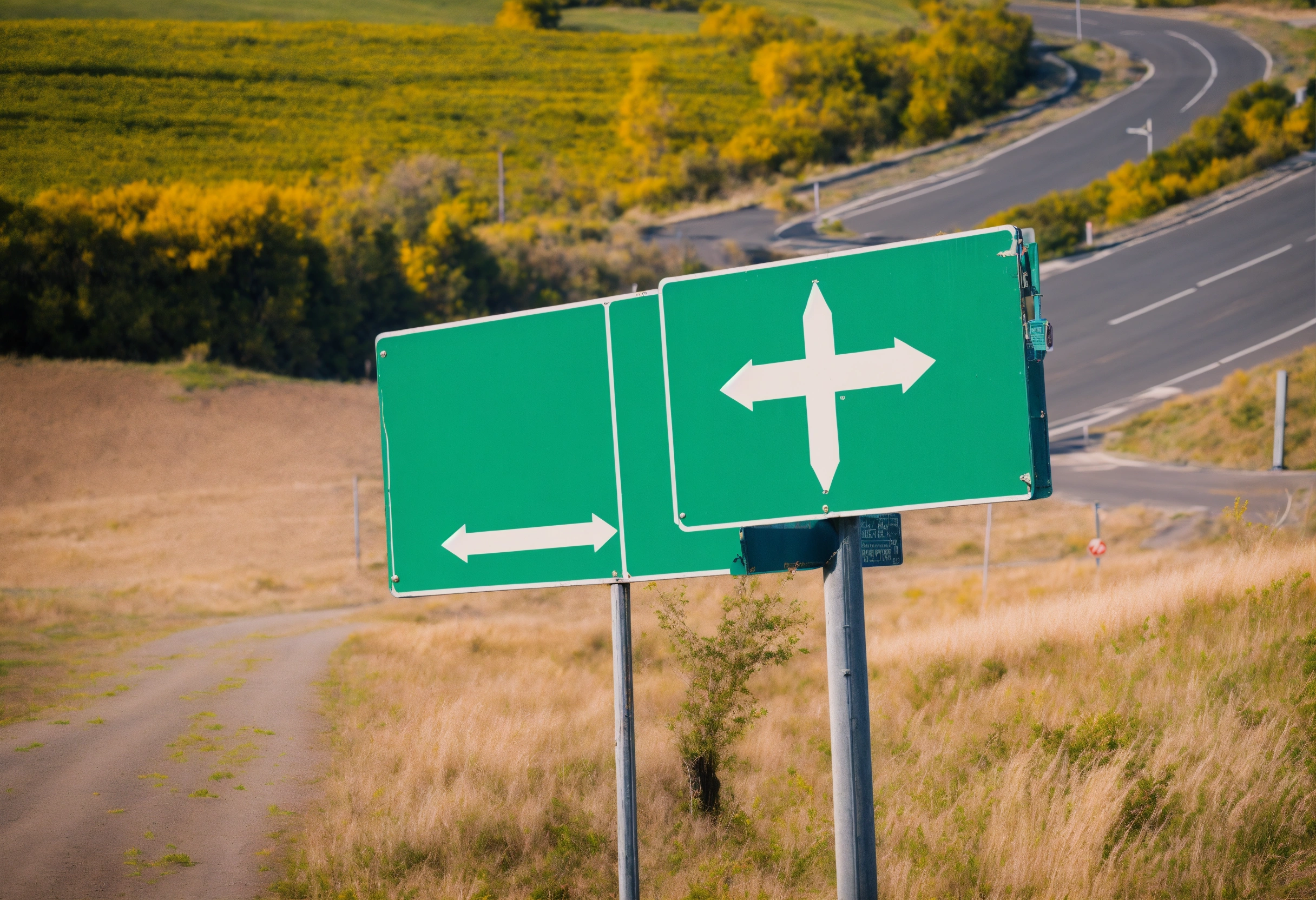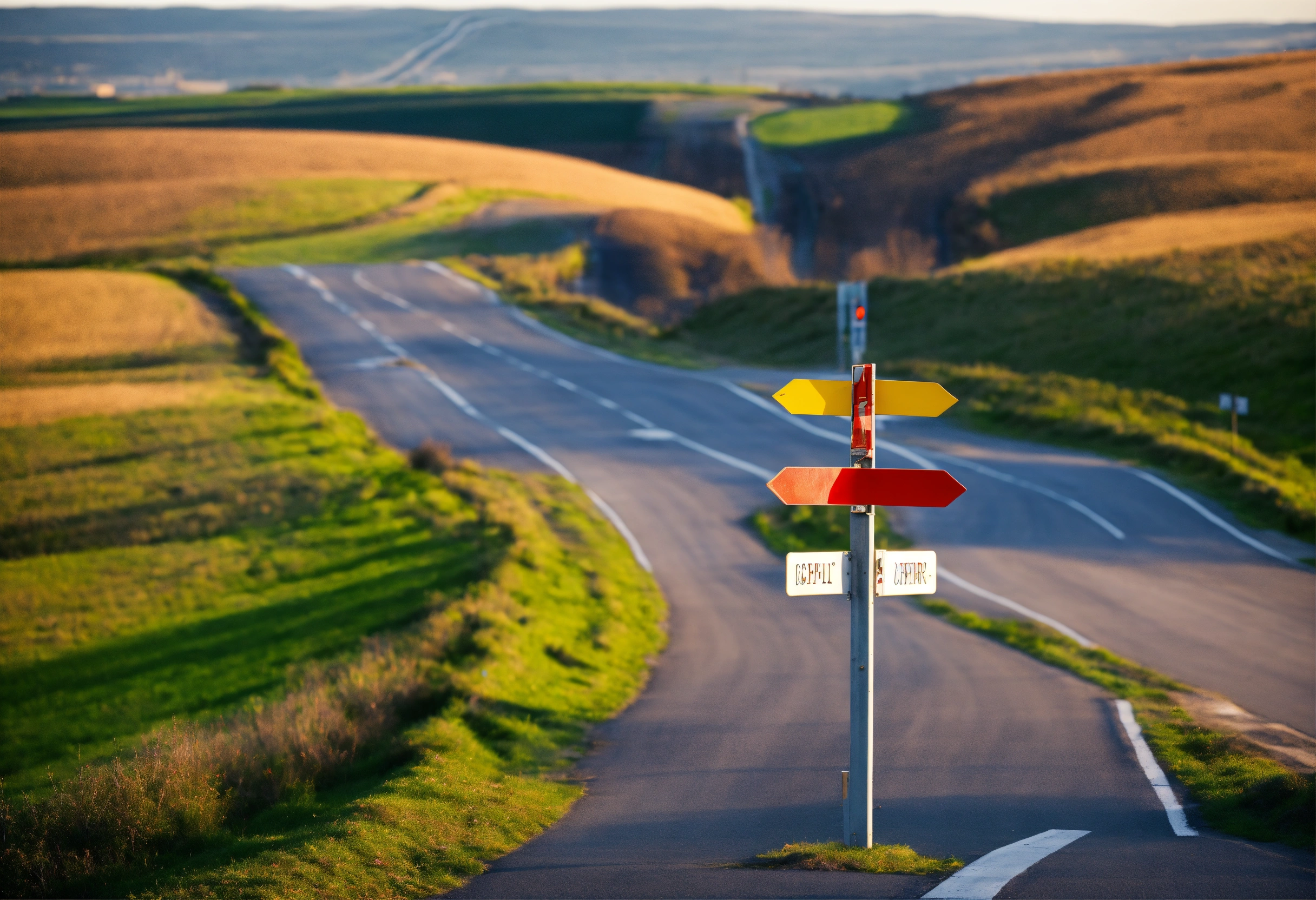 Crossroads with sign going in 4 directions