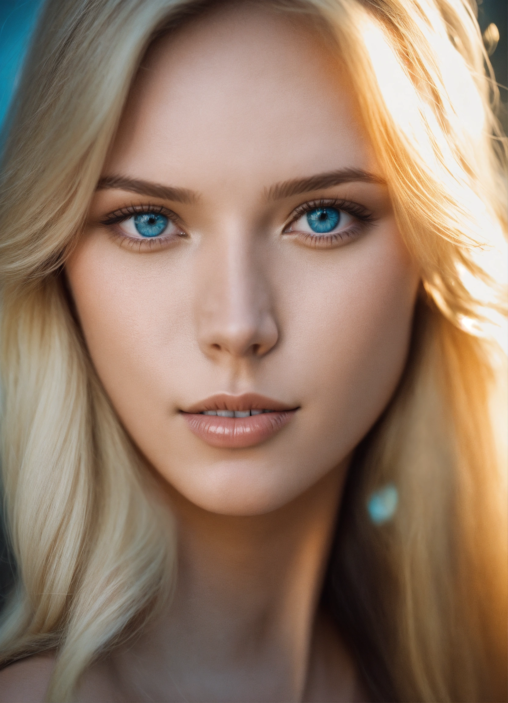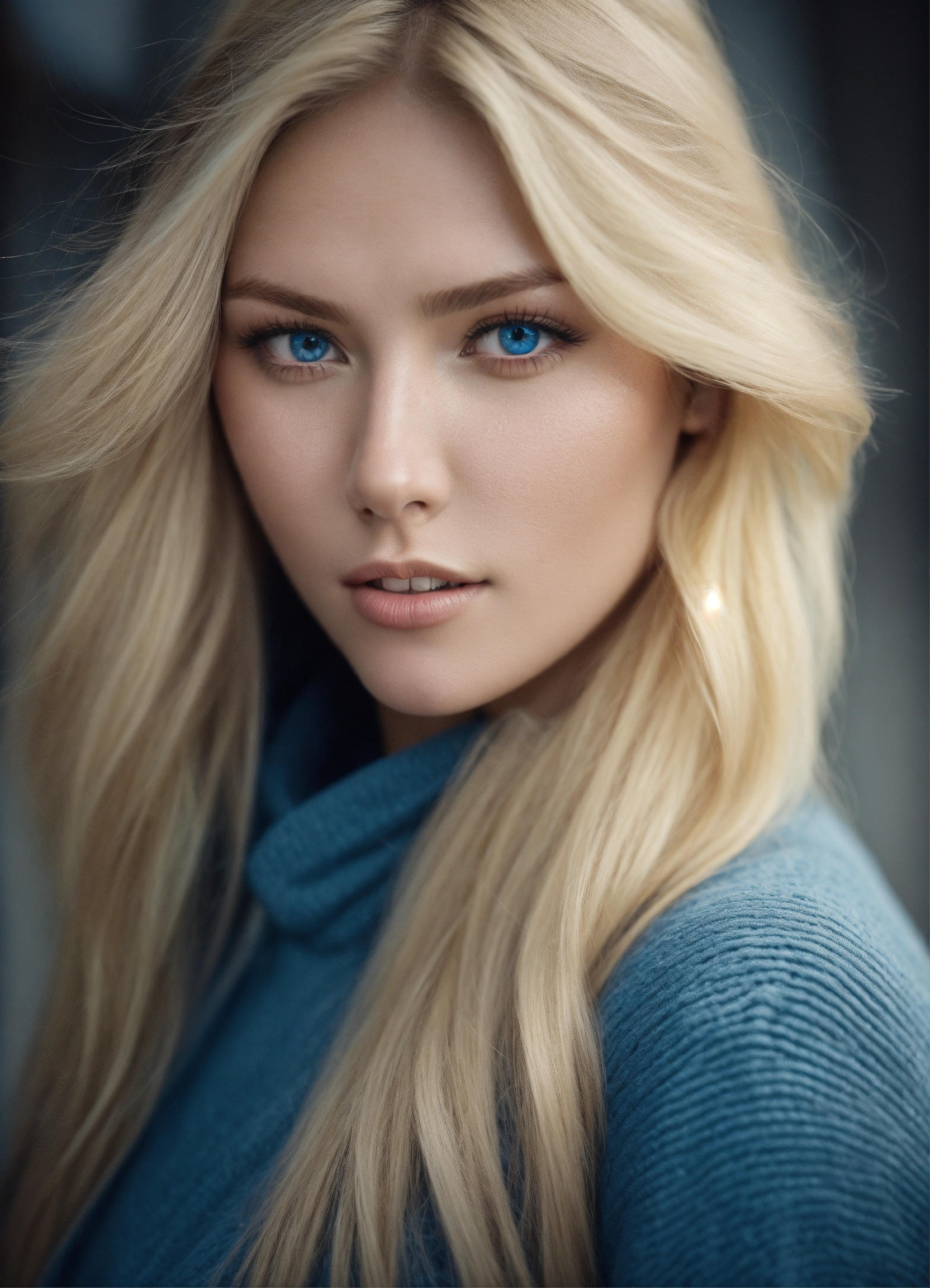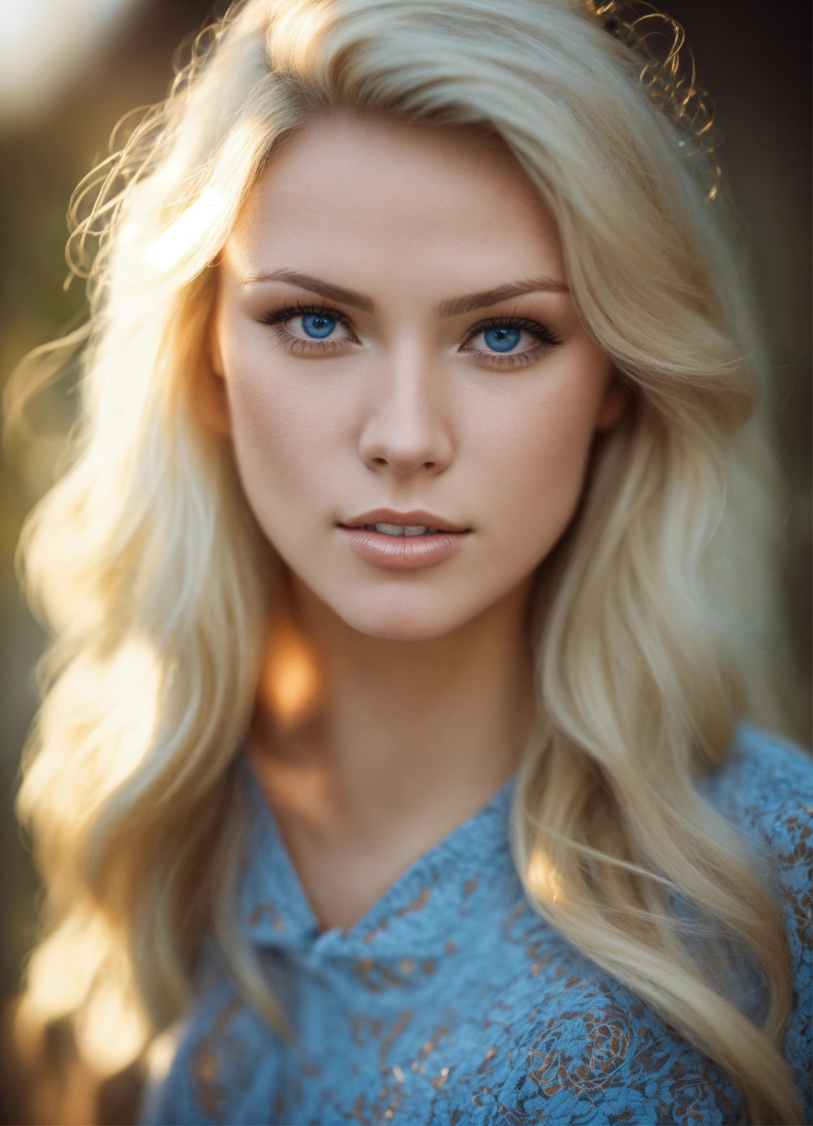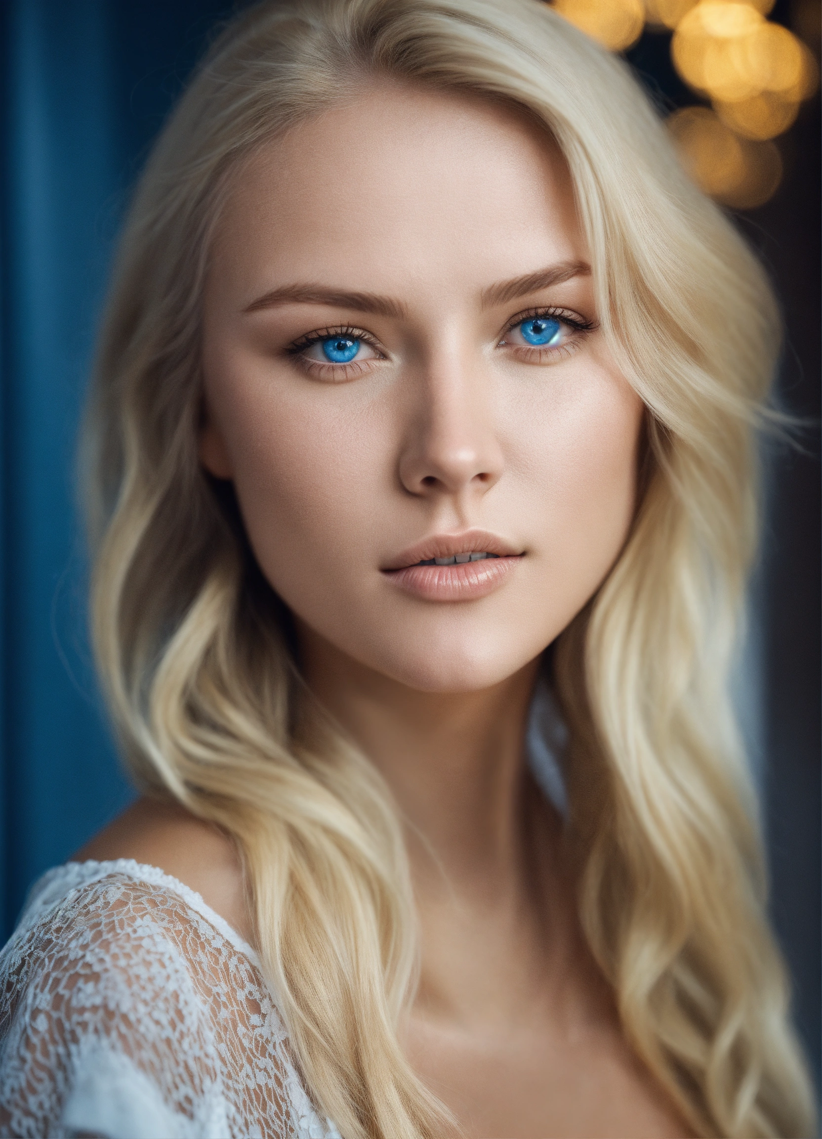 A gorgeous blonde nordic woman with blue eyes and light skin
