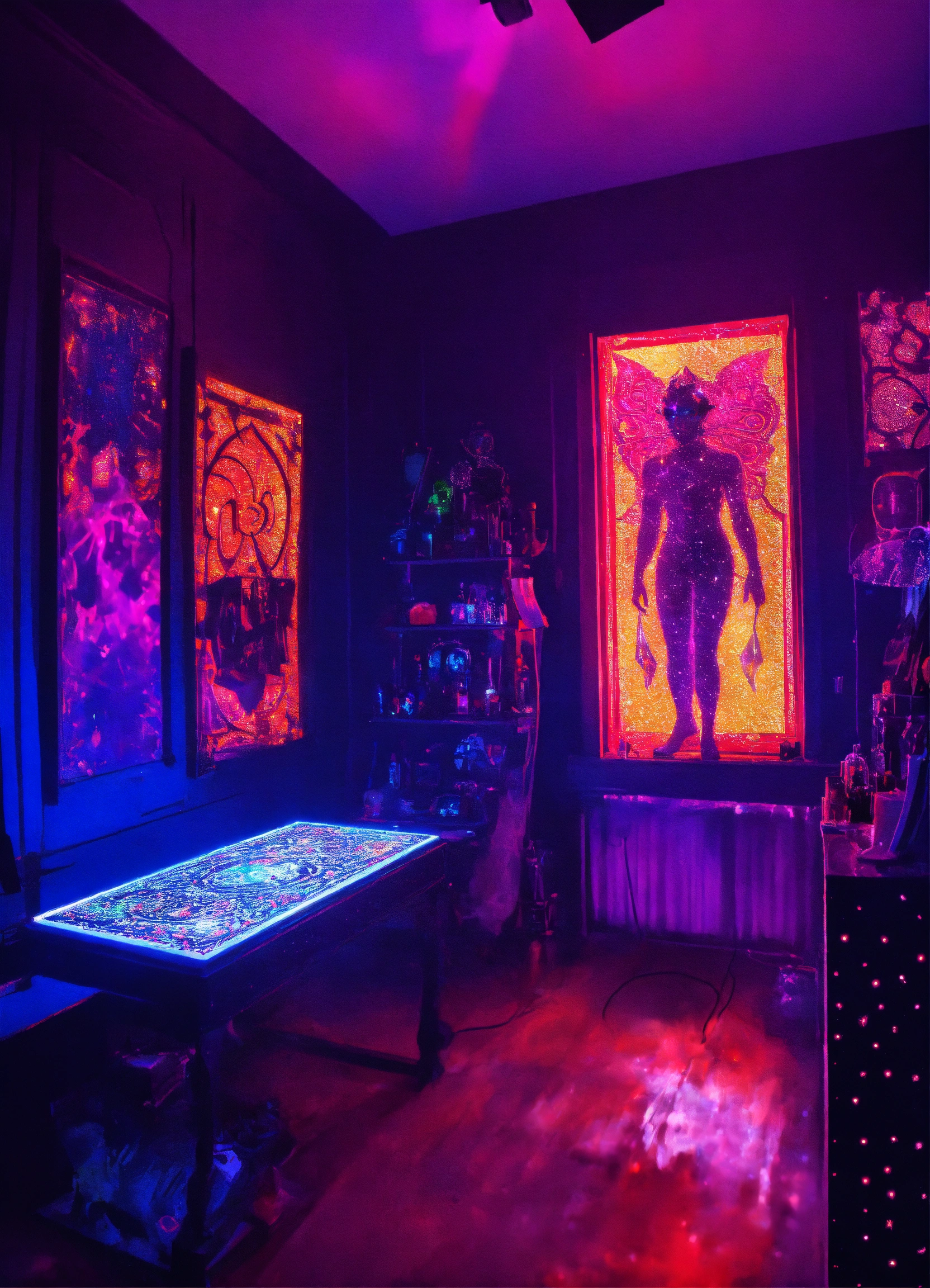 Perfect focus the phantom amethyst neon black light dmt demon glitter room