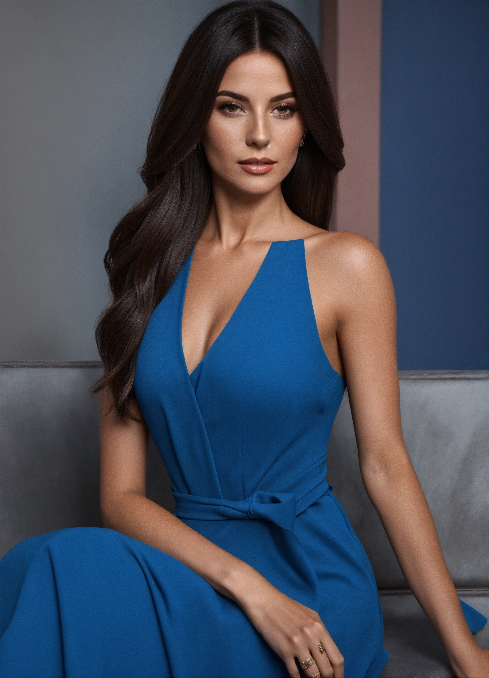 Manuela arcuri long straight dark hair bar blue dress upper body 3d