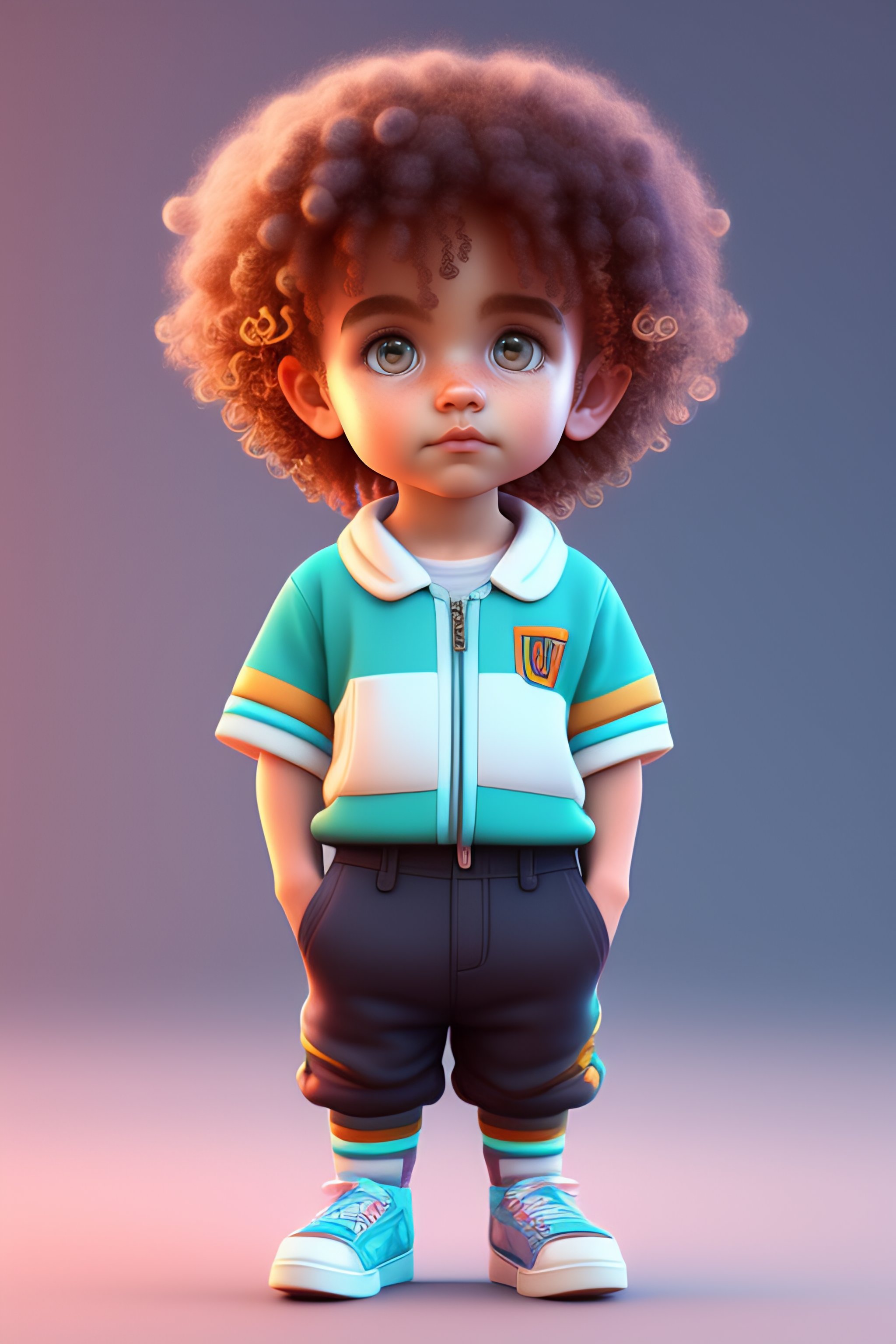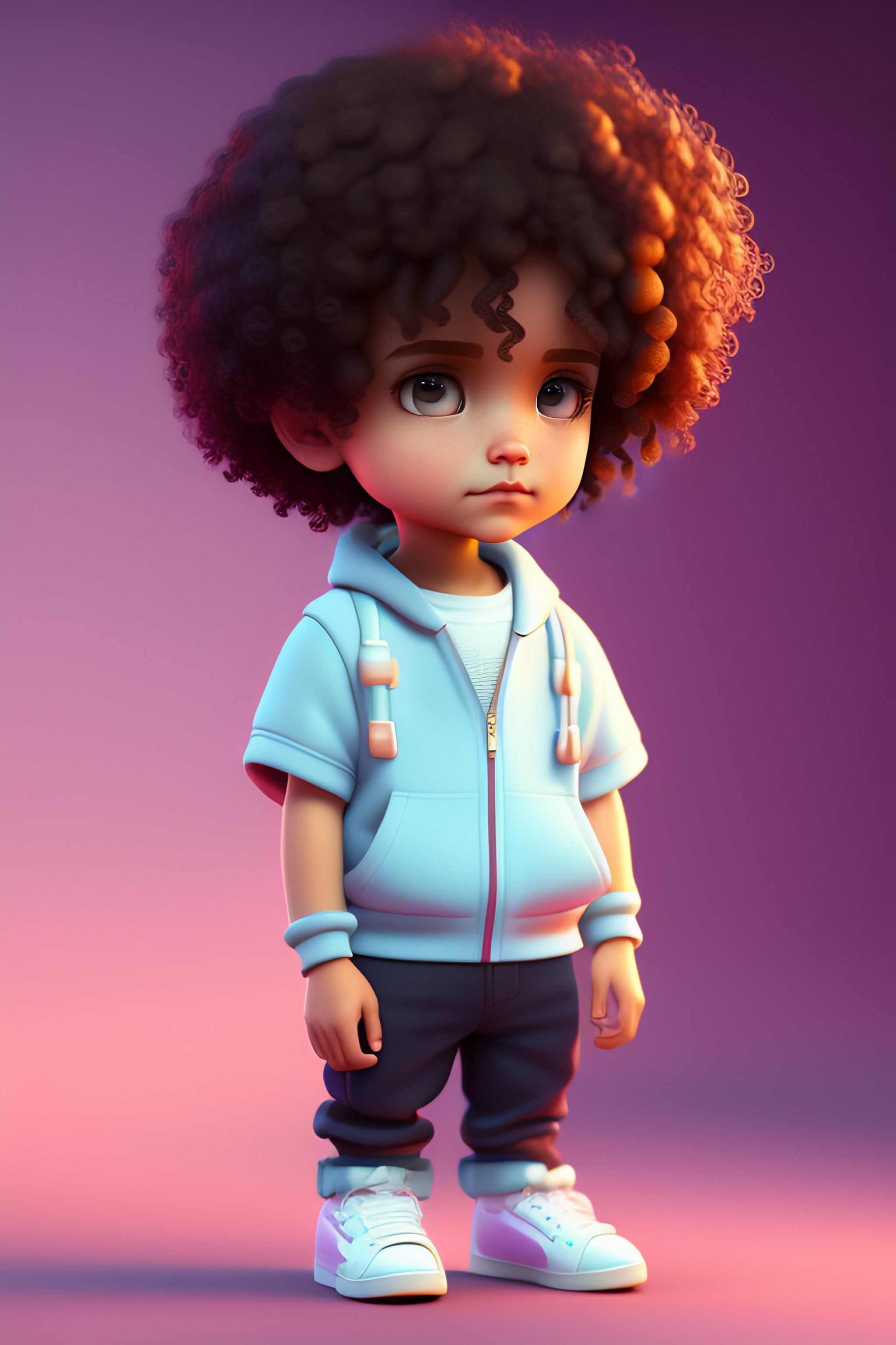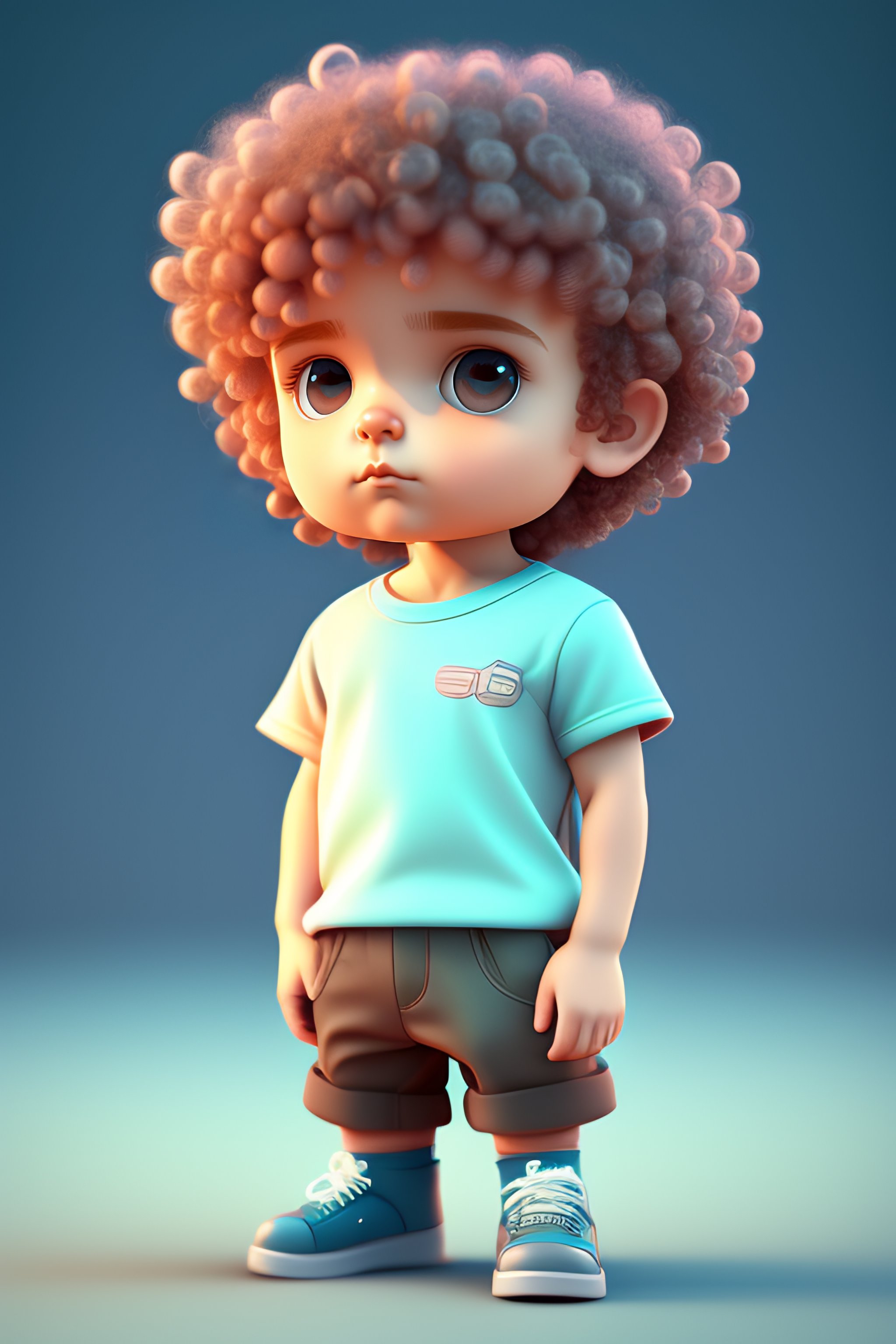 Cute sad boy toy, curly hair, standing character, soft smooth lighting, soft pastel colors, skottie young, 3d blender render, polycount, modular constructivism, physically based rendering, square image