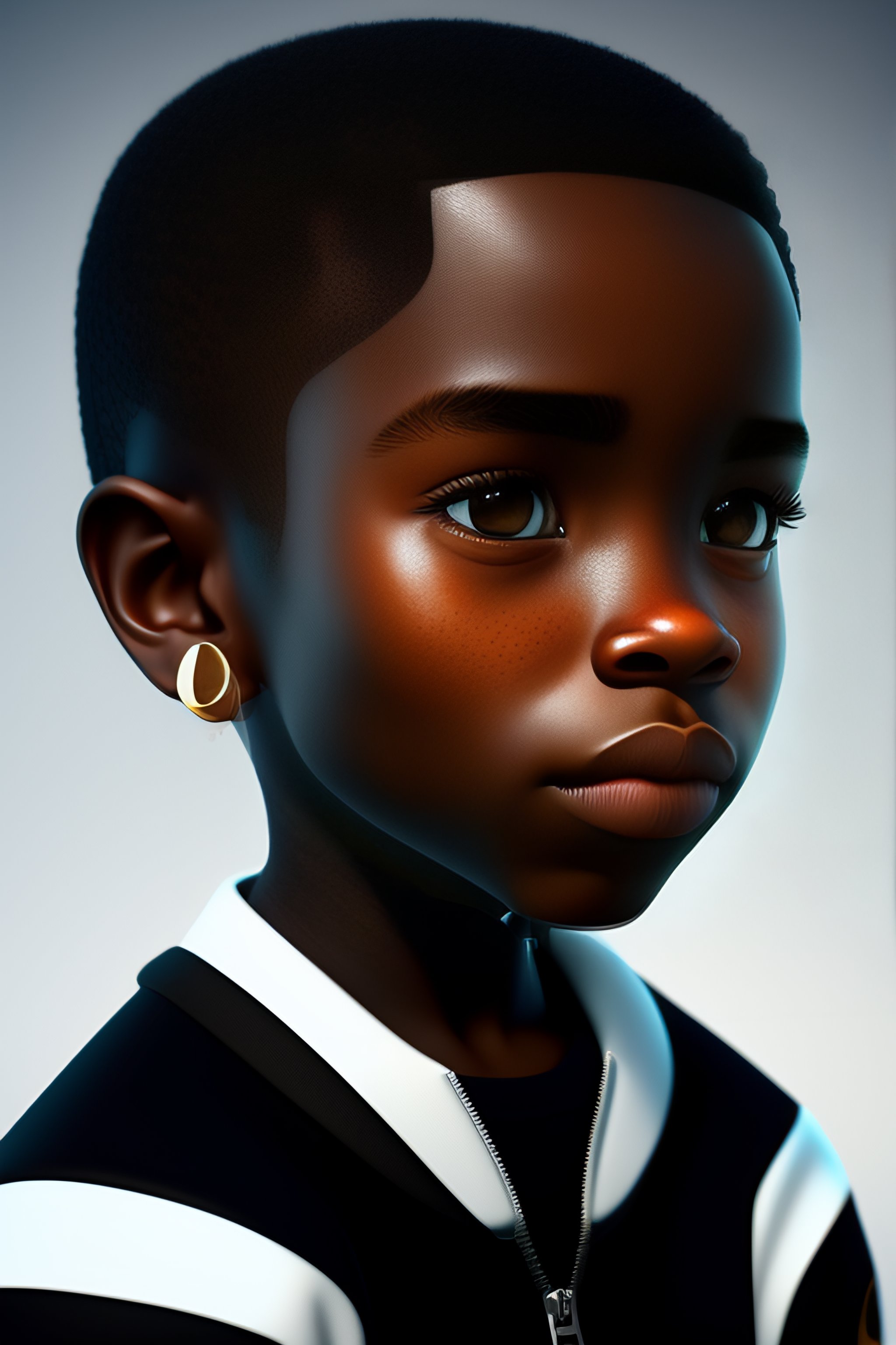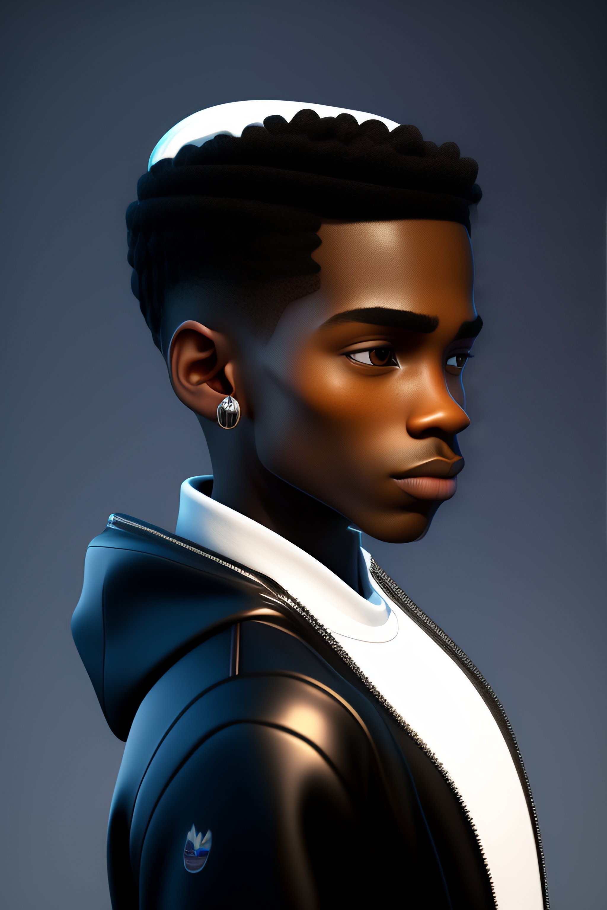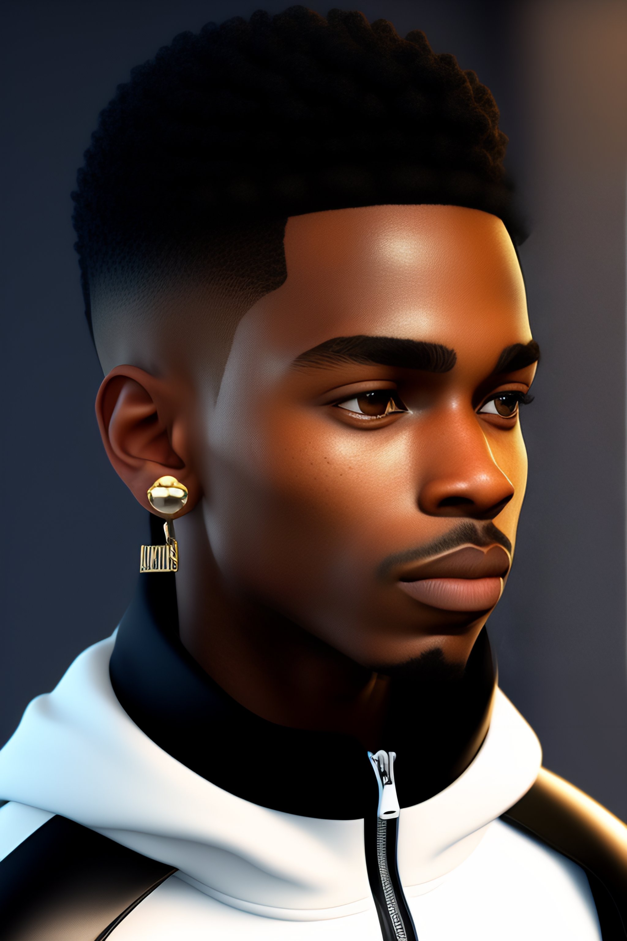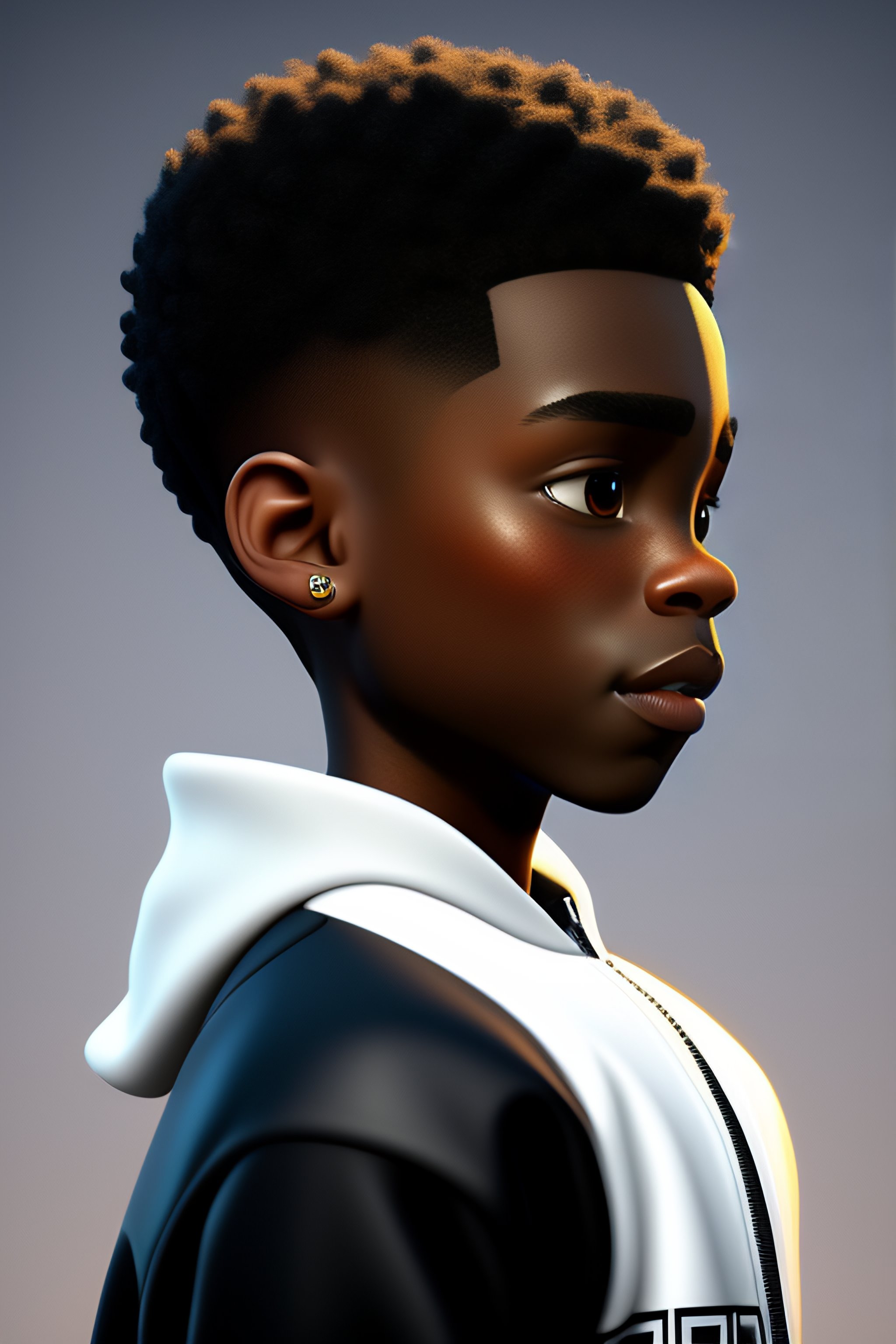 Nigga boy in black zipper top, earring, pixar style, 3d style, disney style, 8k, beautiful, black-white, off-white