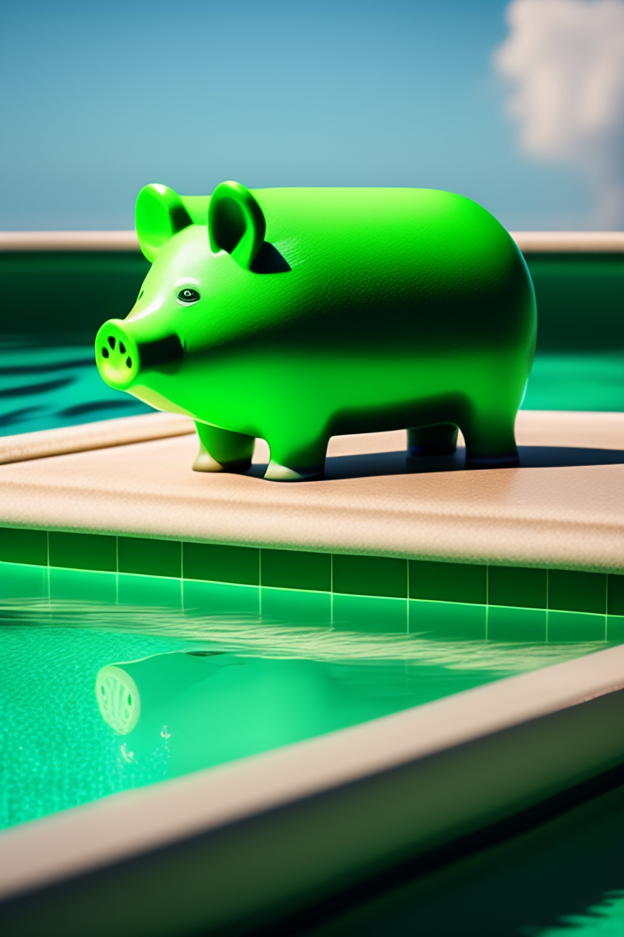 A green pig in a swimmingpool