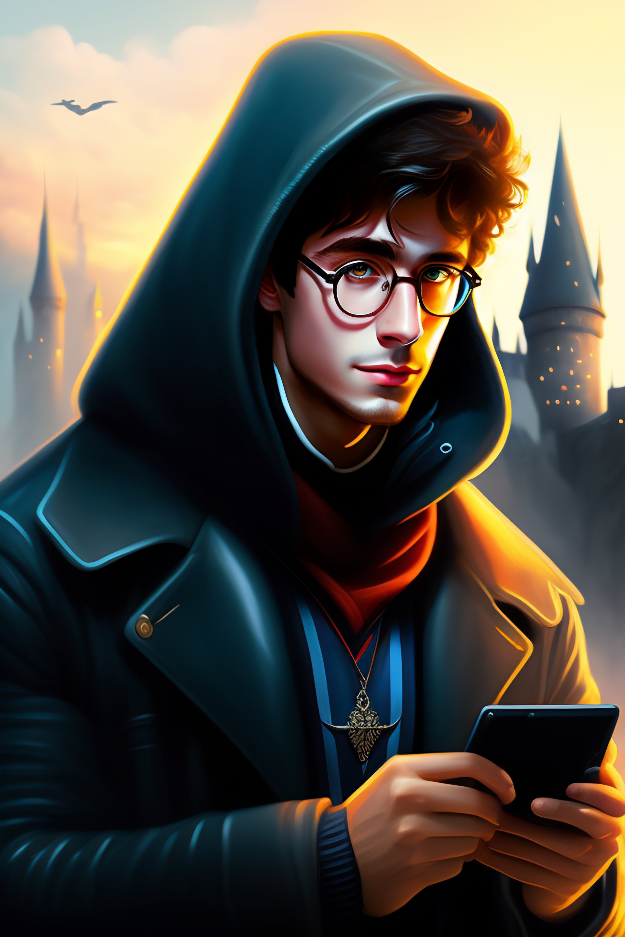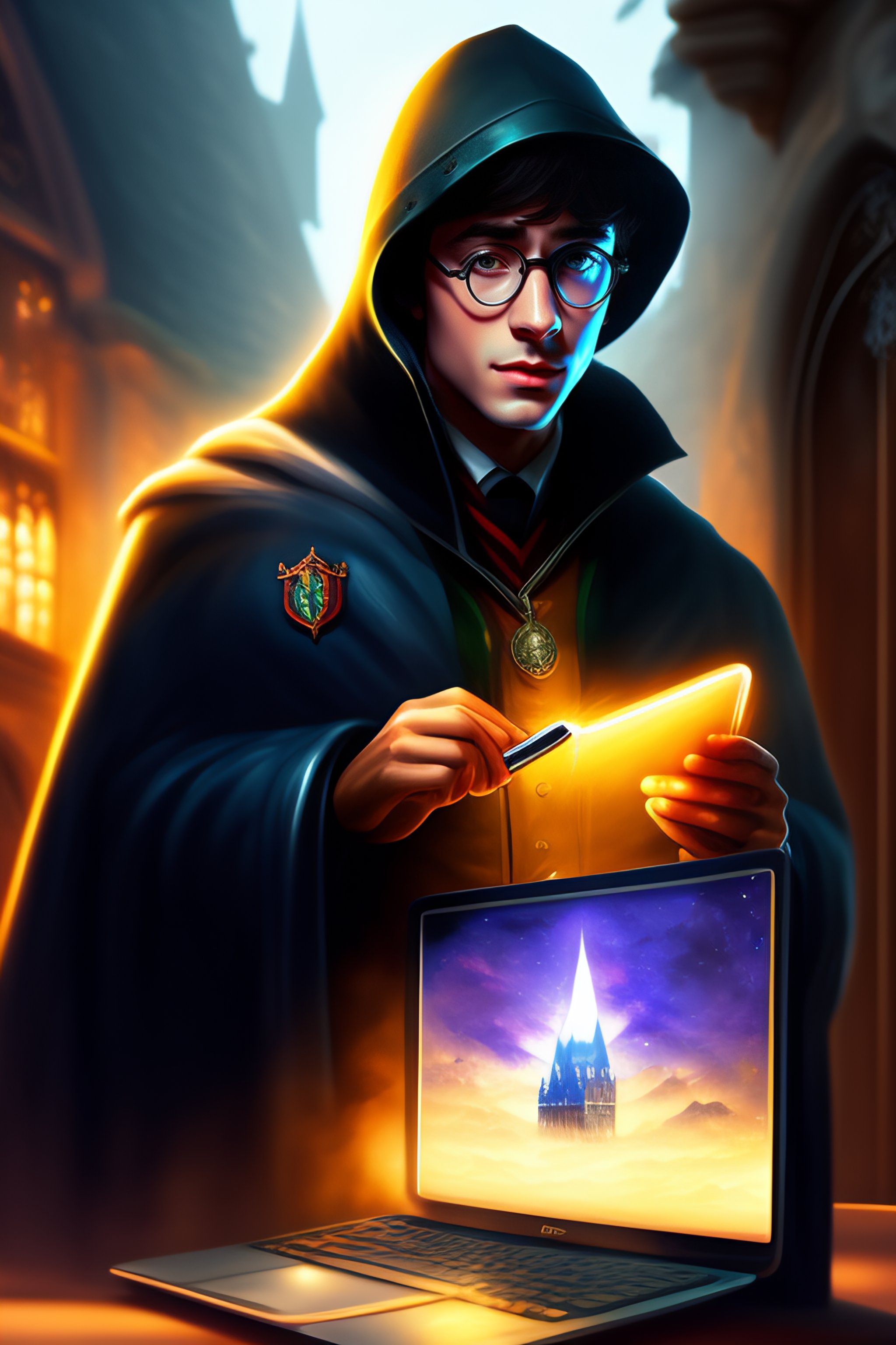 Instaport style, digital art painting, harry potter, lord of rings, watch dogs, hacker, tecnology, male