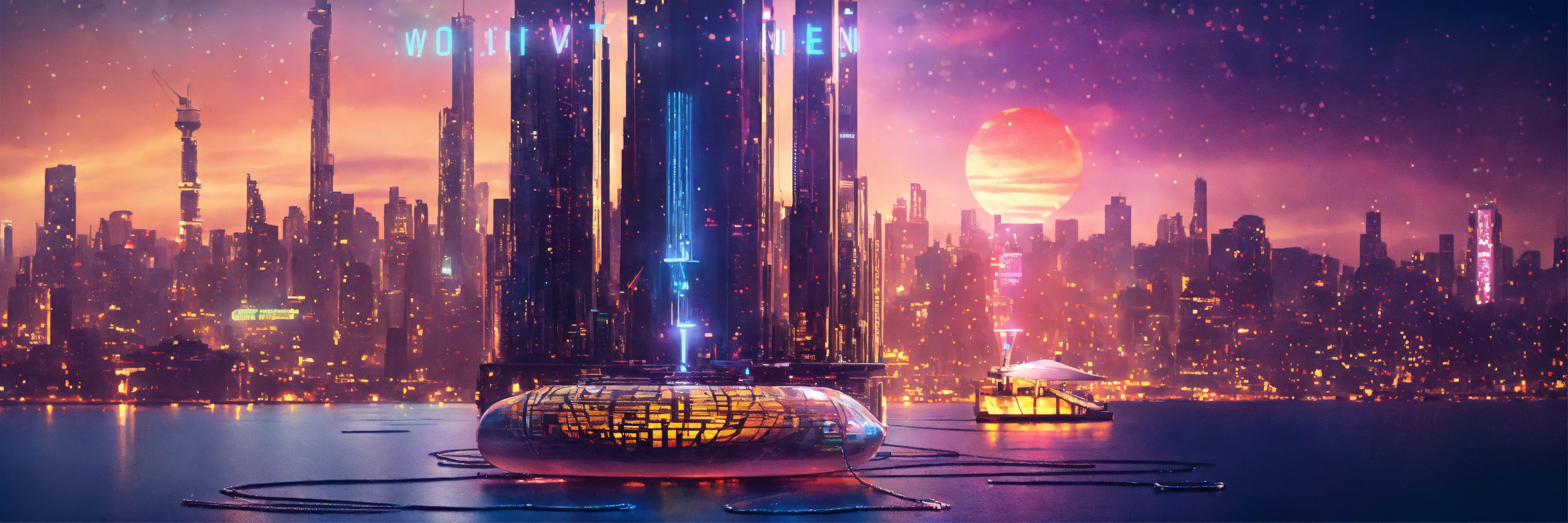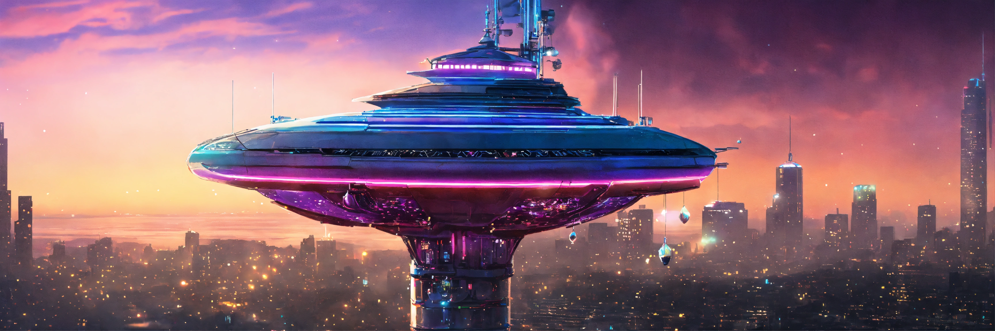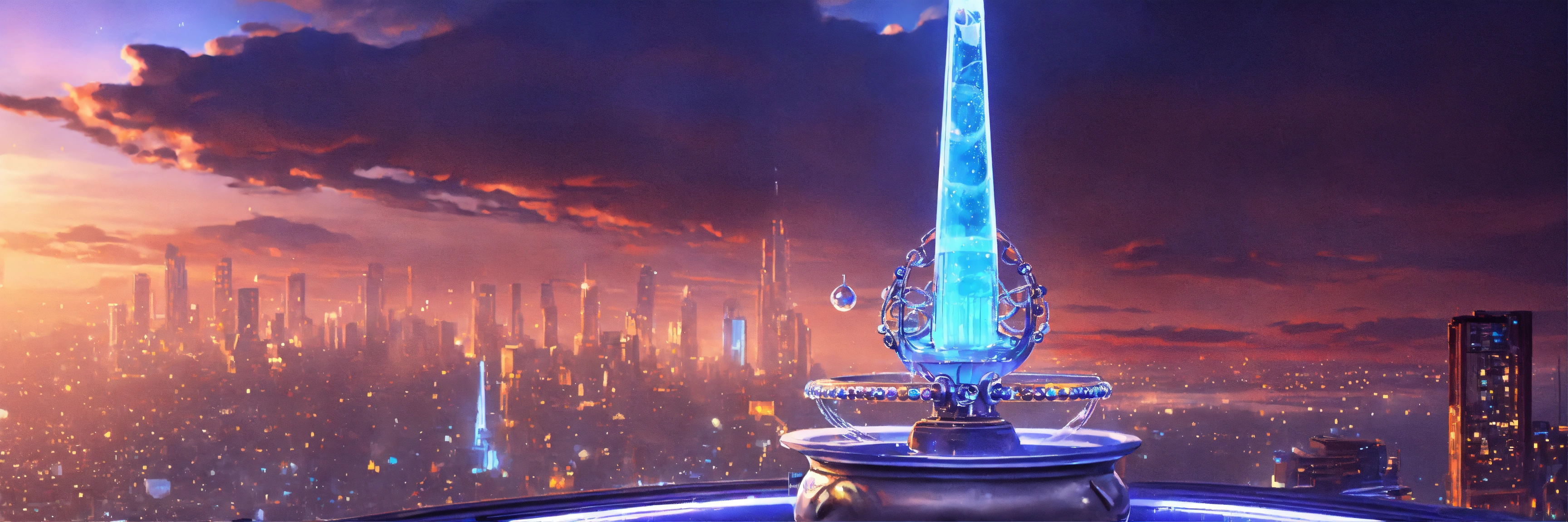 A cyberpunk fountain pen in the middle of a cyberpunk cityscape, shimmering pearls, water made of shimmering pearls, white, shimmering pearls with a futuristic ship inside the cup chains around the cup in 8k, high resolution, --, high definition, elemental, hyperealistic, snowing, sunset in the background, full scale, large, juxtaposition, intergalactic, text vision., neon colors, smooth, gentle
