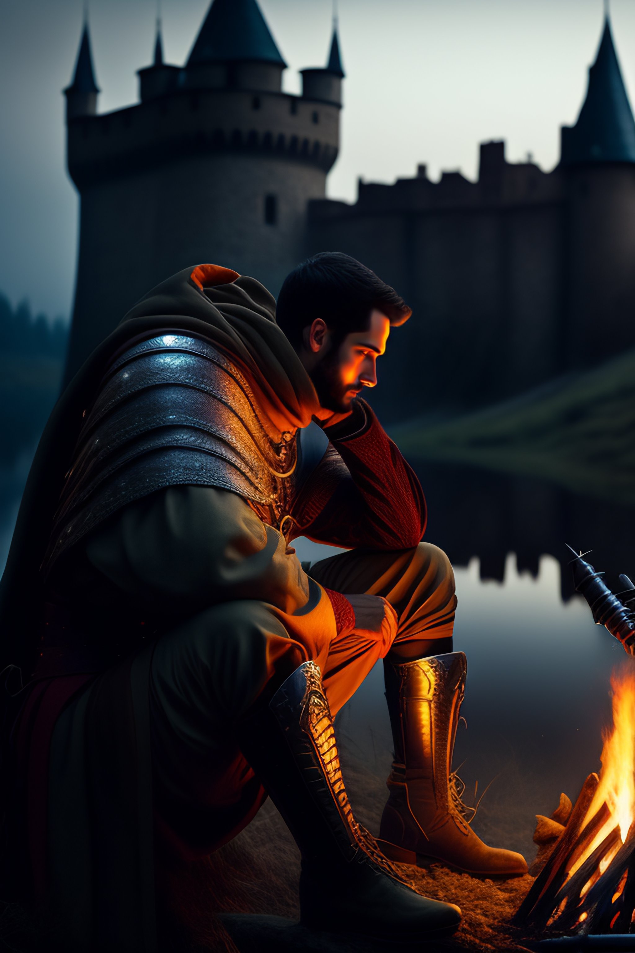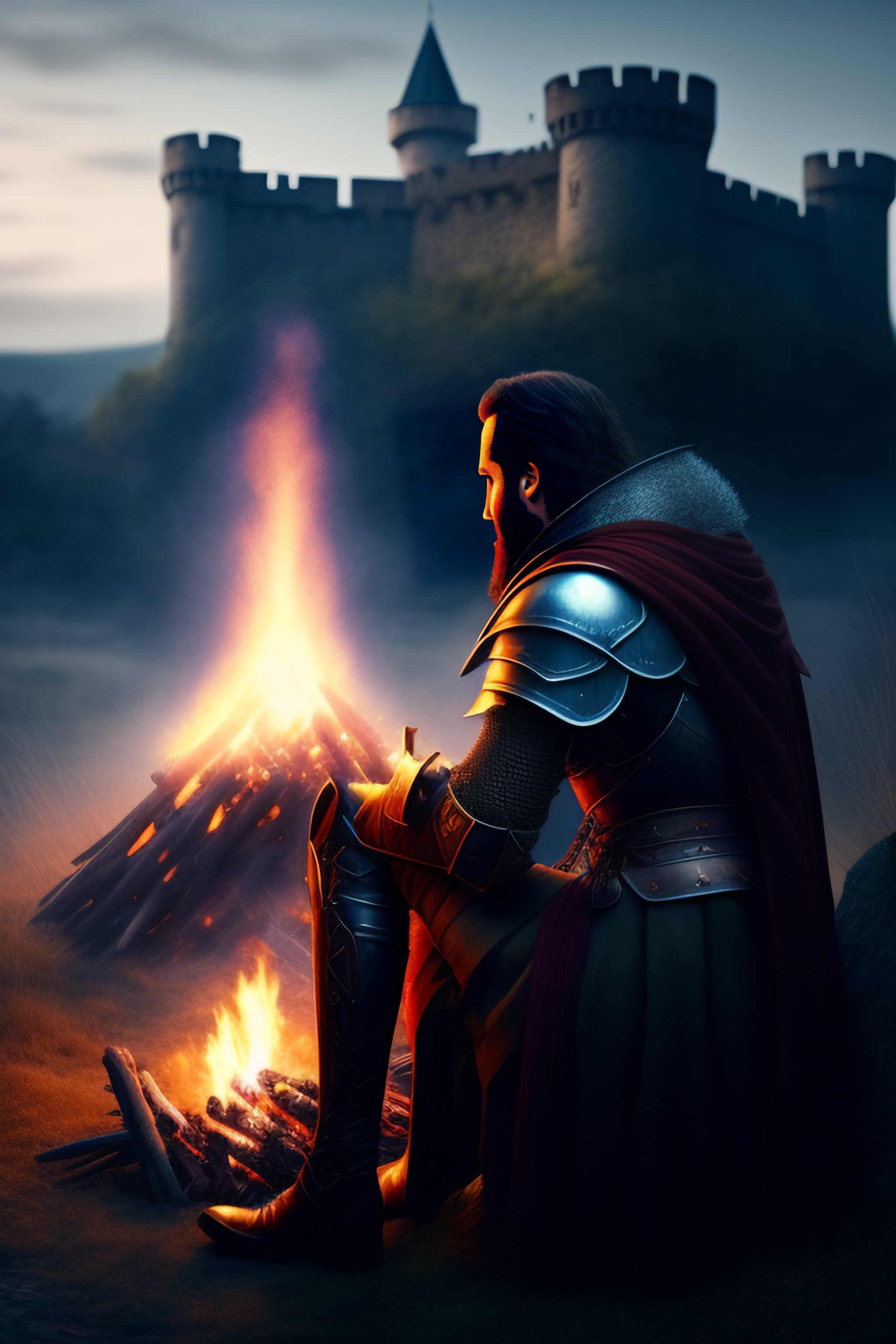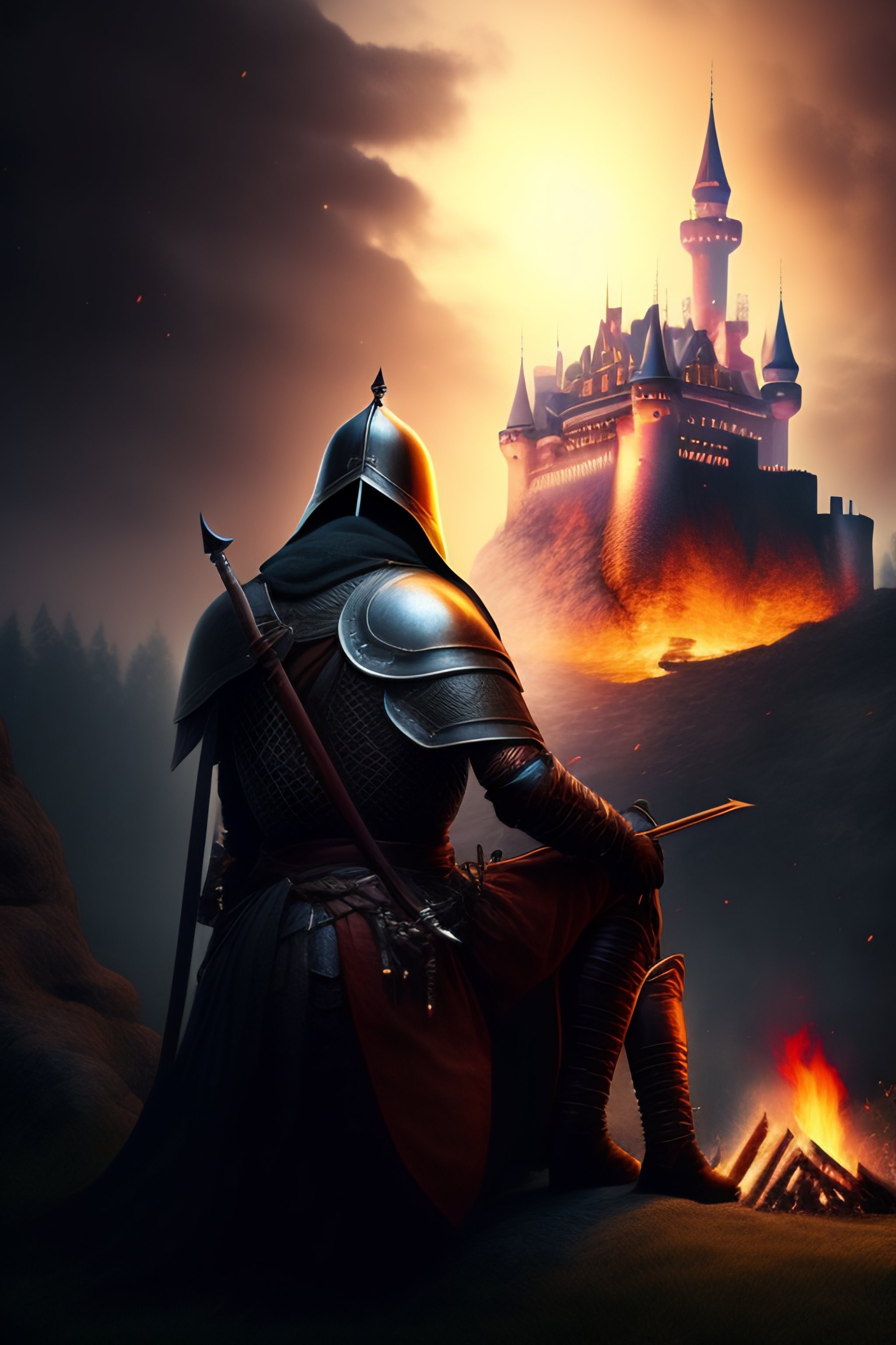 [ альбом ] photo a knight sitting by a campfire not far from the castle by dark souls eternal darkness #dreamlikephotoreal