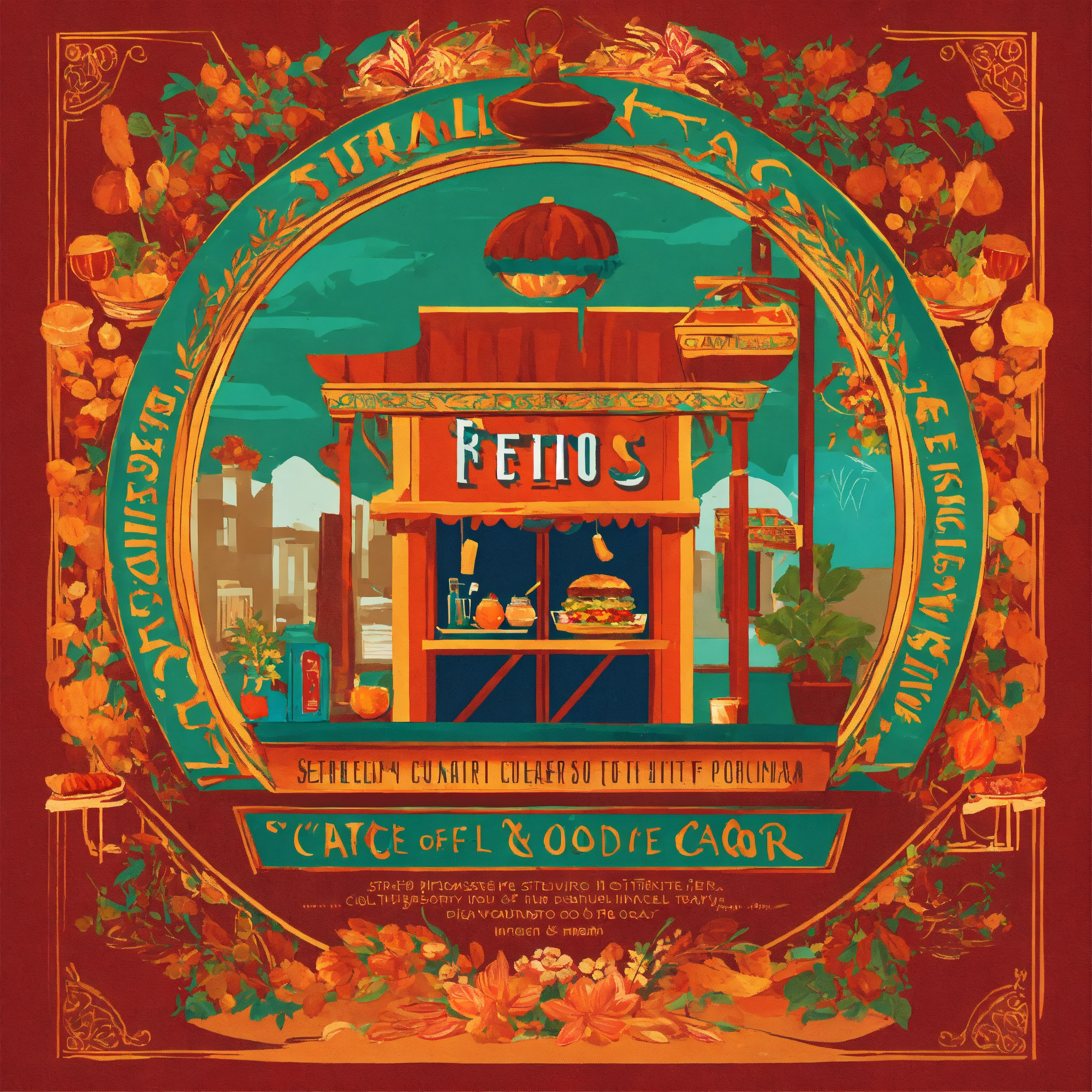 Design a distinctive and visually captivating logo for a street food program that explores the culinary treasures of the world's best places to eat. the program features a cinematic format, presenting each dish with a poetic touch. the logo should encapsulate the essence of urbanism, the vibrant and rich colors of street food, and an artsy style. it should be a visual feast for the eyes, evoking the magic of discovering unique flavors in the heart of the city. incorporate elements that symbolize both the global journey of flavors and the cinematic storytelling, making it a tantalizing representation of the program's mission."