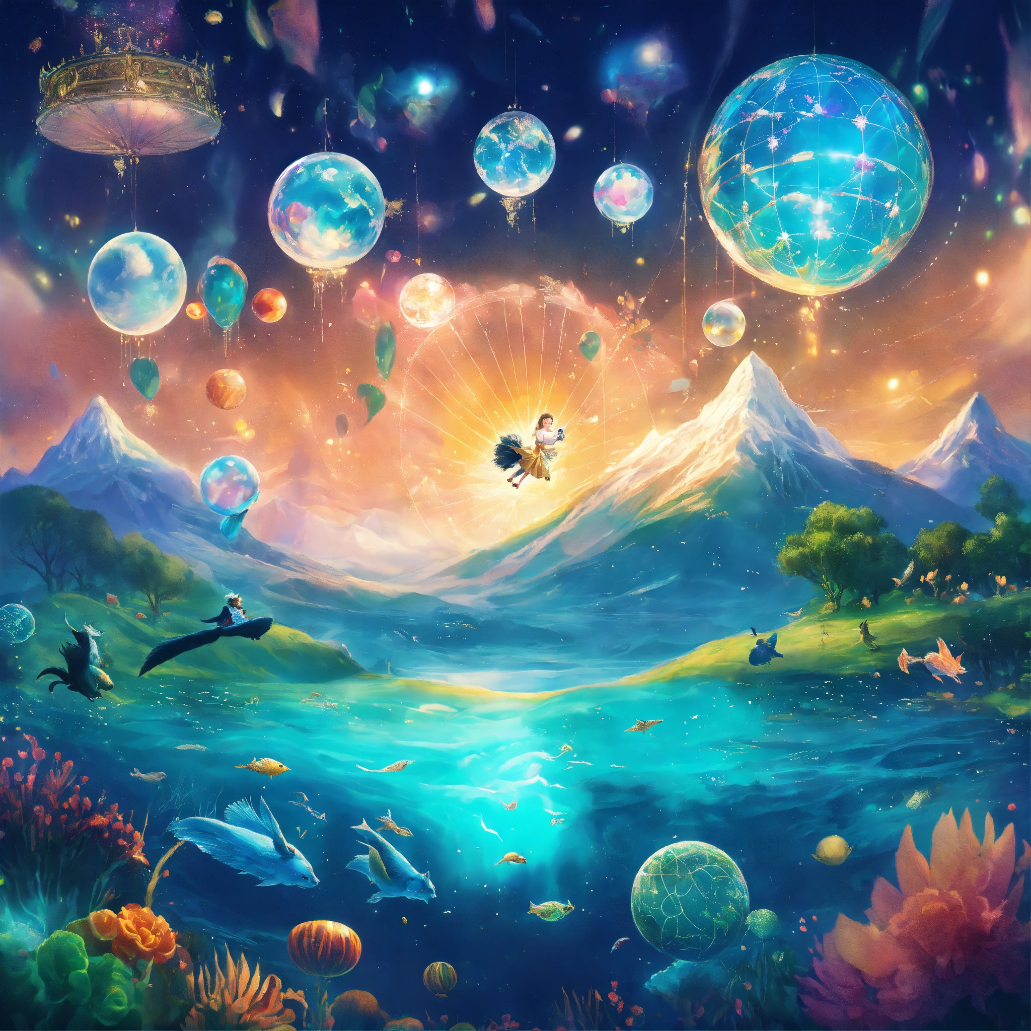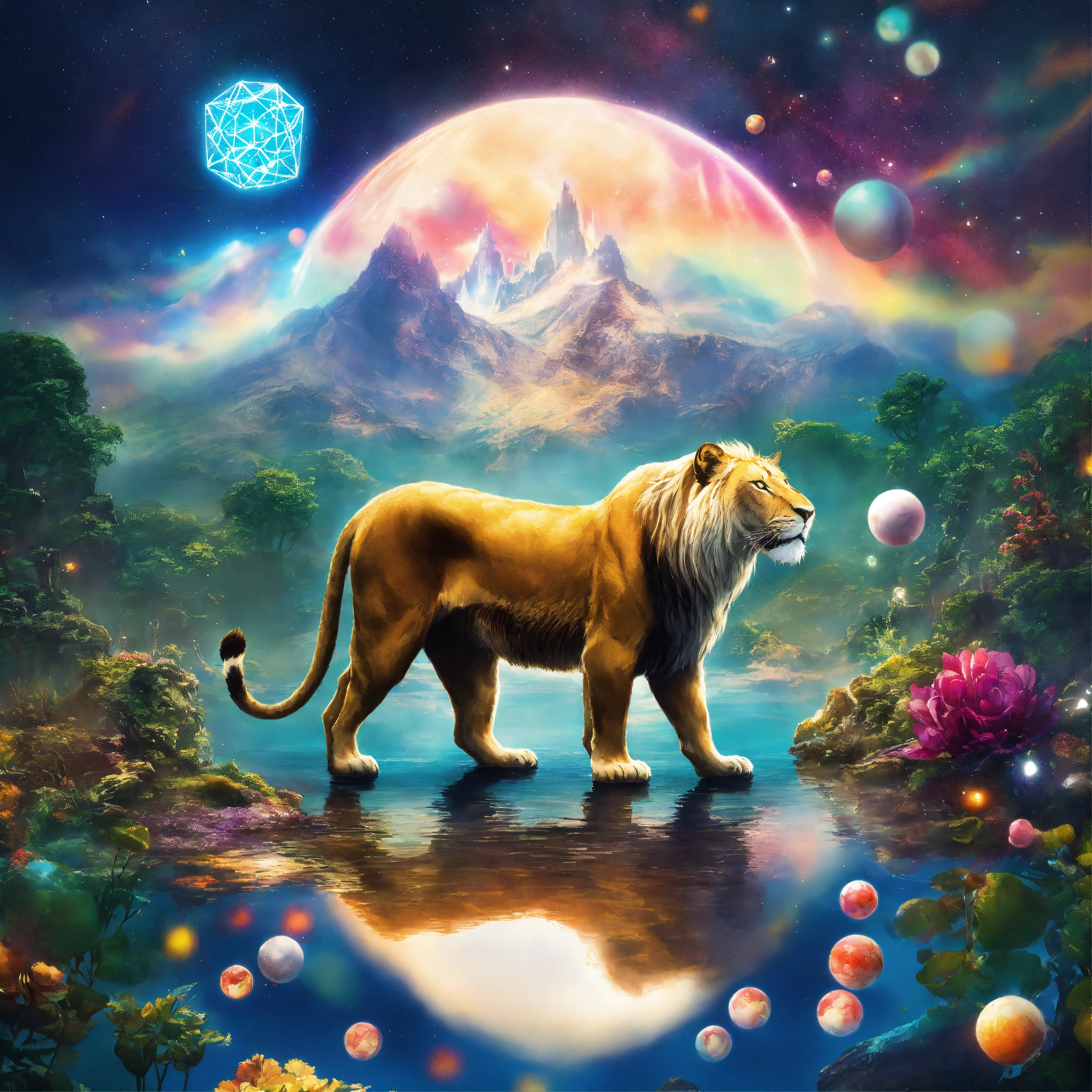 Underwater long exposure photography style, cartoon style, white giant circus flying panthers in the cosmos with orbs, x-ray style, in the style of tim burton, lion king, the chronicles of narnia, beauty and the beast, and peter pan. with sacred geometric patterns on the body. enchanting aura. the chronicles of narnia, wizard of oz, and alice in wonderland background with snow mountains, and trees with white leaves.