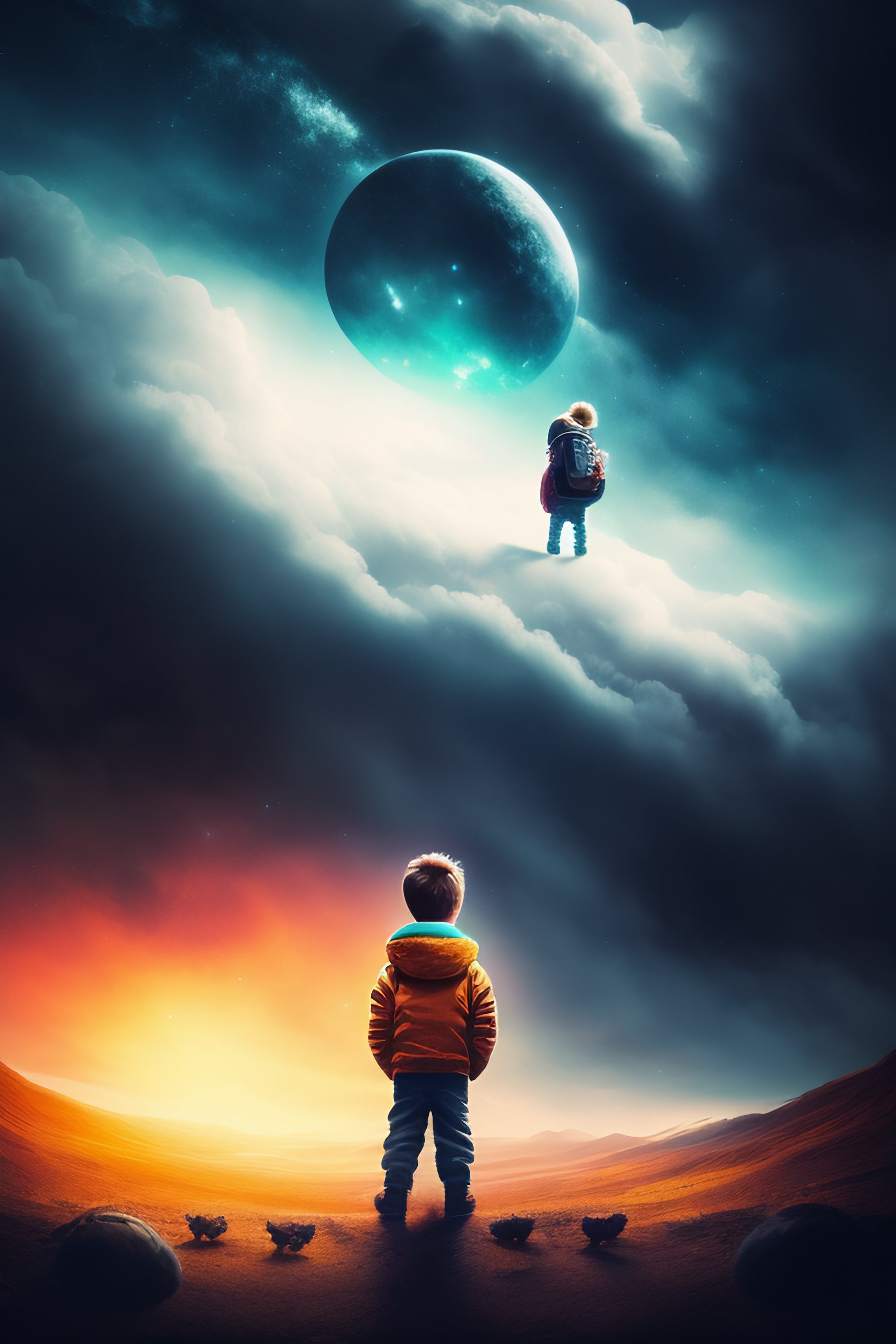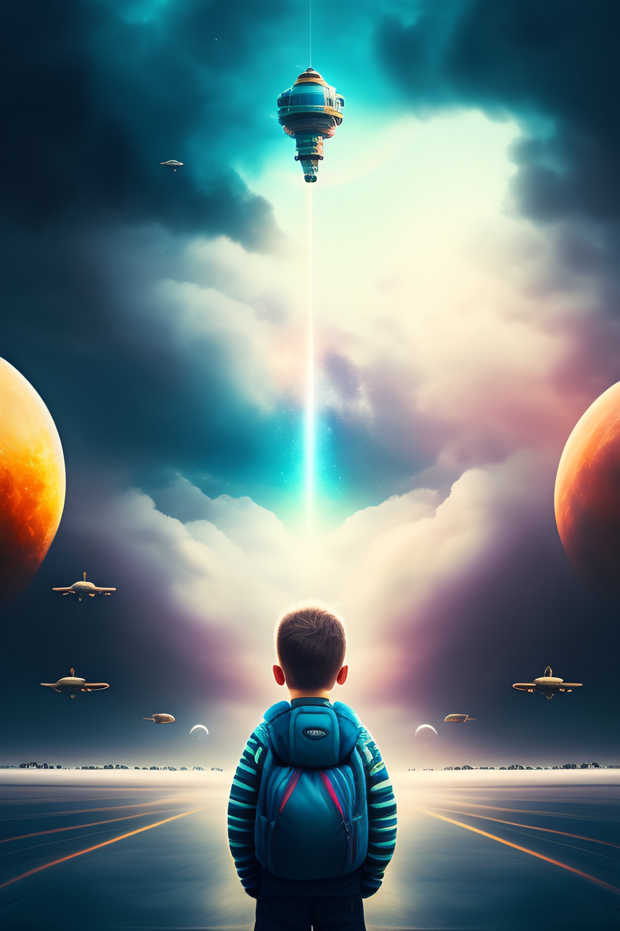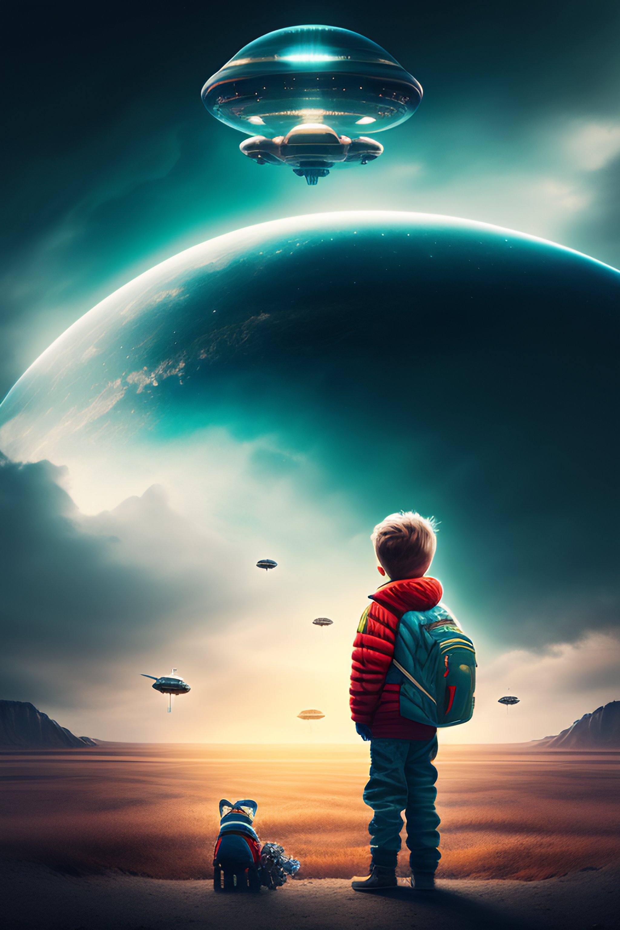 Desing a movie poster with aliens falling from sky and a boy looking up in the sky