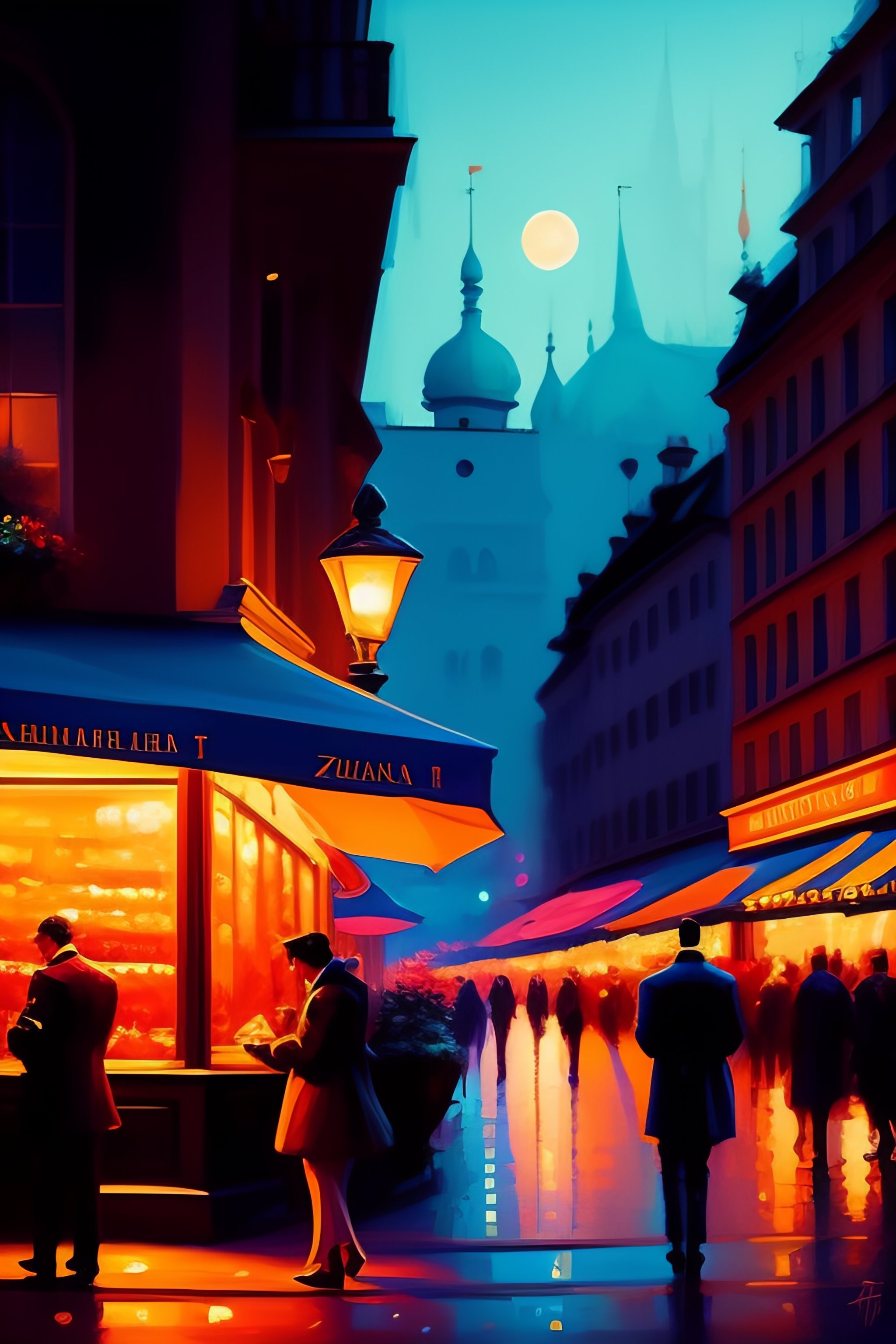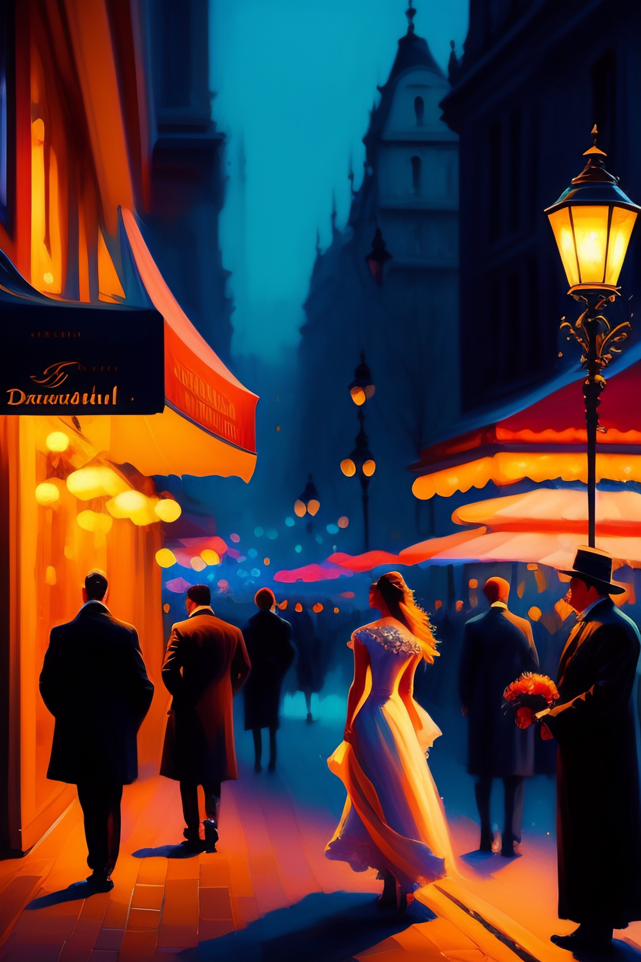 Aesthetic! stunning portrait of a dancing people in a serene zürich streetscape at night by antoine blanchard, artstation, art - deco