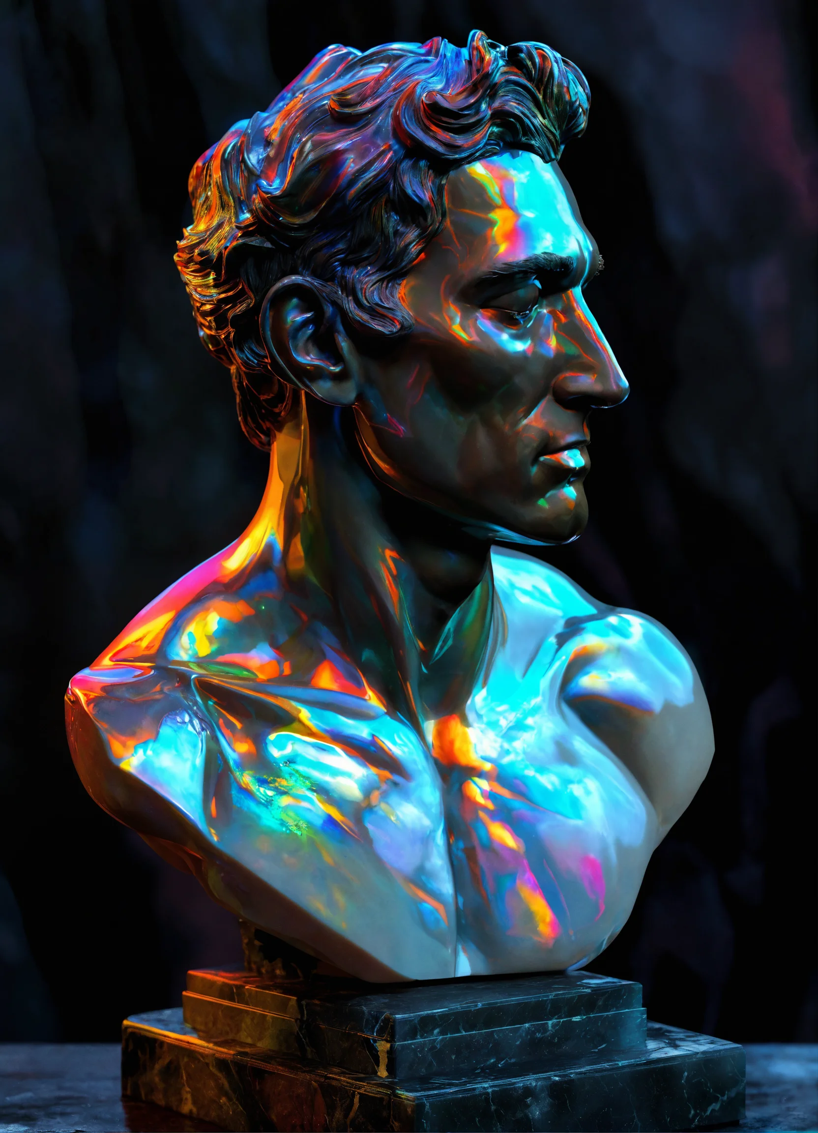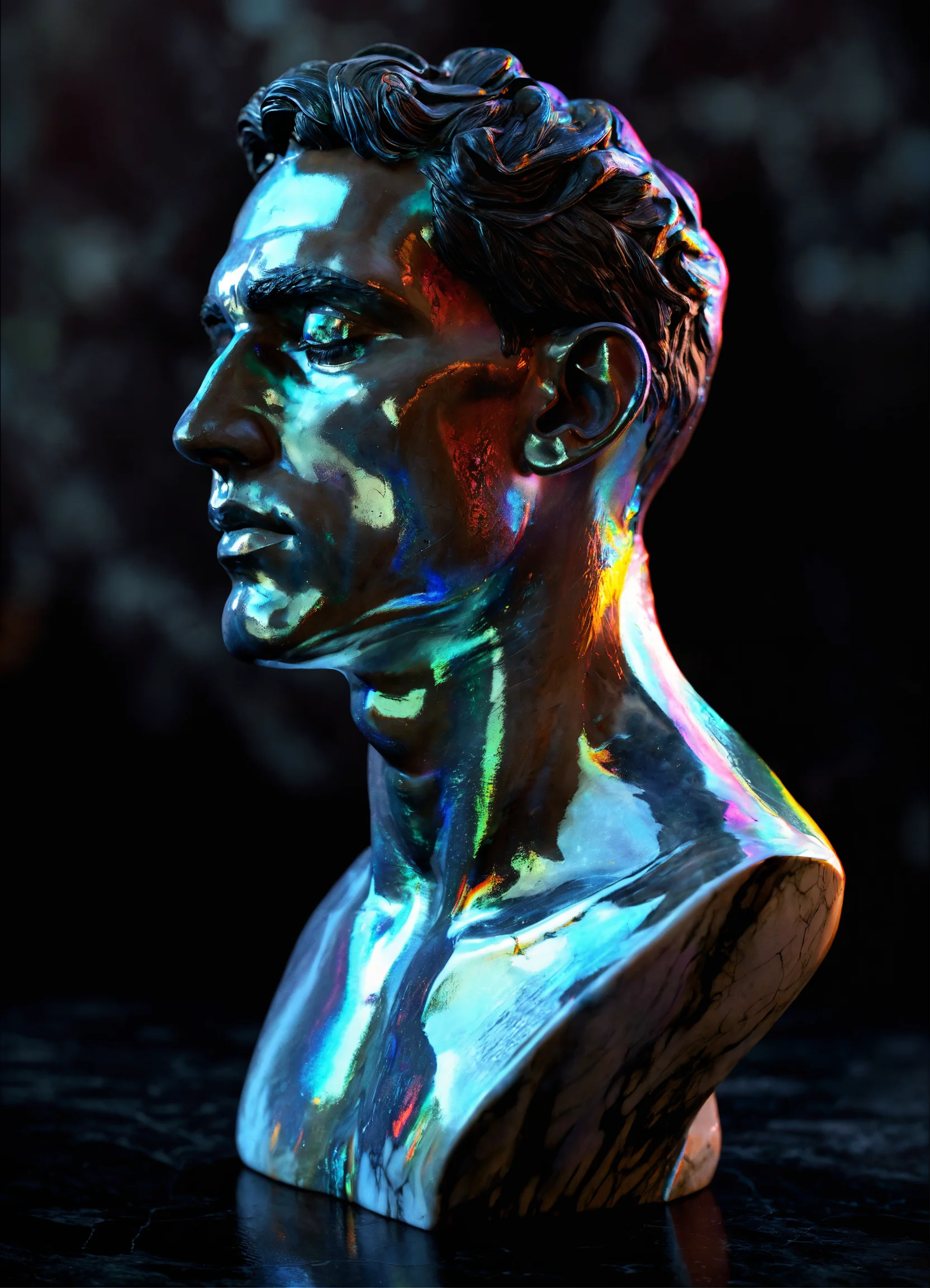A stunning iridescent male marble bust